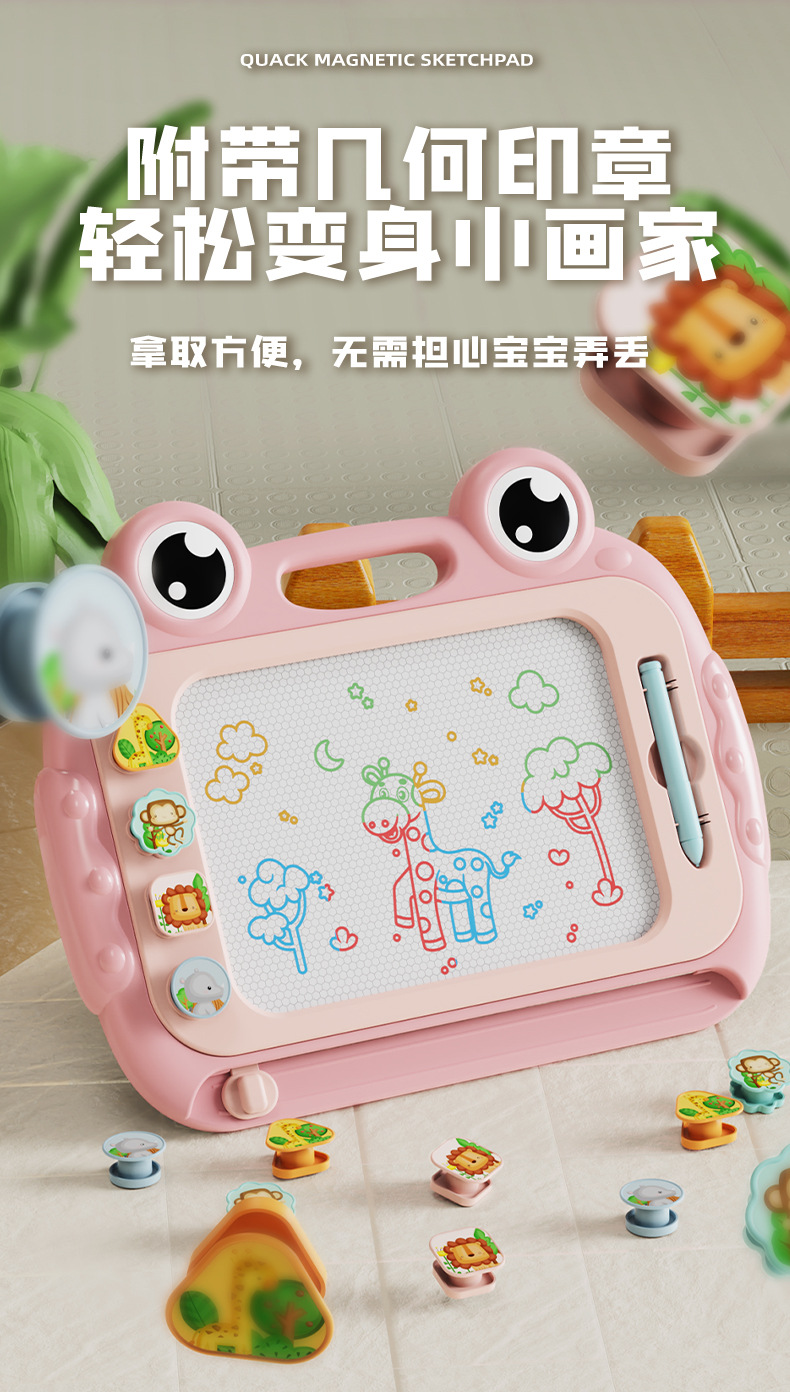 • XL [핑크-발 없음] 개구리 드로잉 보드 영어 컬러 박스