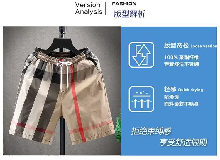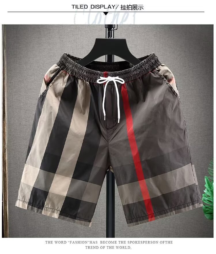 여름 남성 반바지 캐주얼 간단한 체크 무늬 바지 남성용 새로운 빠른 건조 비치 바지스토어 가기