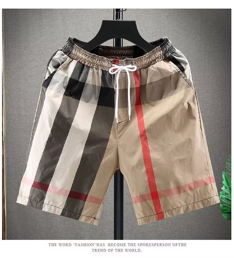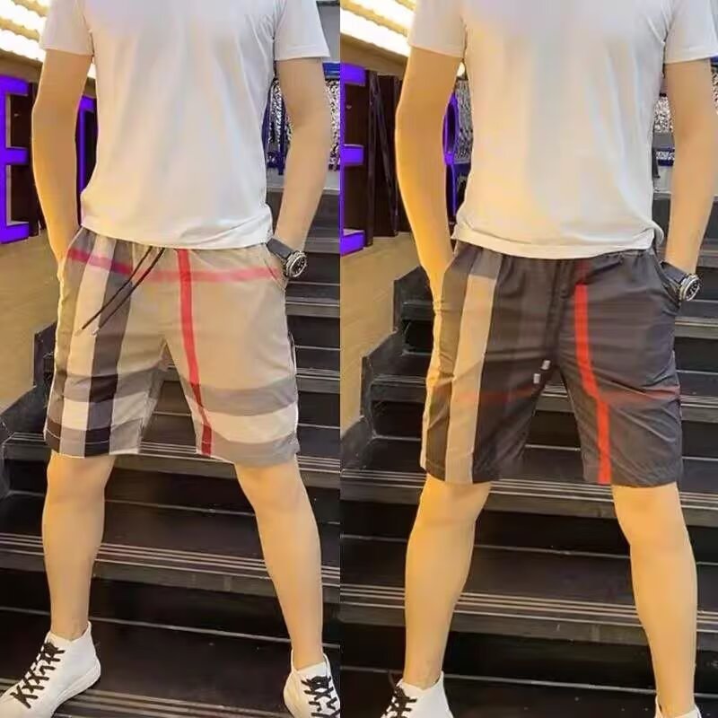 여름 남성 반바지 캐주얼 간단한 체크 무늬 바지 남성용 새로운 빠른 건조 비치 바지