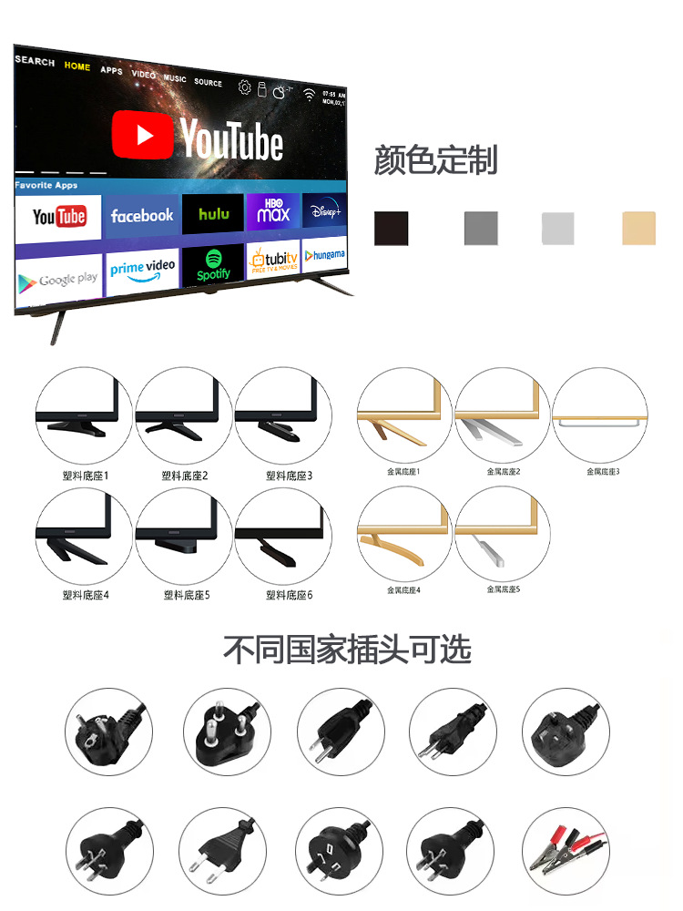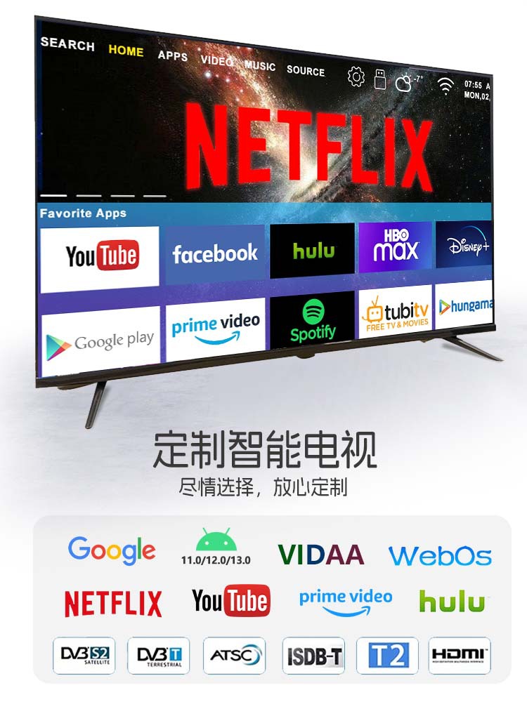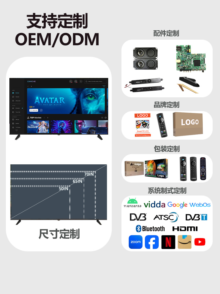 맞춤형 TV 55 60 65 75 85 98 100 "4K 경계없는 안드로이드 QLED 스마트 네트워크 TV