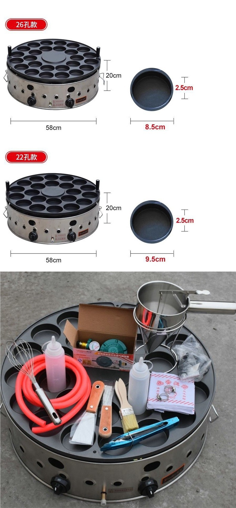 계란 버거 기계 가스 실속 상업 22 구멍 고기 계란 버거 냄비 라운드 붉은 콩 케이크 휠 케이크 기계 스낵 기계