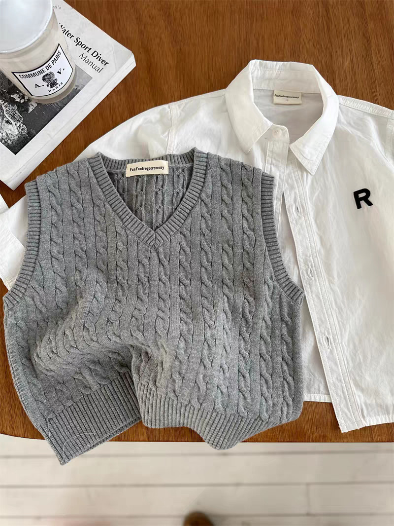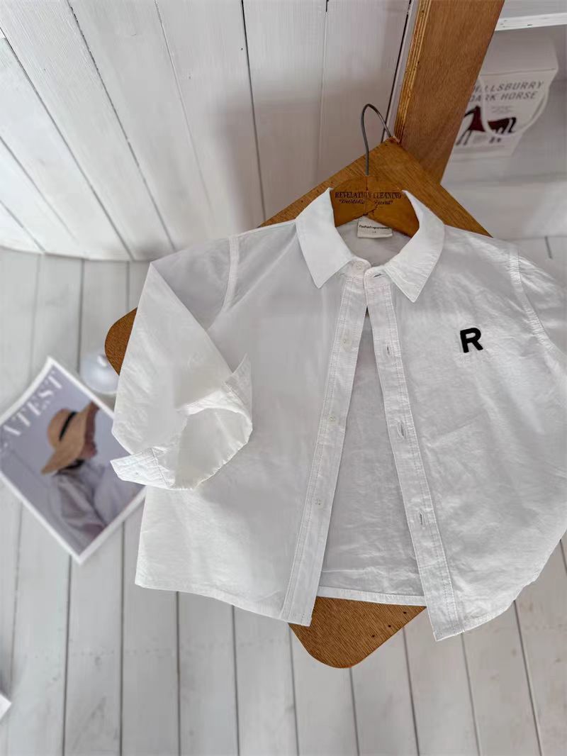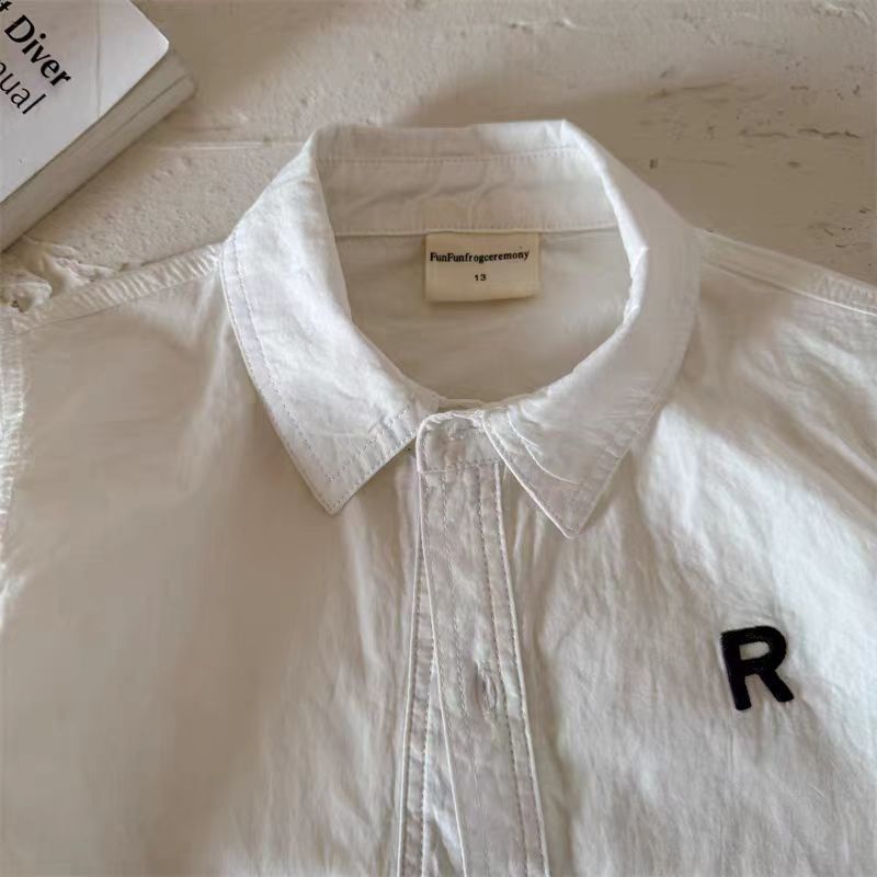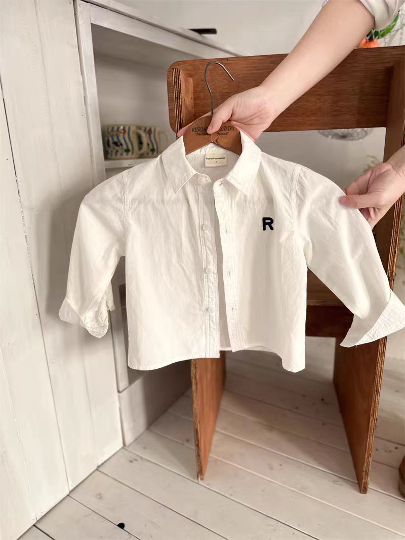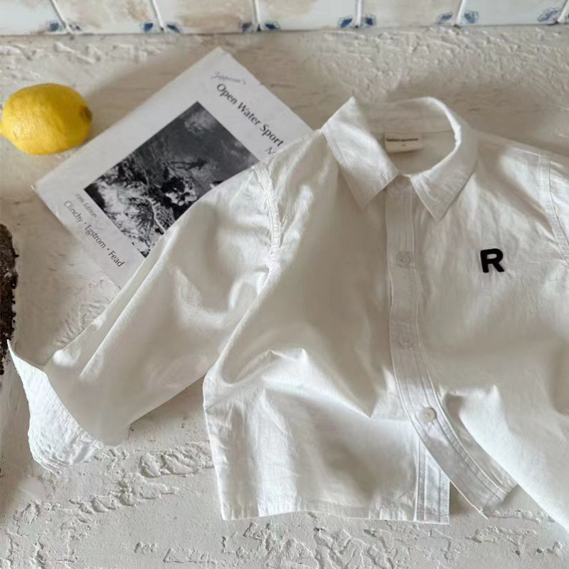어린이 셔츠 2025 봄 새로운 소년과 소녀 간단한 편지 코튼 화이트 셔츠 서양식 기본 셔츠스토어 가기