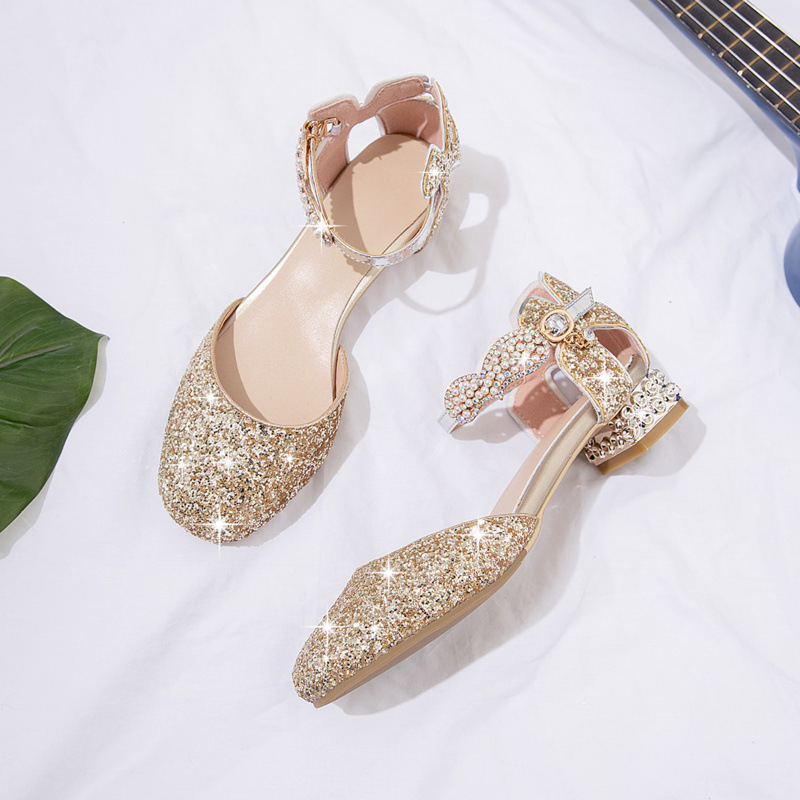 소녀 샌들 2024 여름 새로운 패션 어린이 하이힐 크리스탈 공주 신발 바오터우 어린이 신발스토어 가기