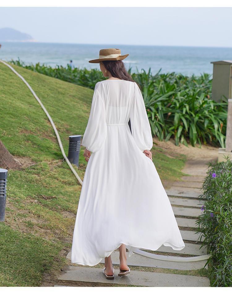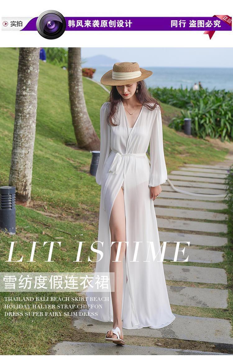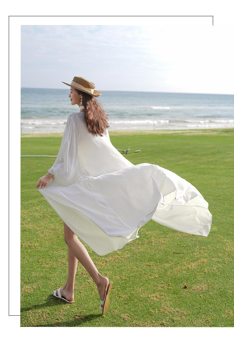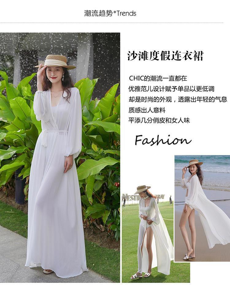 해변 원피스 2025 새로운 여성 슈퍼 요정 싼야 해변 휴가 수영복 블라우스 시폰 우아한 긴 소매 원피스 여름스토어 가기