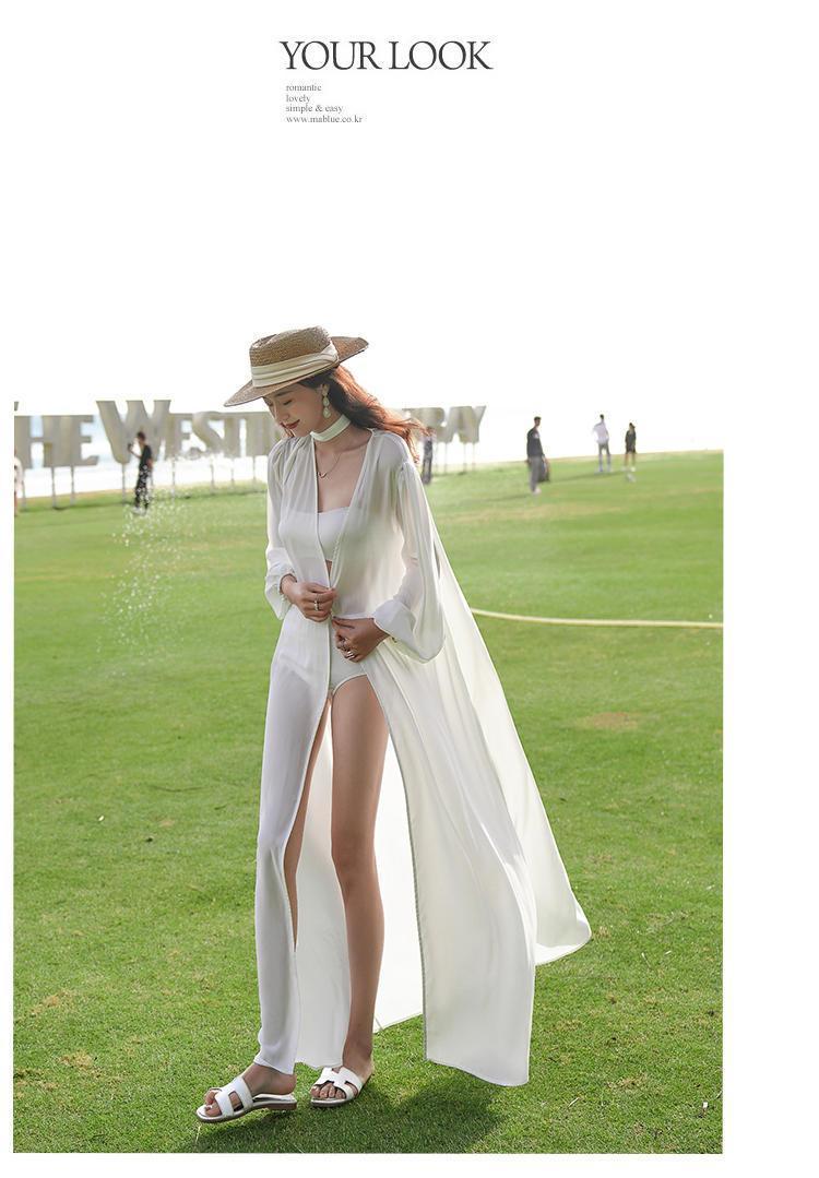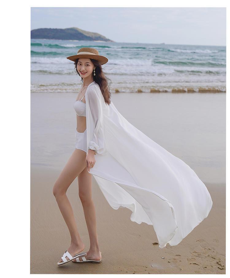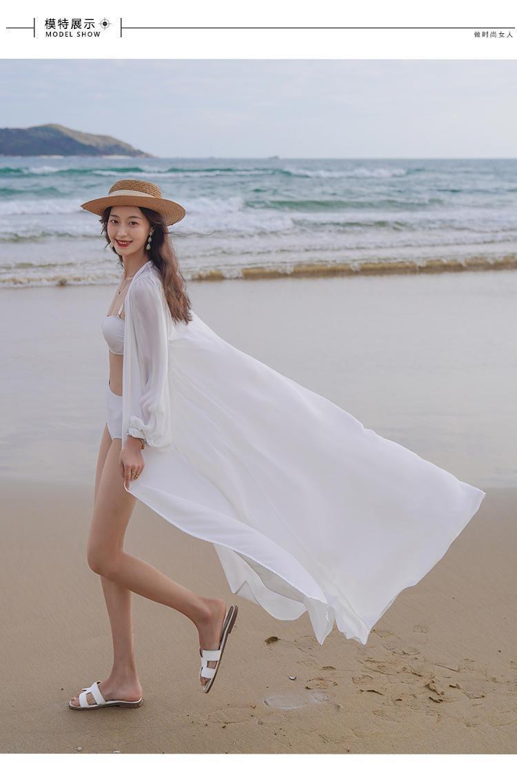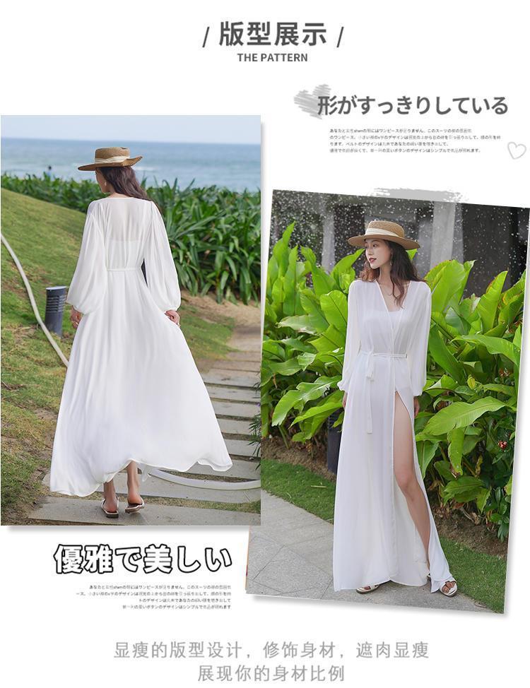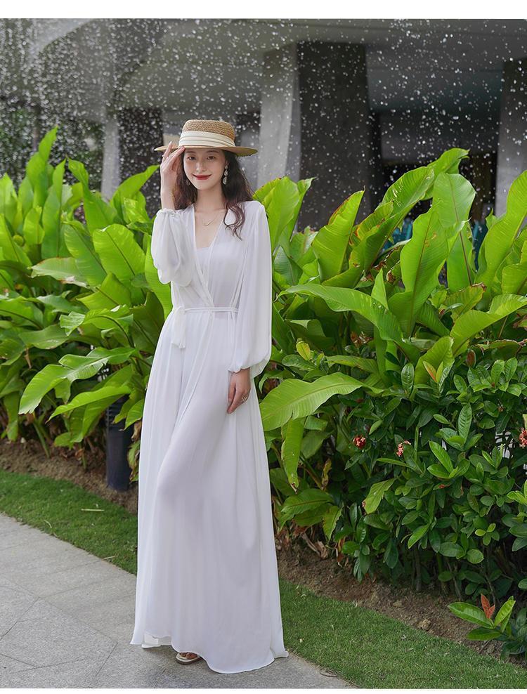 해변 원피스 2025 새로운 여성 슈퍼 요정 싼야 해변 휴가 수영복 블라우스 시폰 우아한 긴 소매 원피스 여름스토어 가기