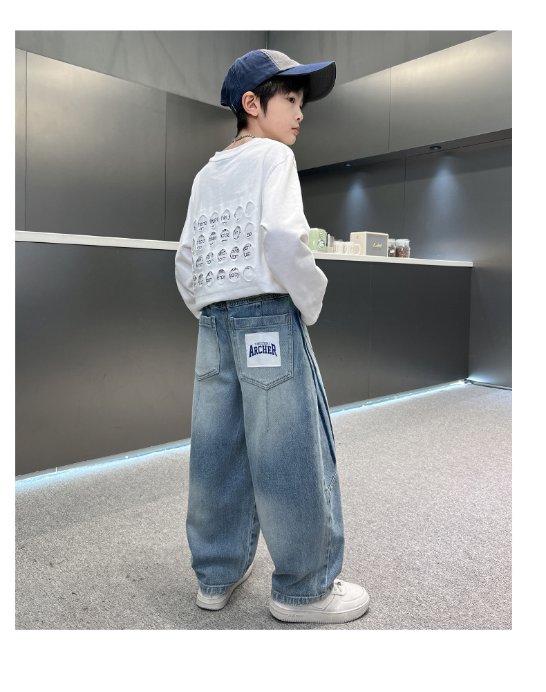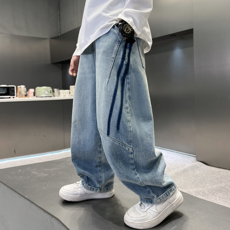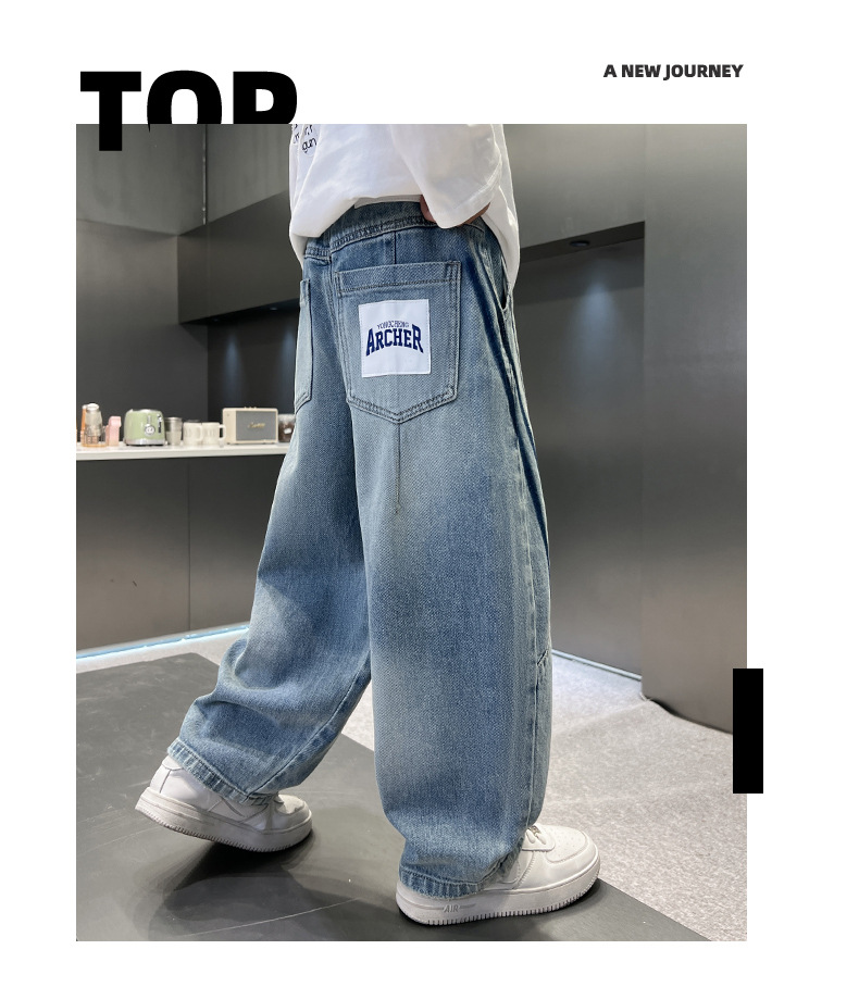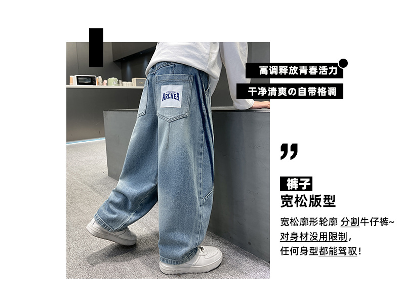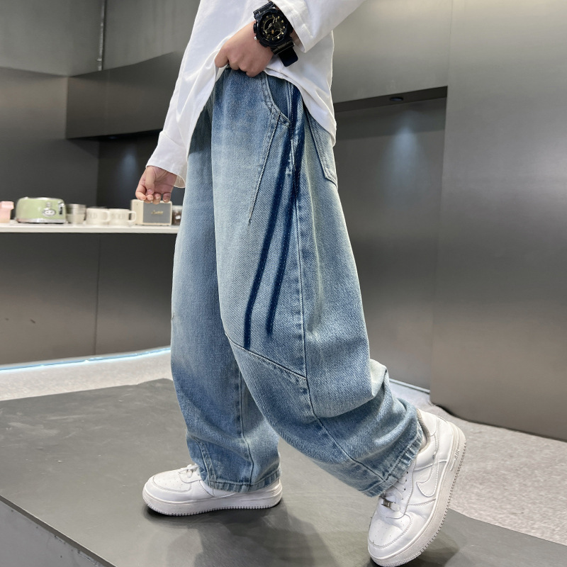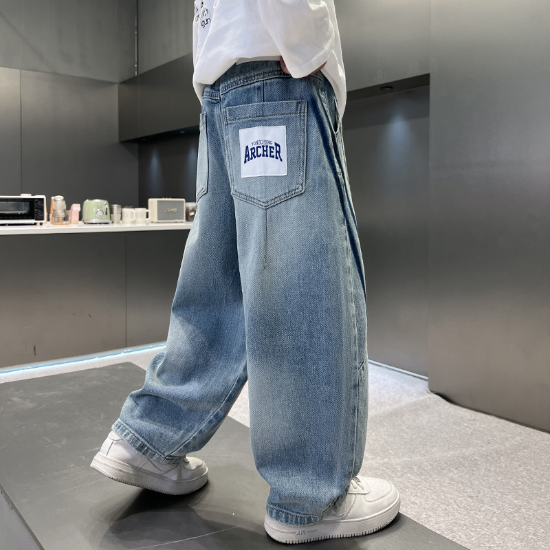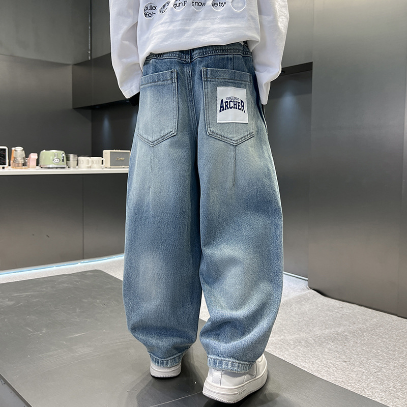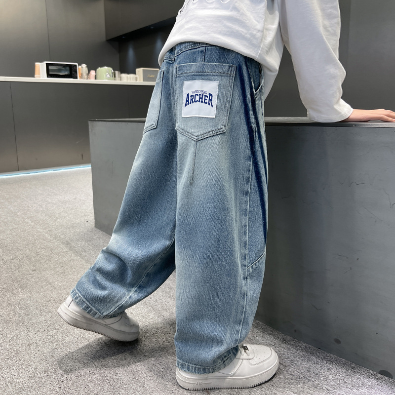 봄 소년 청바지 봄 새 아동복 어린이 빅 소년 청소년 라인 루즈 트렌디 한 국경 간 바지스토어 가기