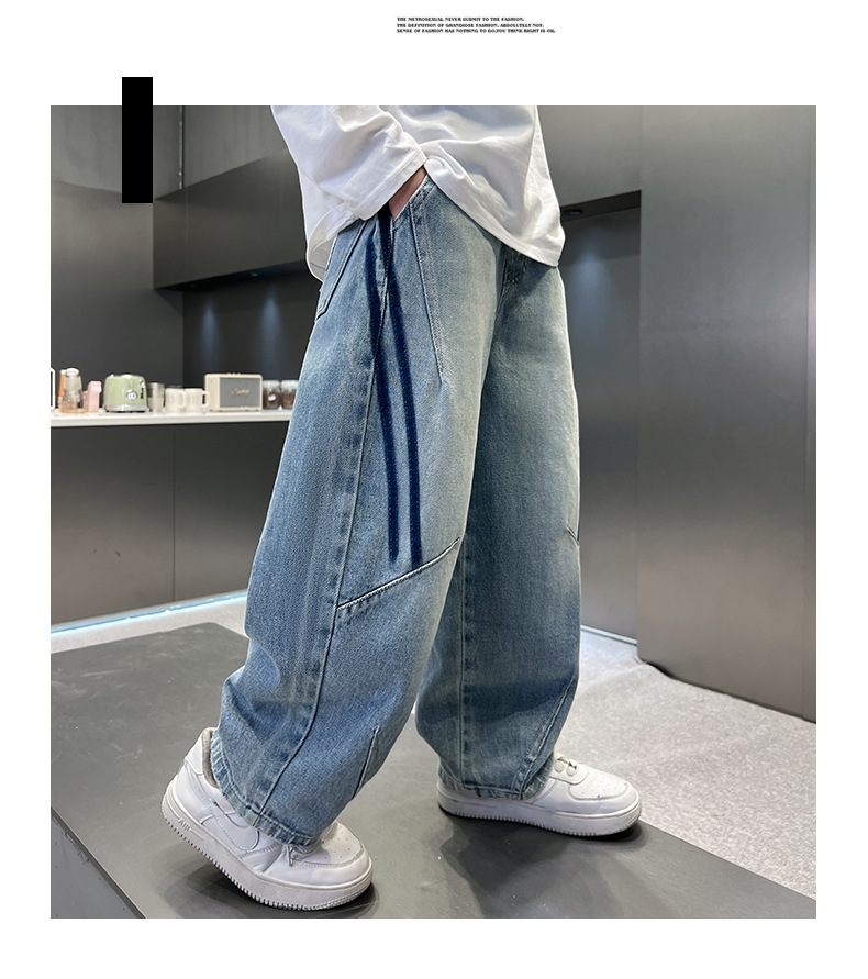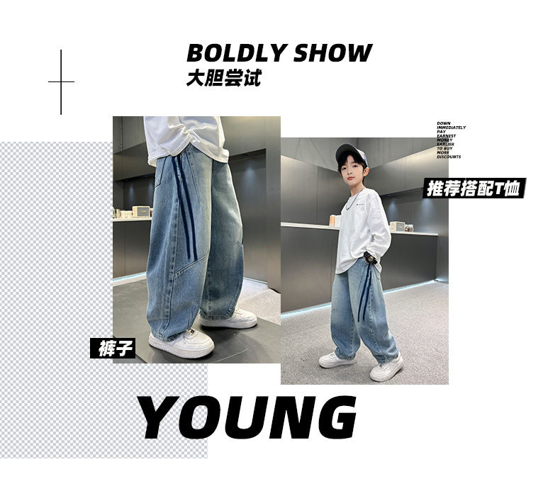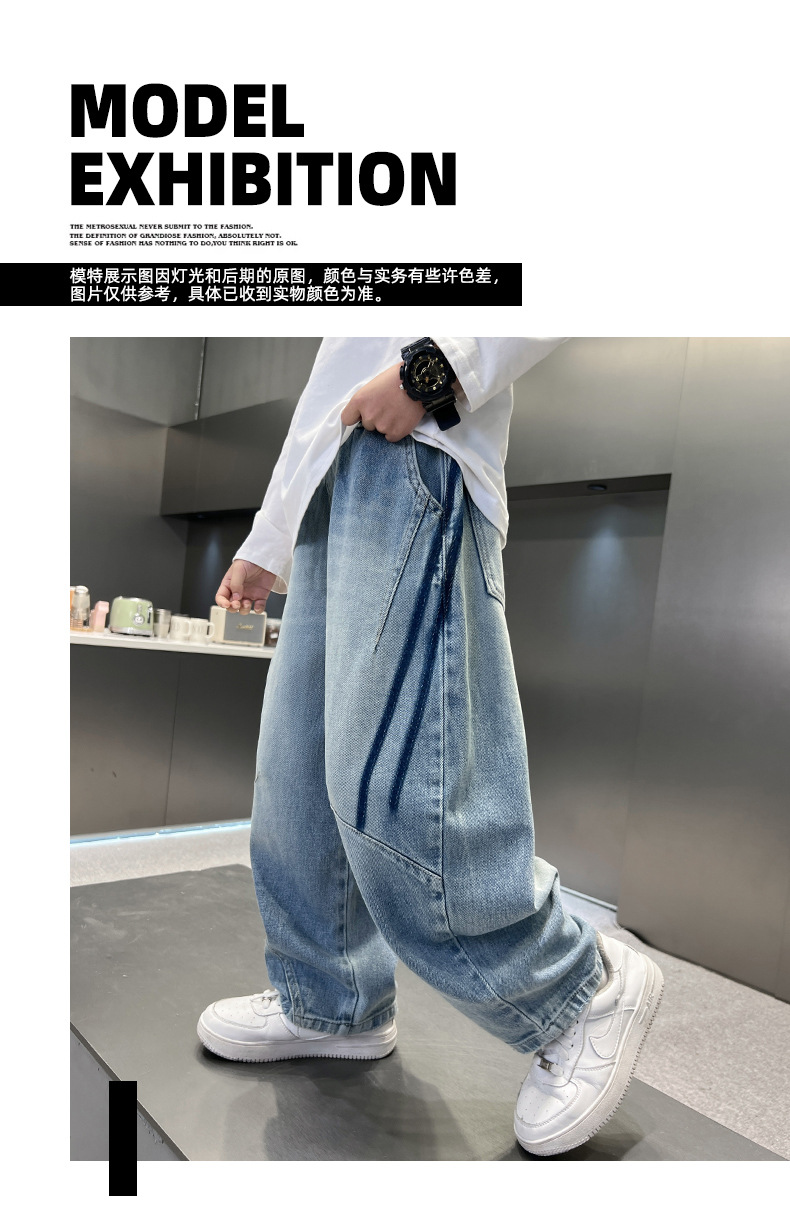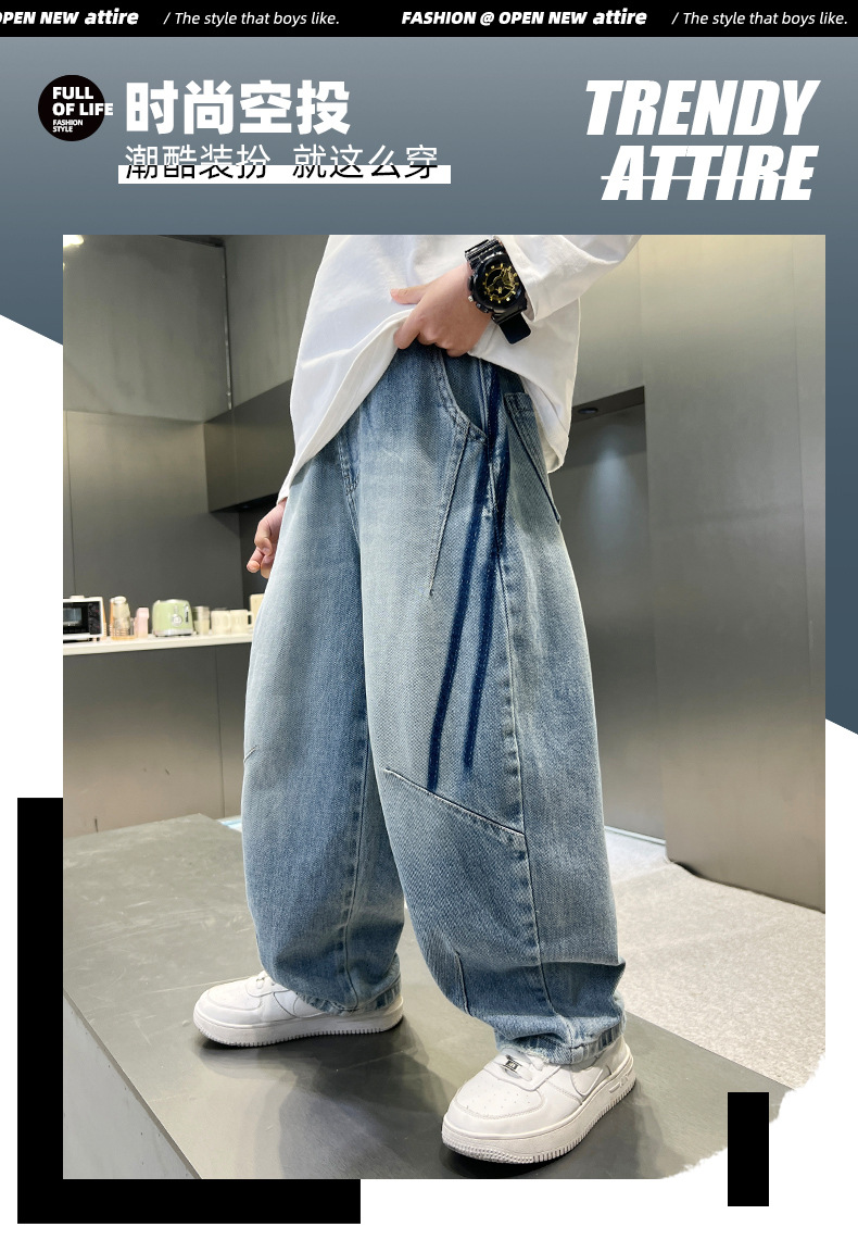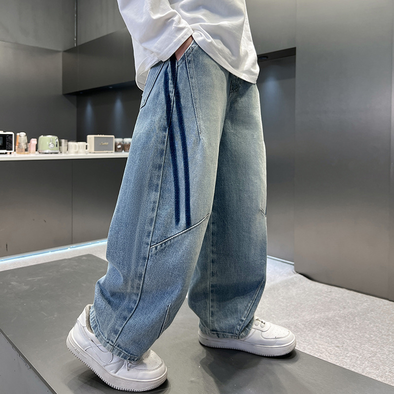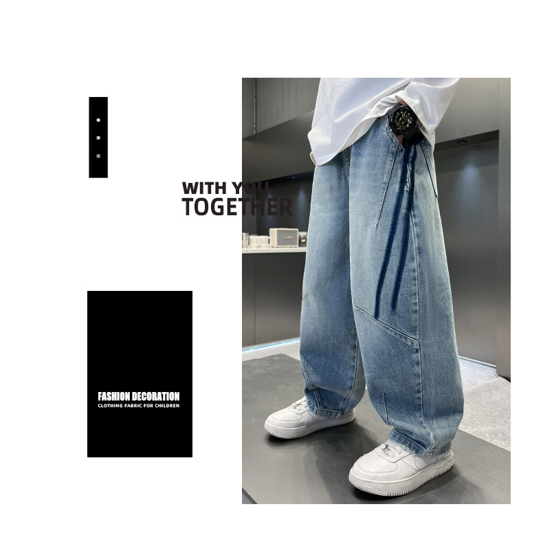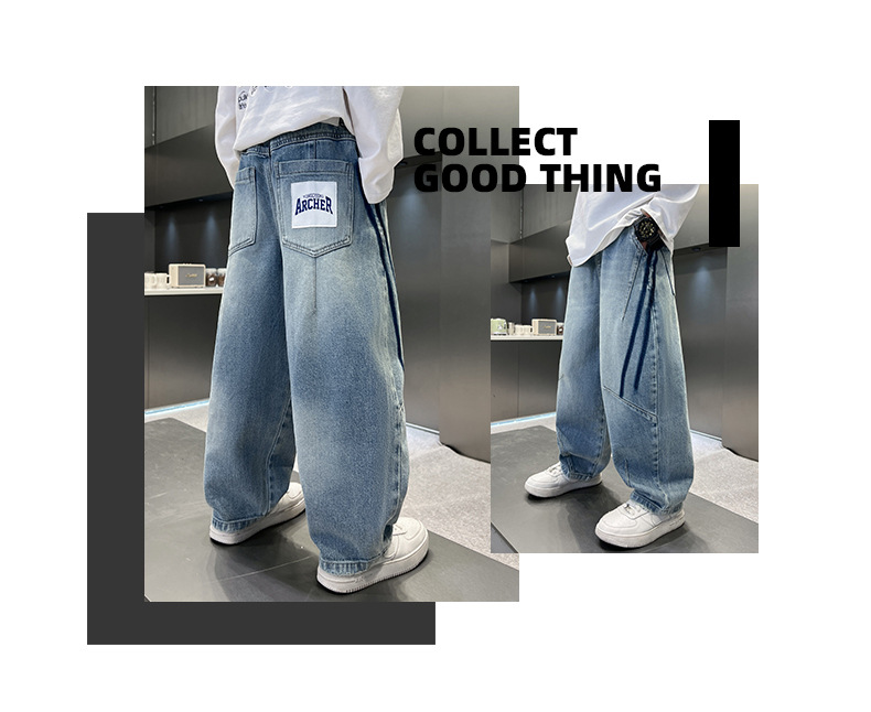 봄 소년 청바지 봄 새 아동복 어린이 빅 소년 청소년 라인 루즈 트렌디 한 국경 간 바지스토어 가기