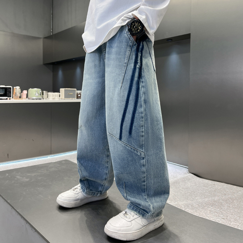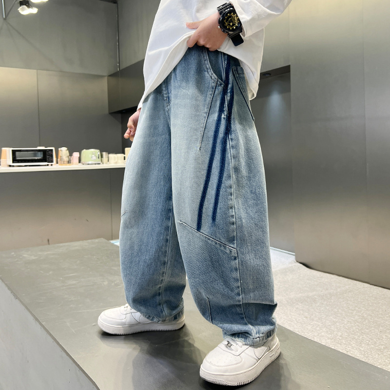 봄 소년 청바지 봄 새 아동복 어린이 빅 소년 청소년 라인 루즈 트렌디 한 국경 간 바지
