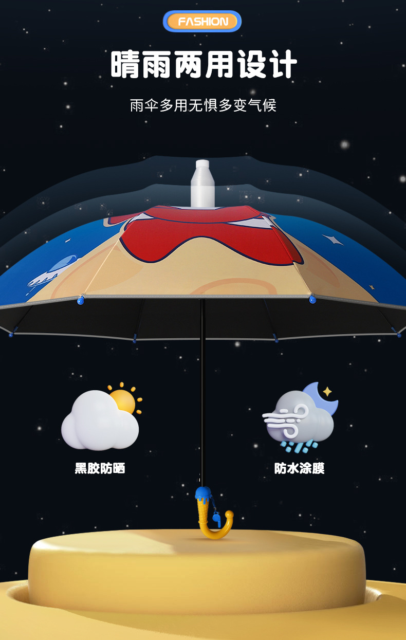 공장 직송 어린이 우산 만화 캐릭터 어린이용 블랙 글로시 인쇄 로고 도매 가능 우산 블랙 글로시 자외선 차단스토어 가기