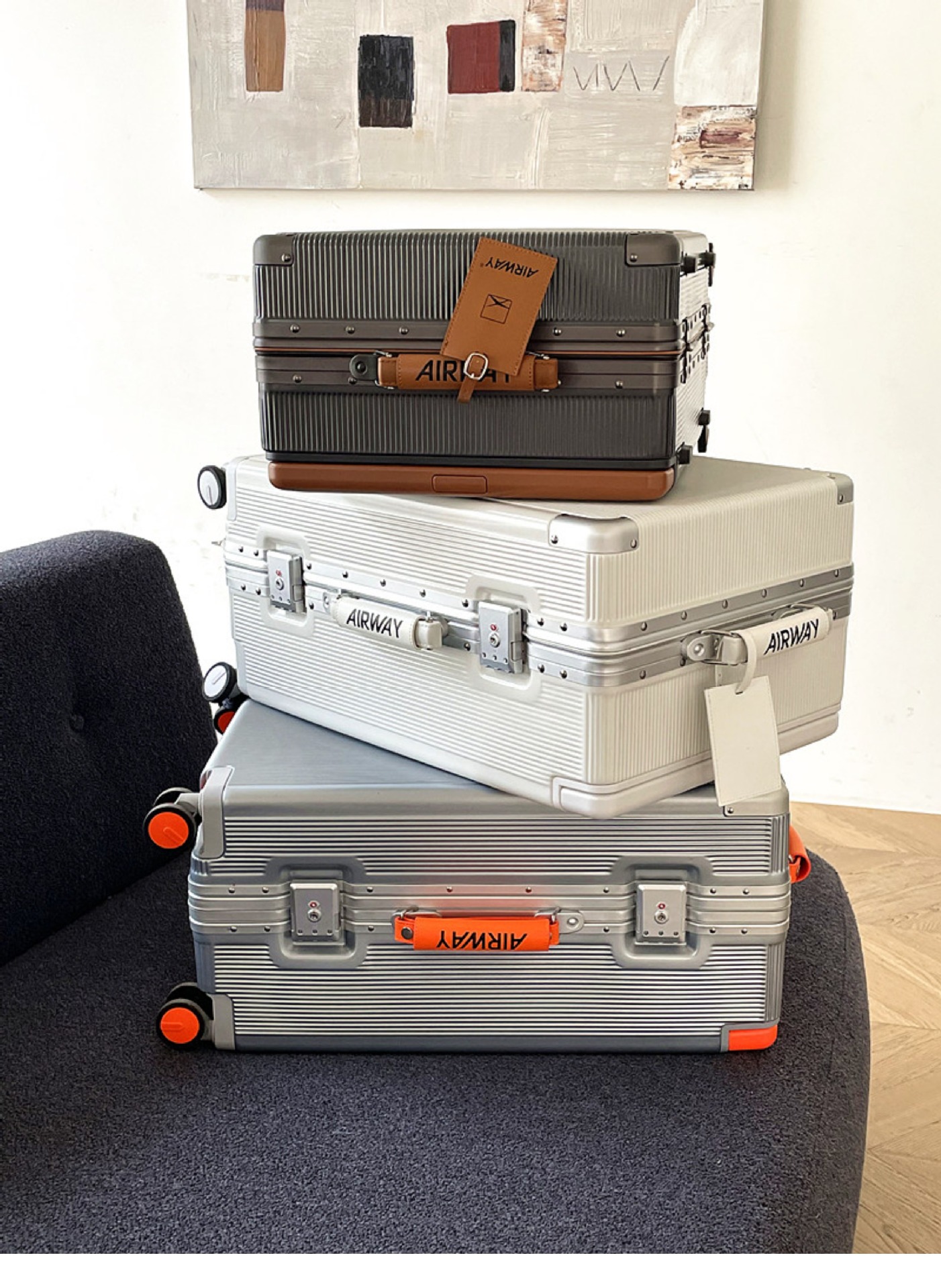 여성용 에어웨이 알루미늄 프레임 가방 20inch 탑승 케이스 자동 범용 휠 와이드 트롤리 남성용 대외 무역 트롤리 케이스 24PC스토어 가기