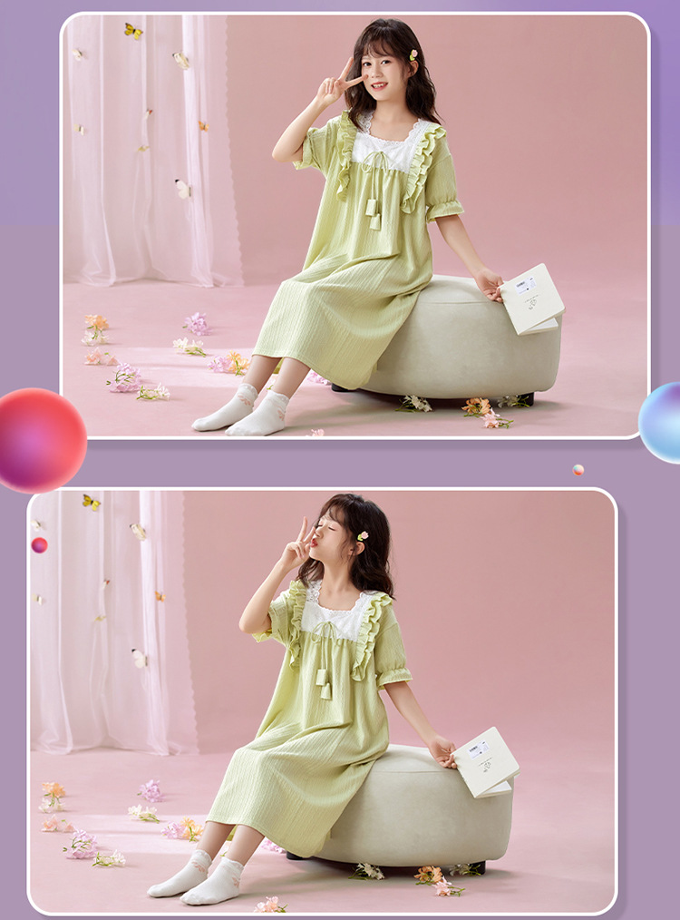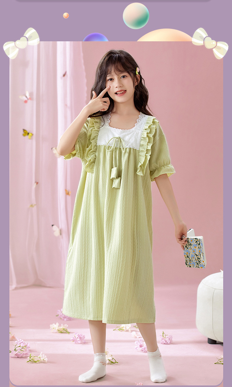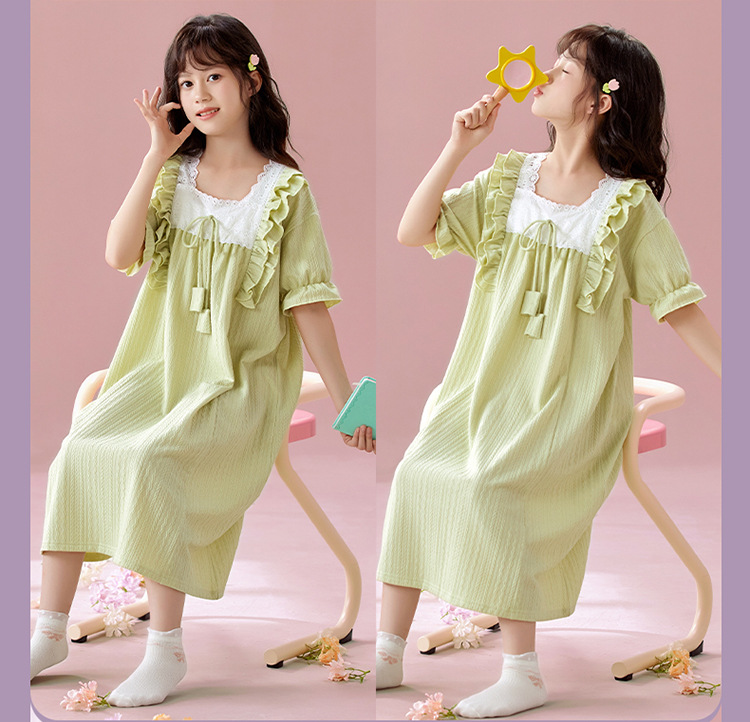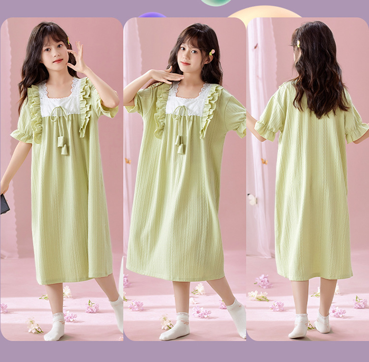 잠옷 소녀 잠옷 여름 2025 새로운 반팔 귀여운 달콤한 소녀 공주 큰 아이들 집 옷 원피스