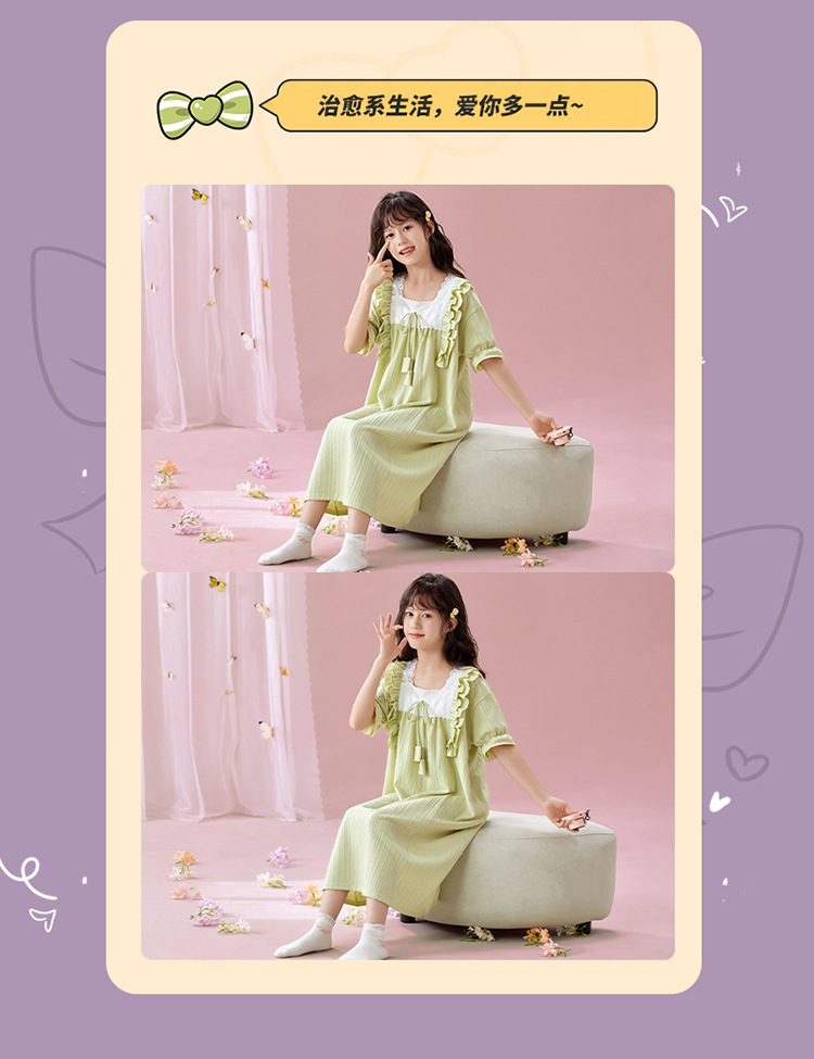 잠옷 소녀 잠옷 여름 2025 새로운 반팔 귀여운 달콤한 소녀 공주 큰 아이들 집 옷 원피스스토어 가기