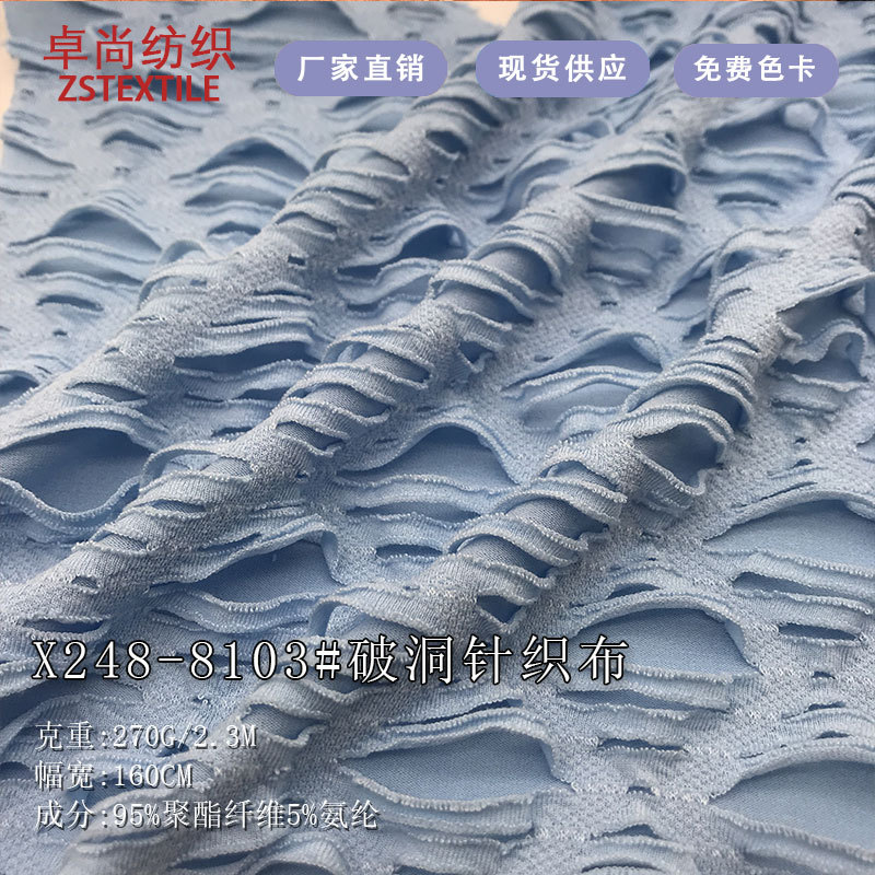 새로운 찢어진 니트 원단 탄성 더블 레이어 질감 자카드 원단 탑 드레스 패션 원단