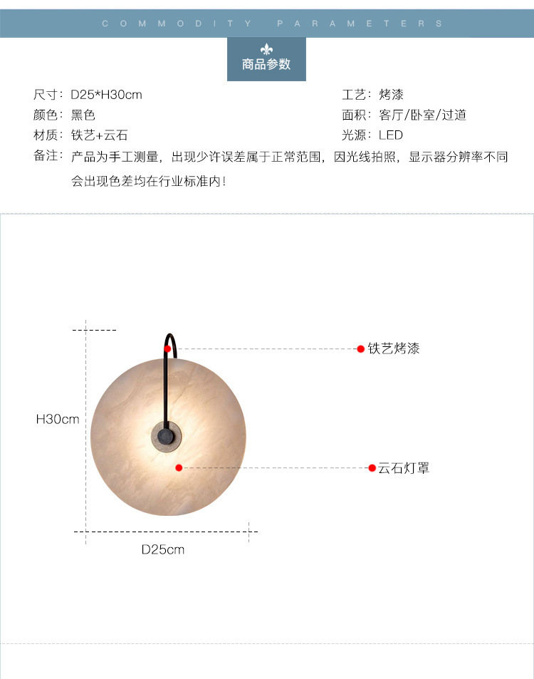 북유럽 거실 대리석 벽 램프 침대 옆 고급 감각 간단한 배경 벽 램프 침실 연구 현관 장식 램프
