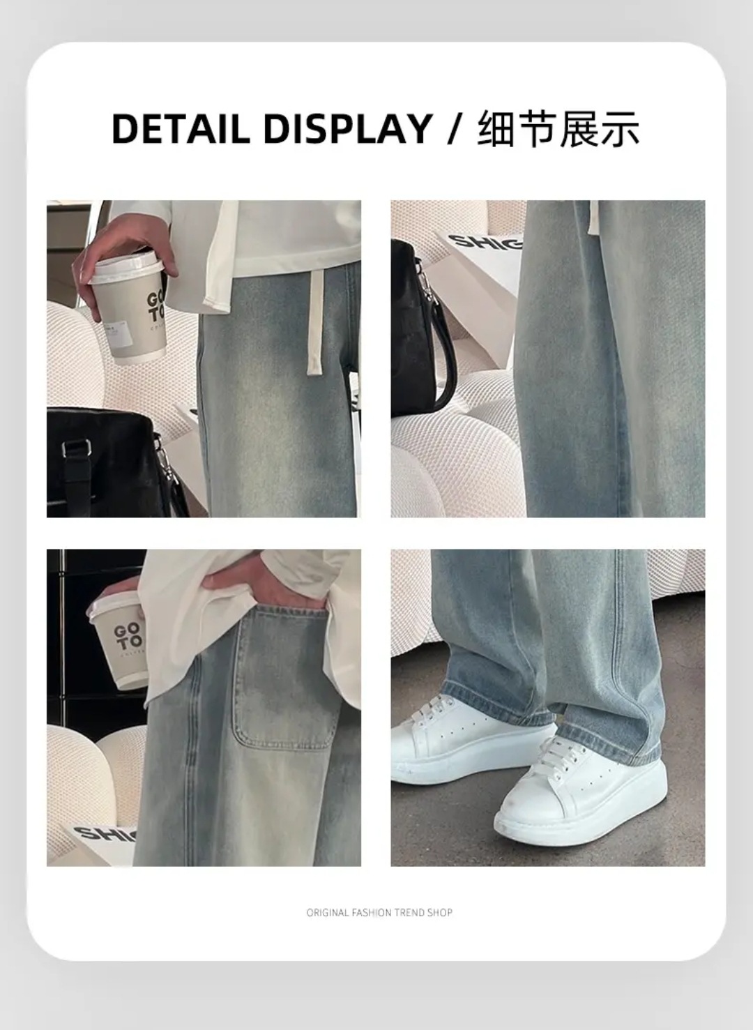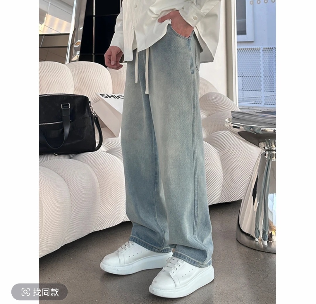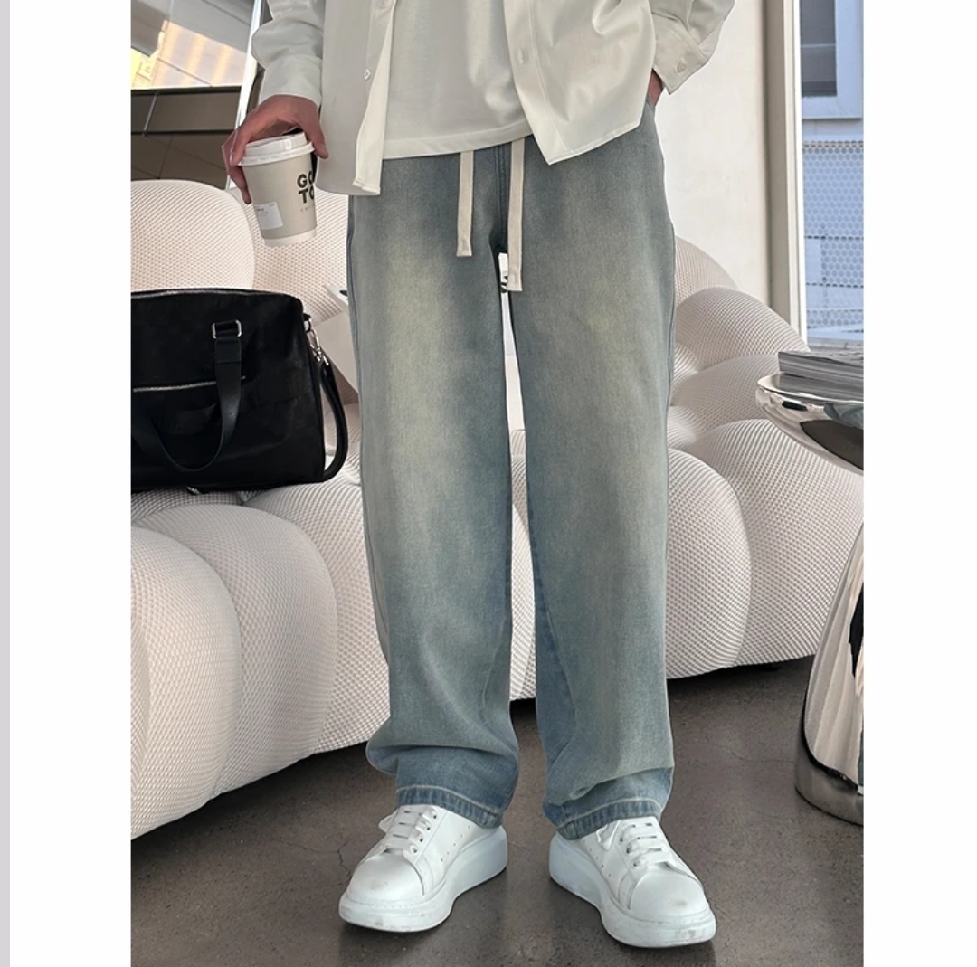 [패션 쉬움] 봄 캐주얼 스트레이트 라이트 컬러 청바지 슬리밍 느슨한 올매치 세탁 바지스토어 가기