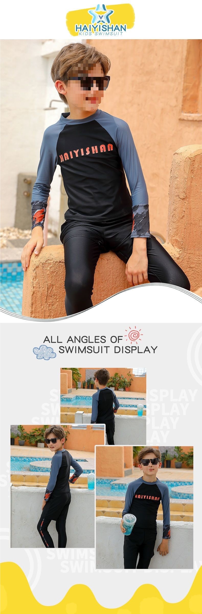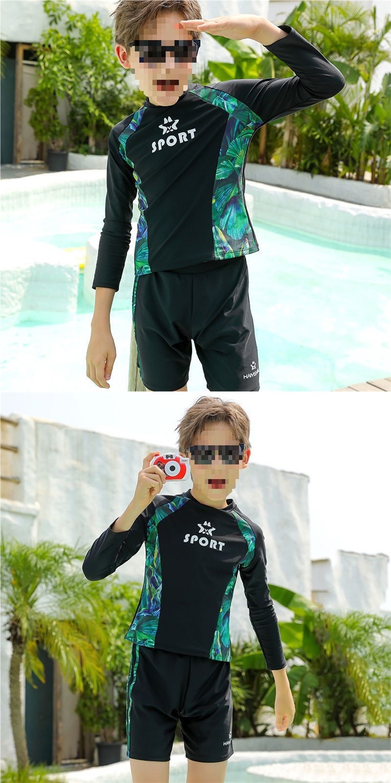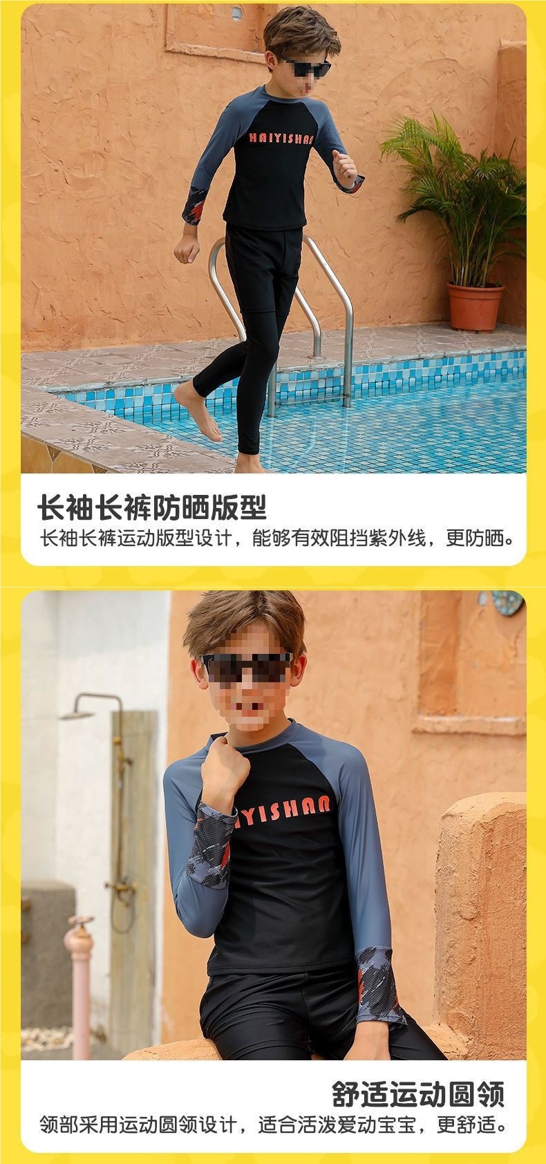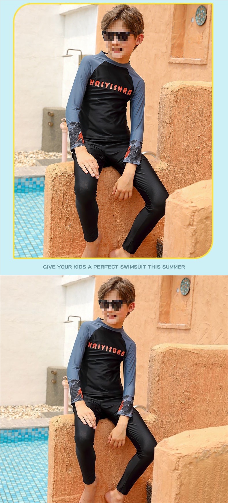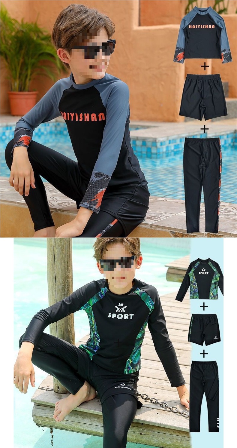 어린이 분할 수영복 소년의 분할 긴 소매 바지 태양 보호 다이빙 세트 해변 휴일 십대 3 피스 세트스토어 가기