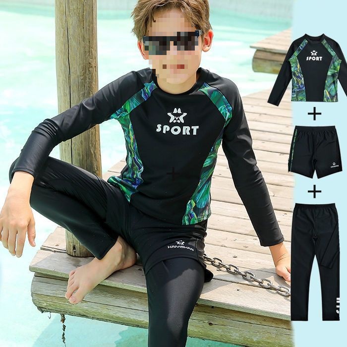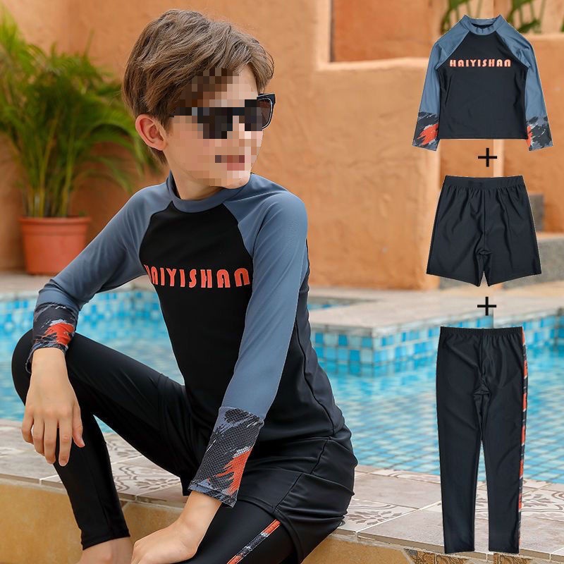 어린이 분할 수영복 소년의 분할 긴 소매 바지 태양 보호 다이빙 세트 해변 휴일 십대 3 피스 세트