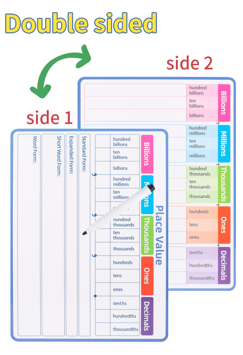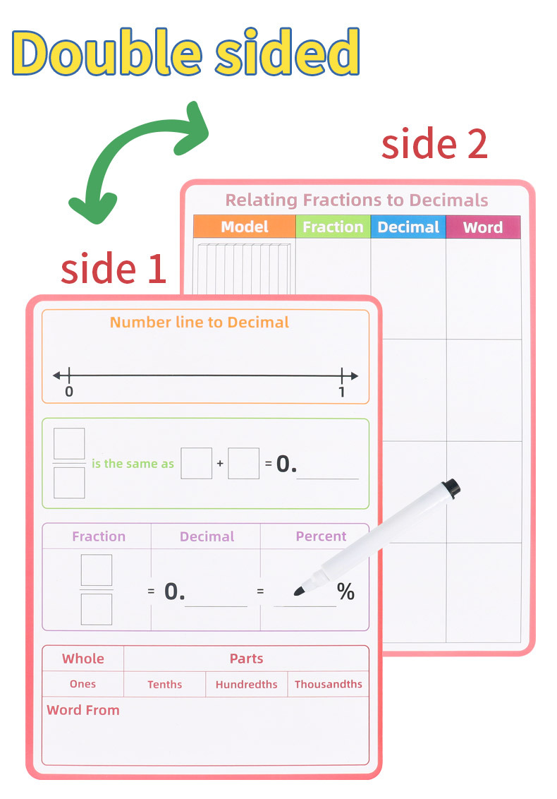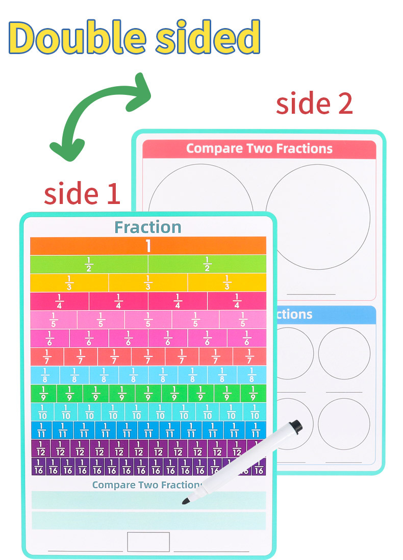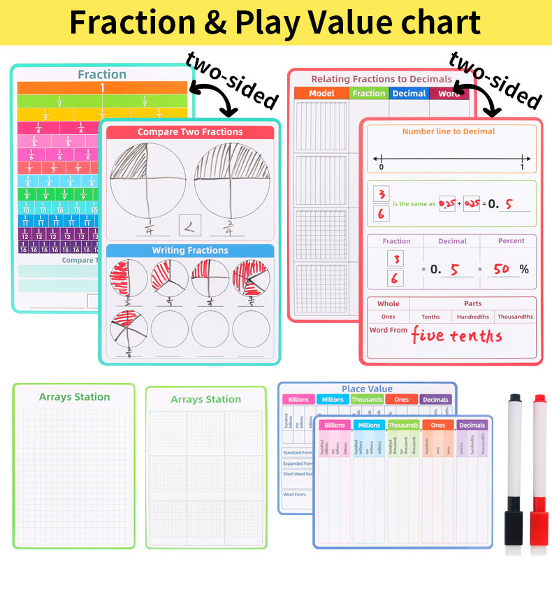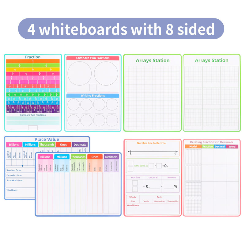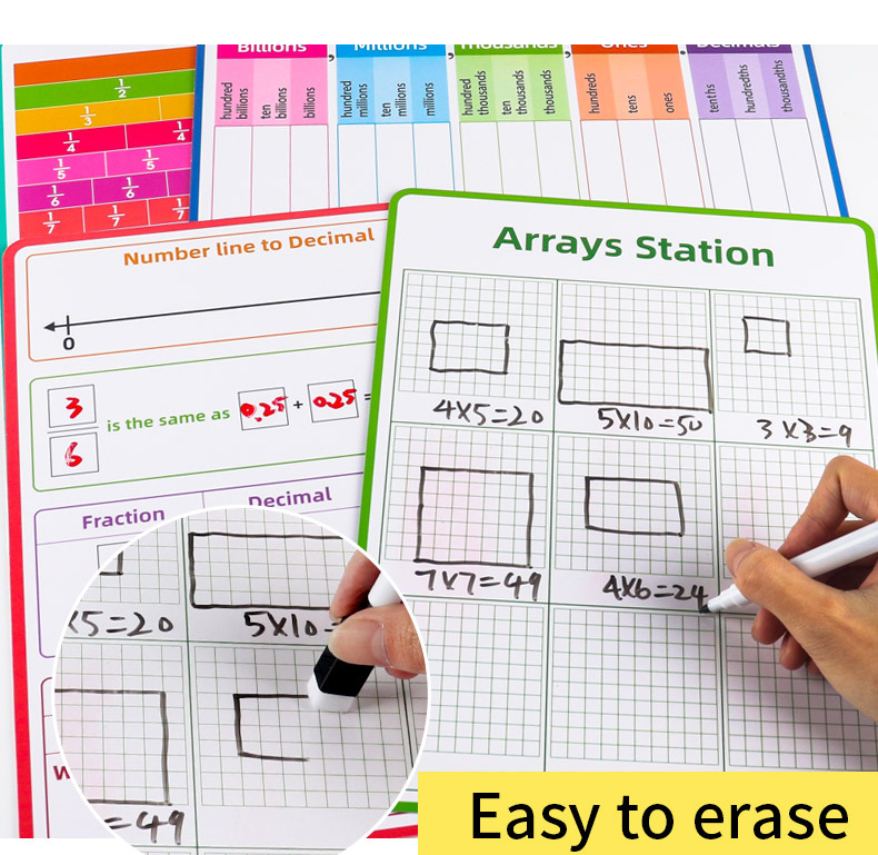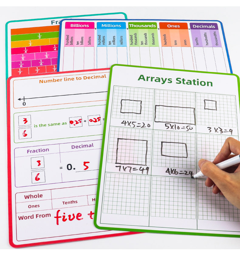 국경 간 인기 판매 영어 수학 분수 필기 보드 쓰기 반복적으로 지울 수 있는 분수 소수 값 연습 A4 도서스토어 가기