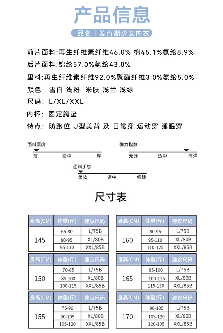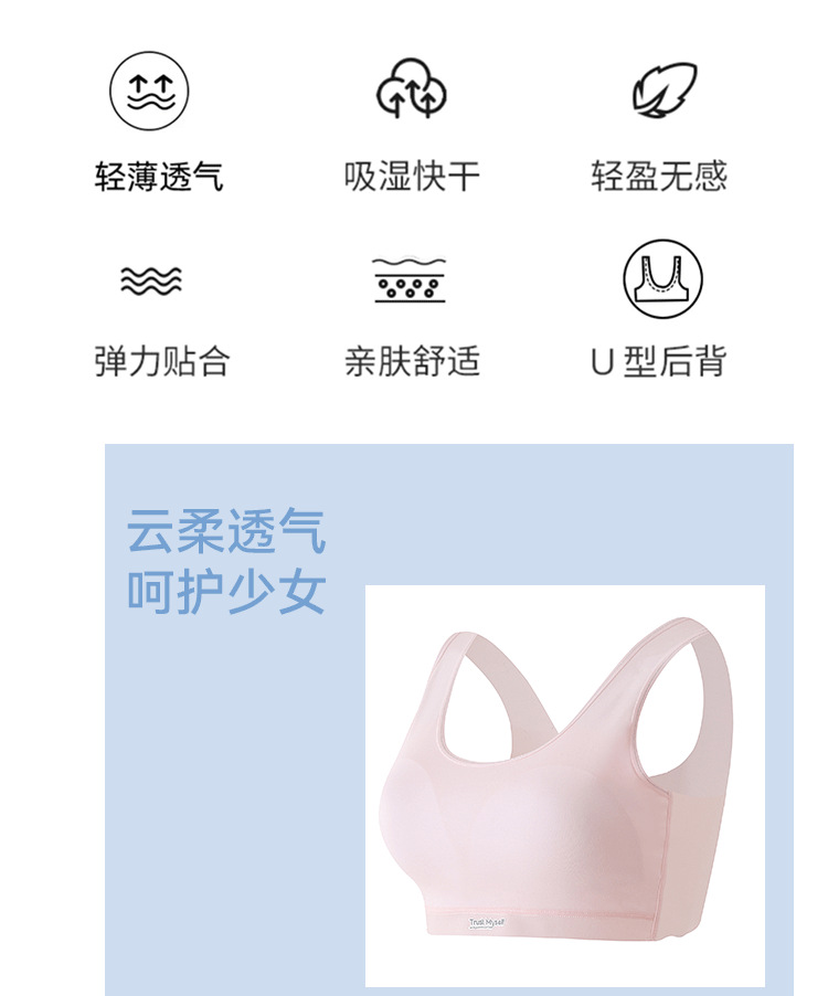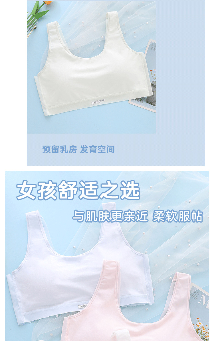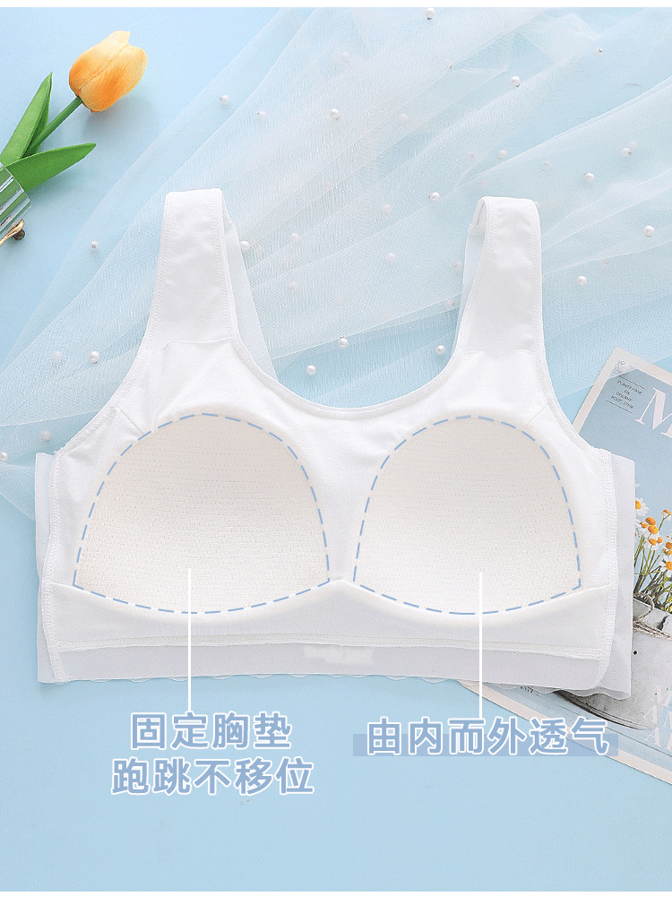 여아 심리스 브라, 중학생 스포츠 여아 조끼, 아름다운 등, 사춘기 통기성 발달 속옷스토어 가기
