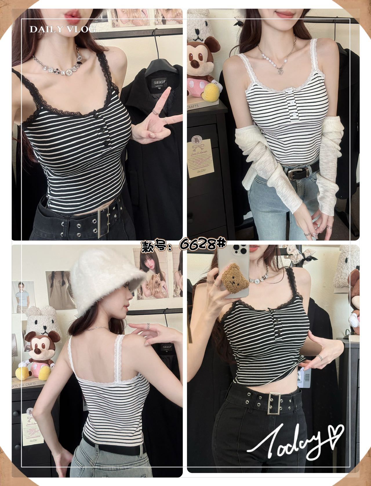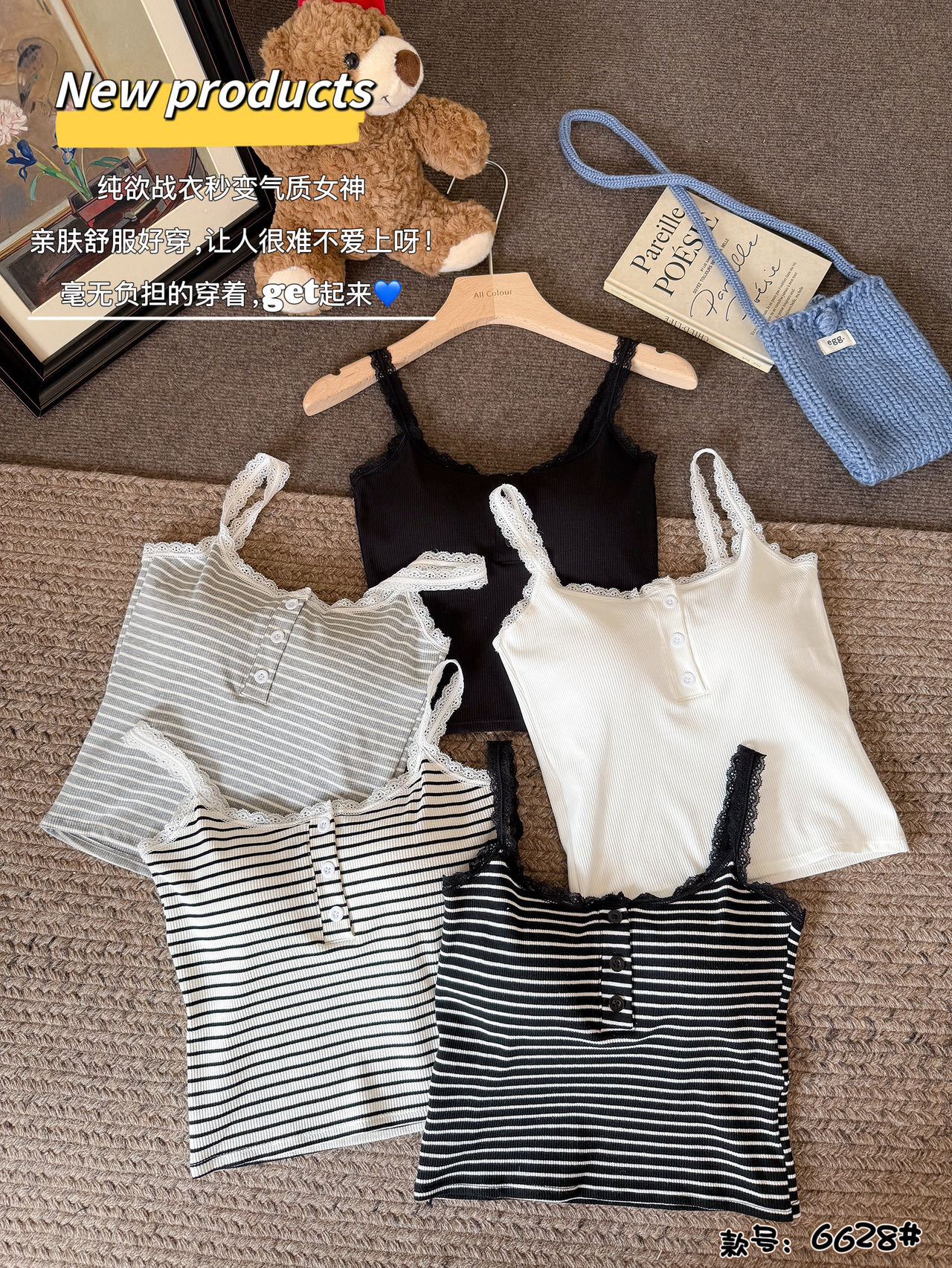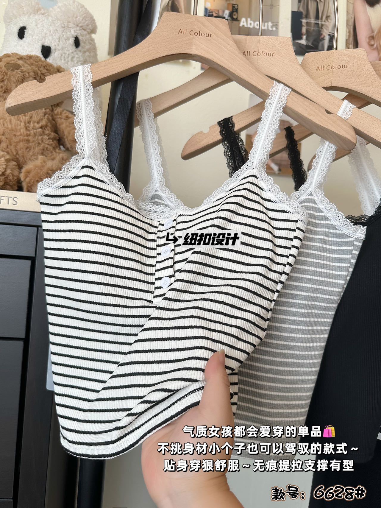 퓨어 올 매치 레이스 스트라이프 버튼 카미 솔 여성용 달콤하고 핫 슬림 핏 슬리밍 탑, 가슴 패드베이스 셔츠스토어 가기