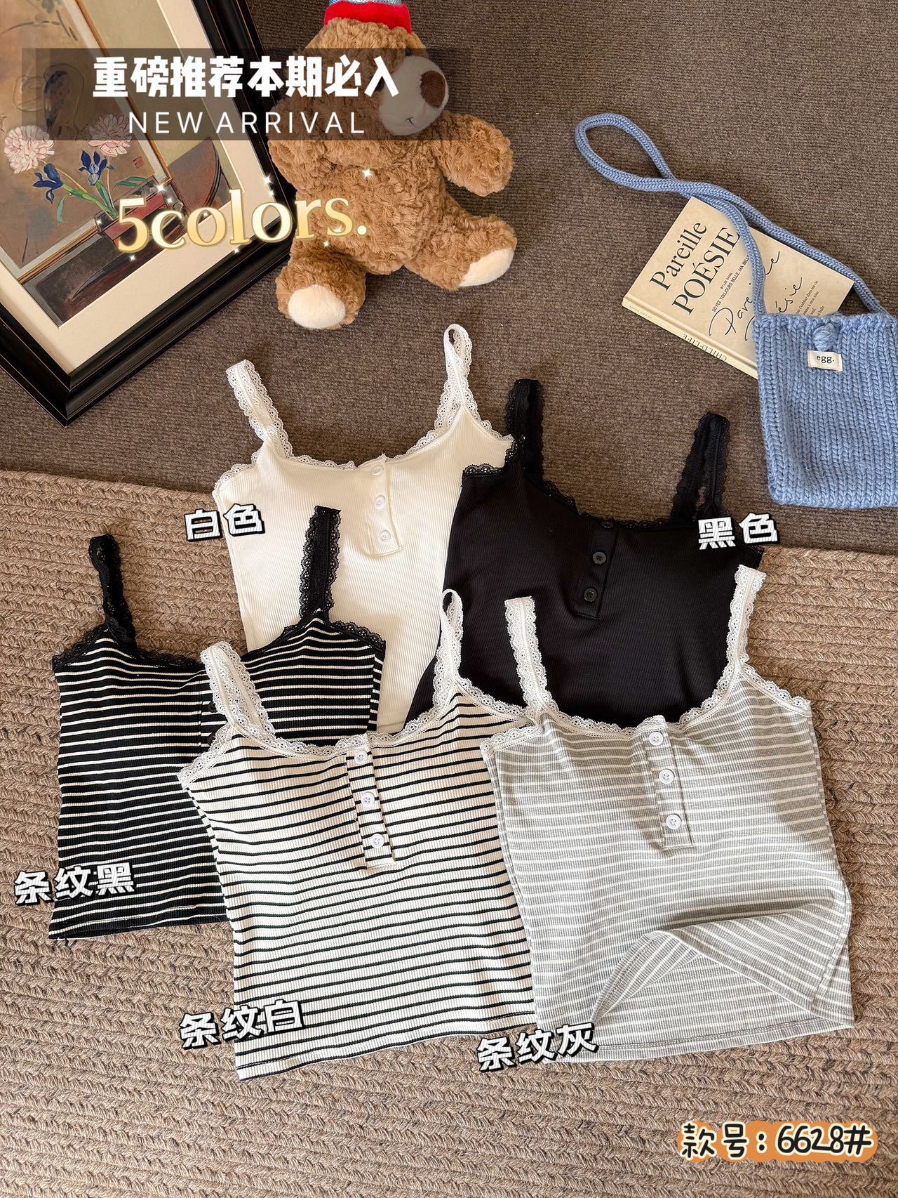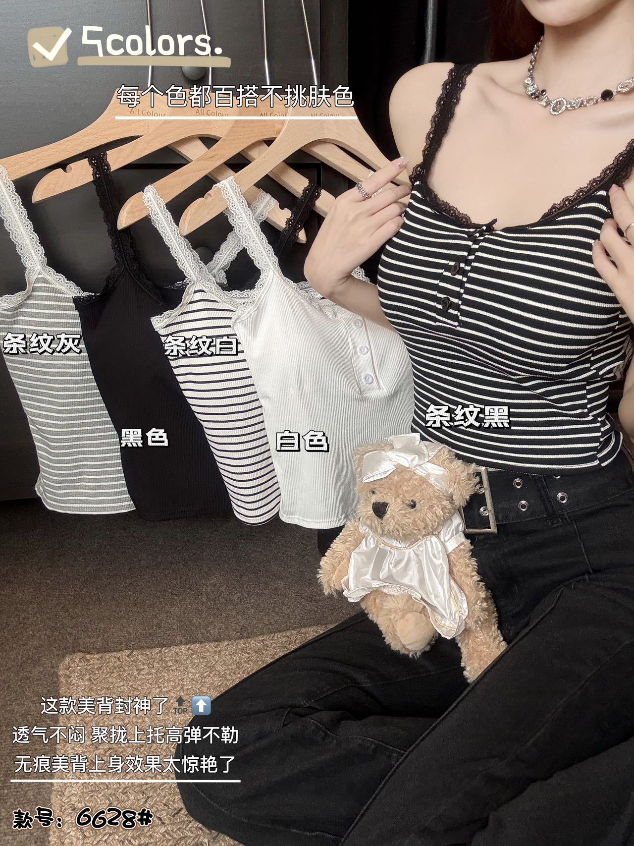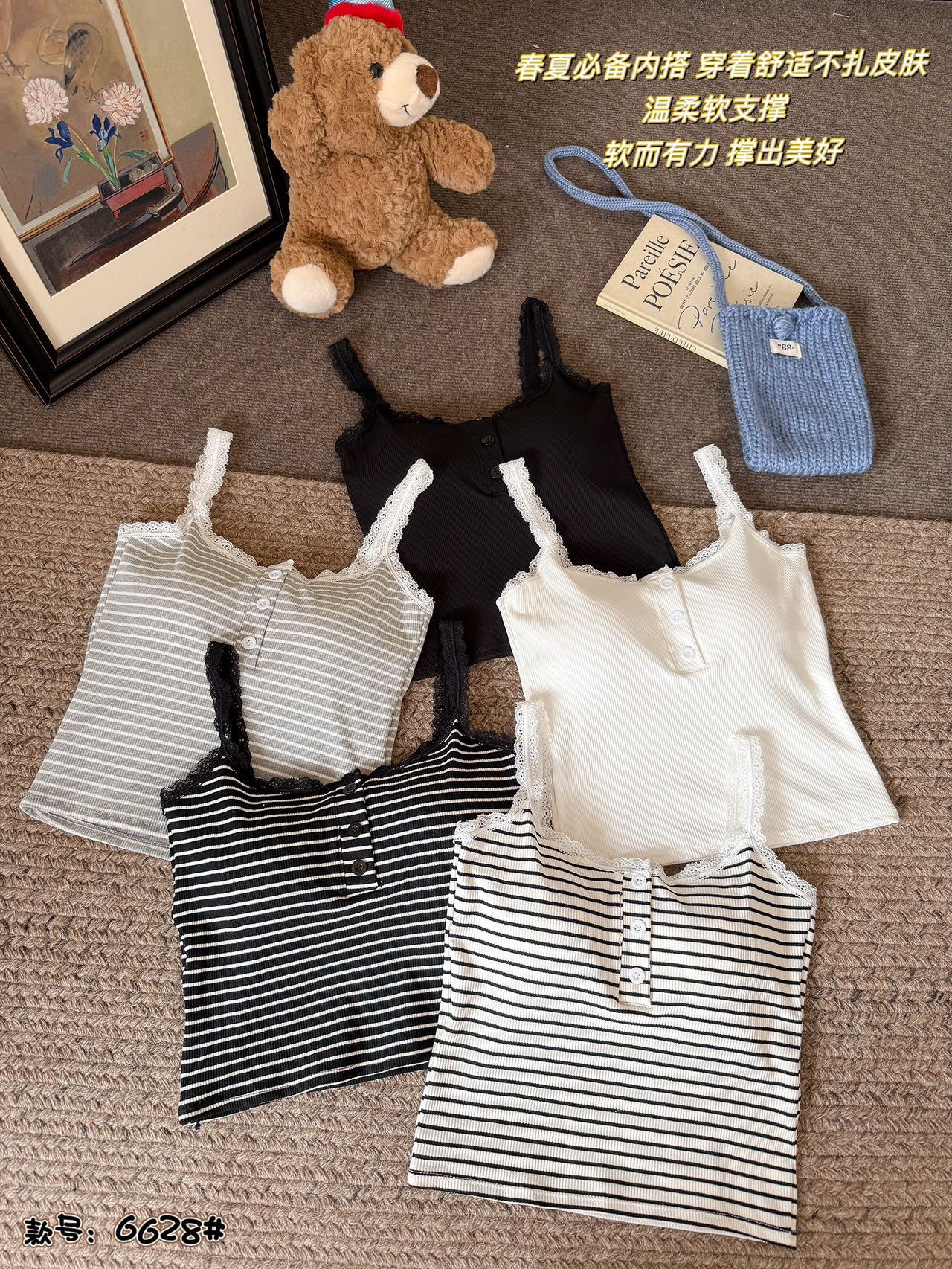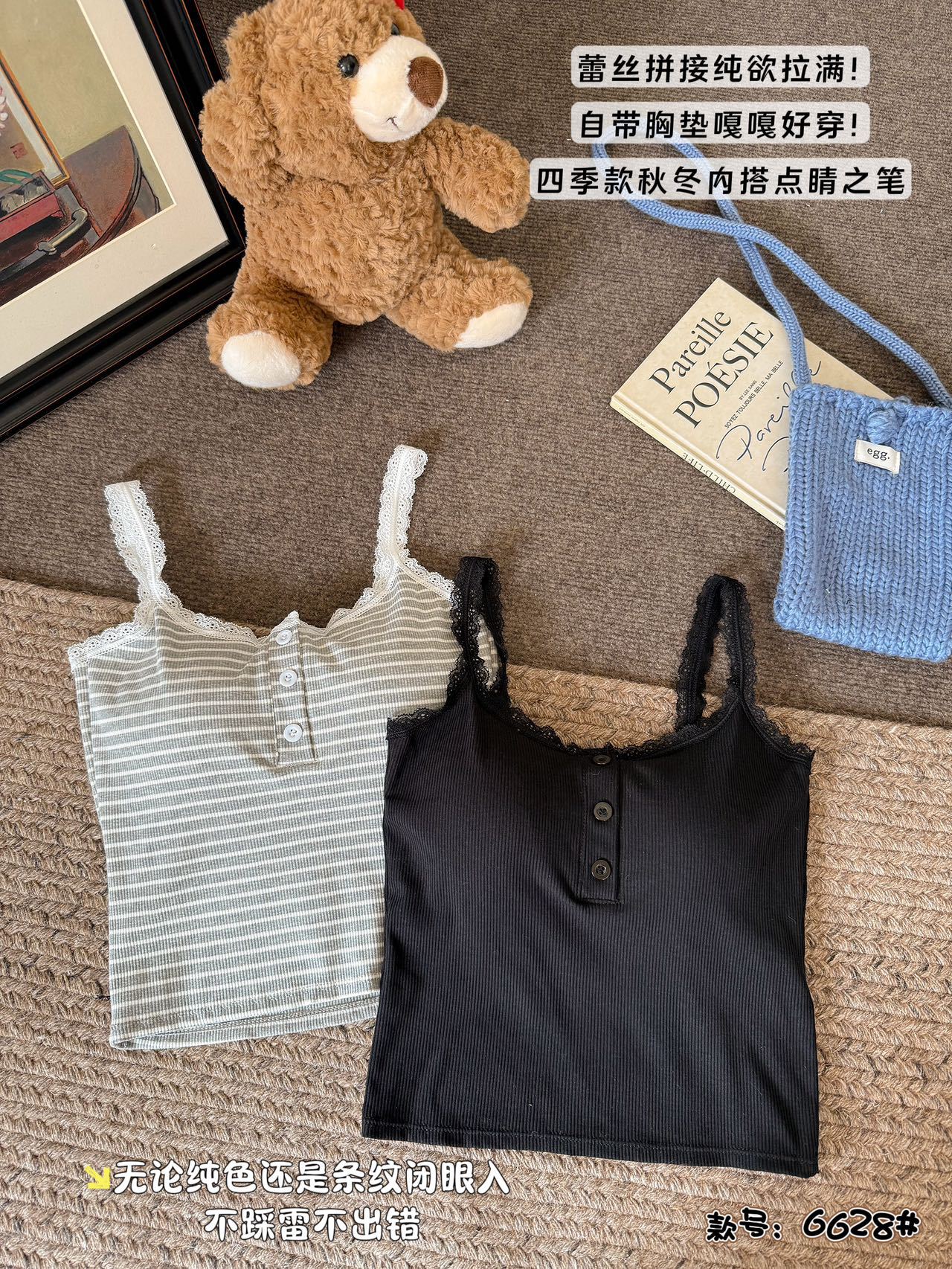 퓨어 올 매치 레이스 스트라이프 버튼 카미 솔 여성용 달콤하고 핫 슬림 핏 슬리밍 탑, 가슴 패드베이스 셔츠스토어 가기