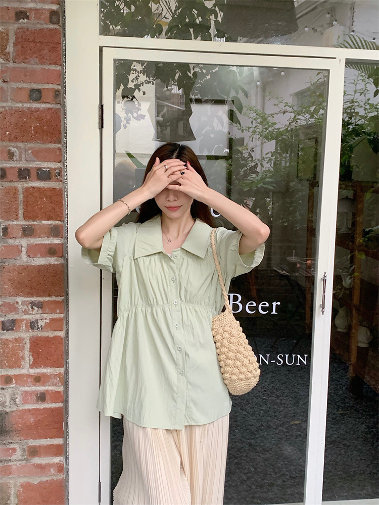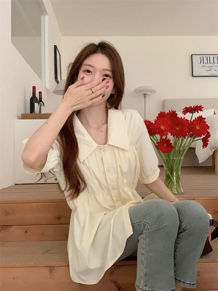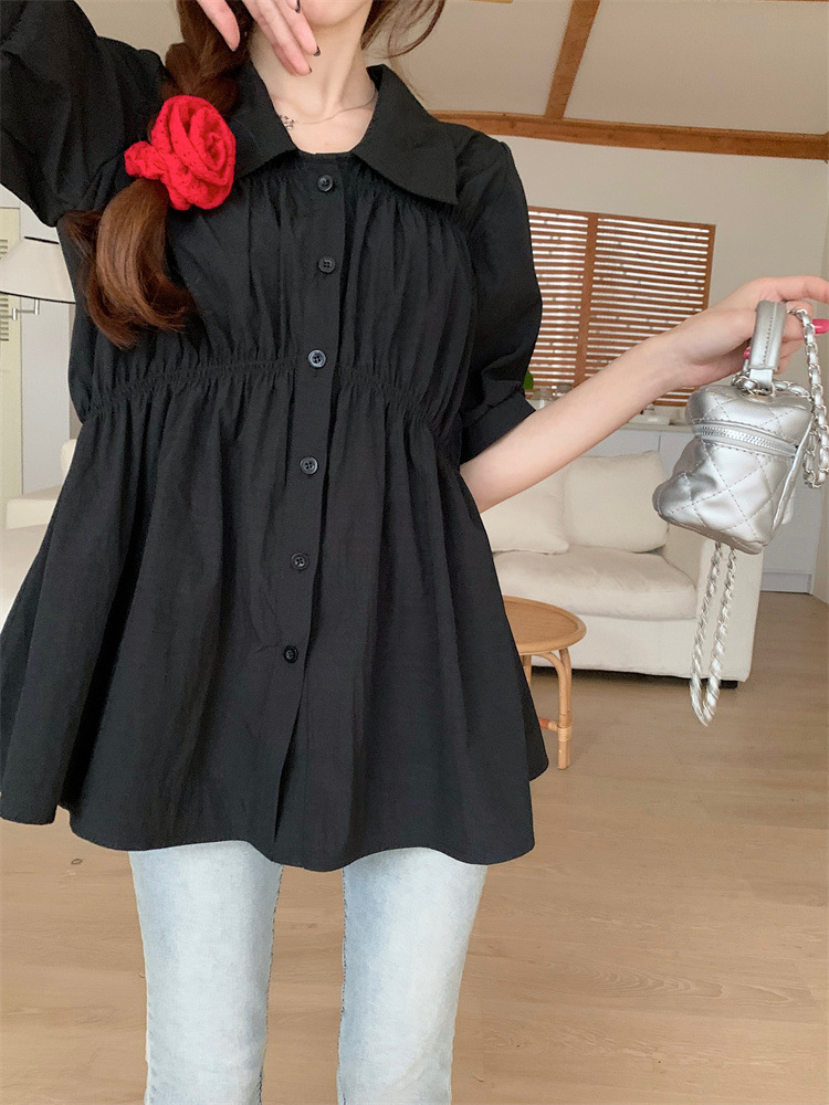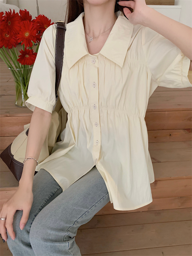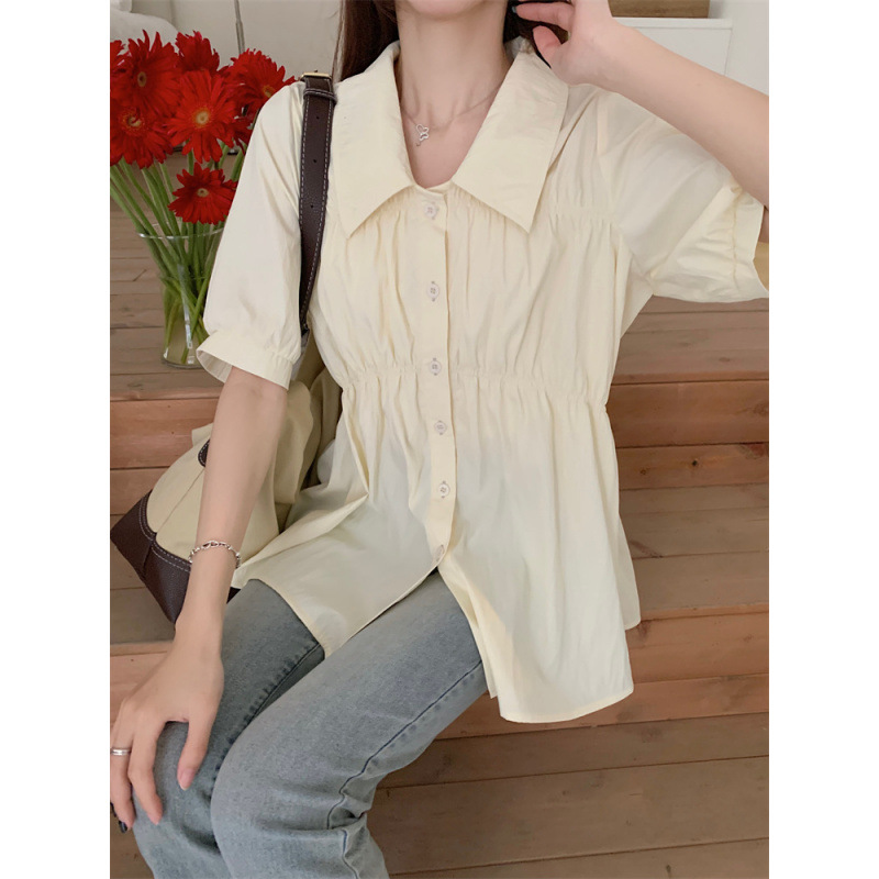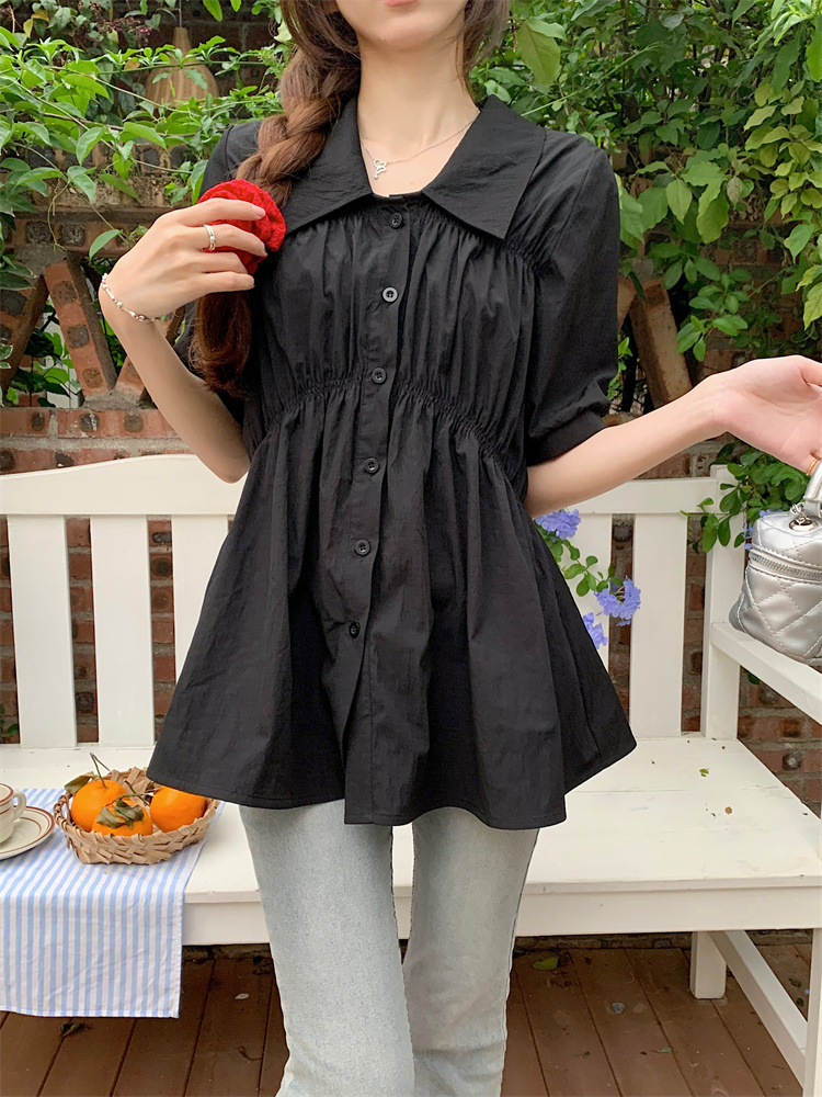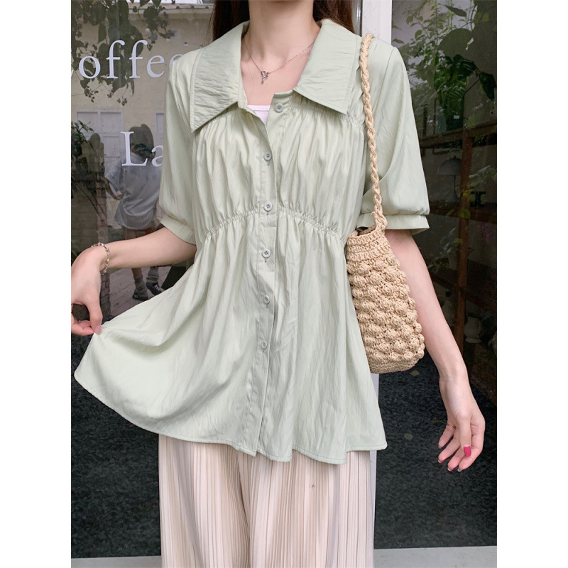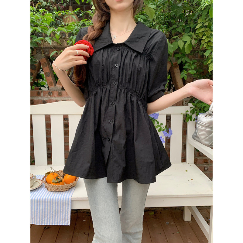 플러스 사이즈 벨리 커버 허리 어깨 반팔 셔츠 여성용 여름 슬림핏 러플 인형 셔츠 탑스토어 가기