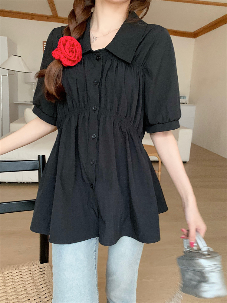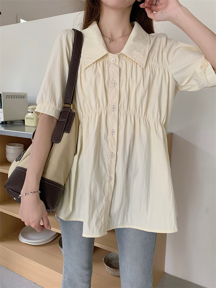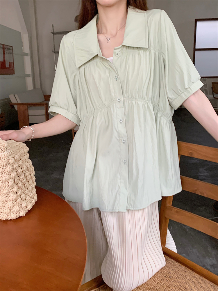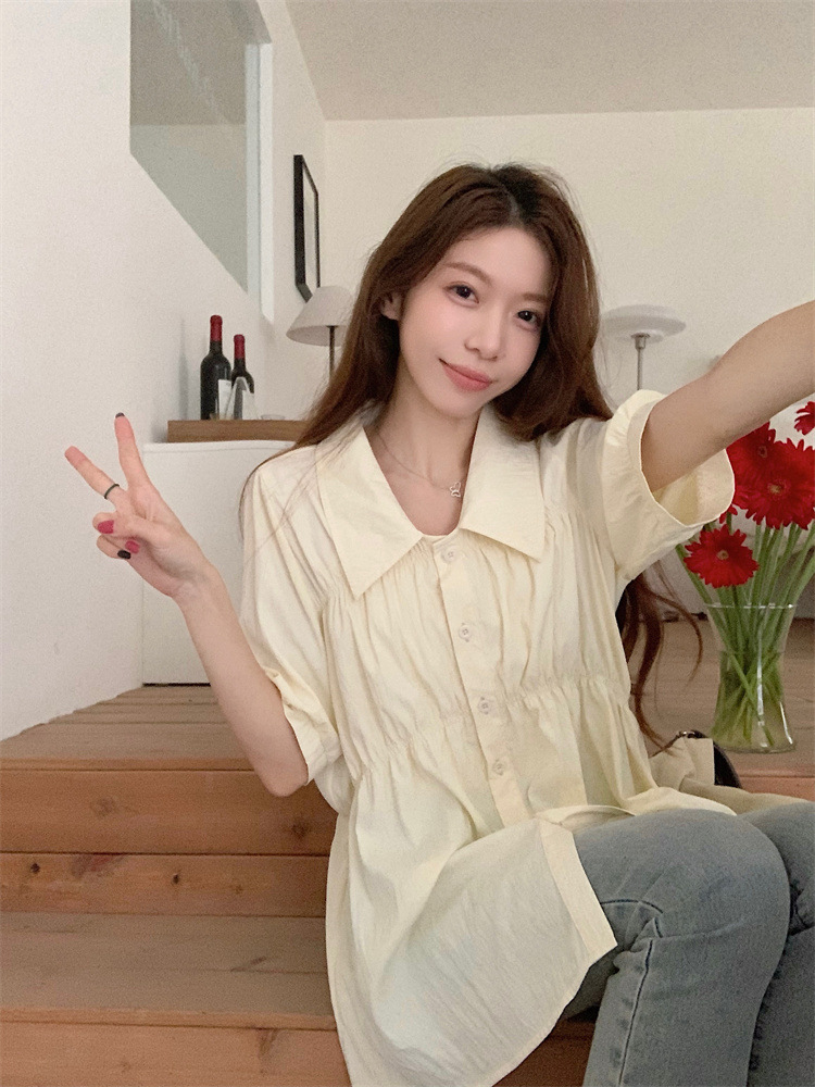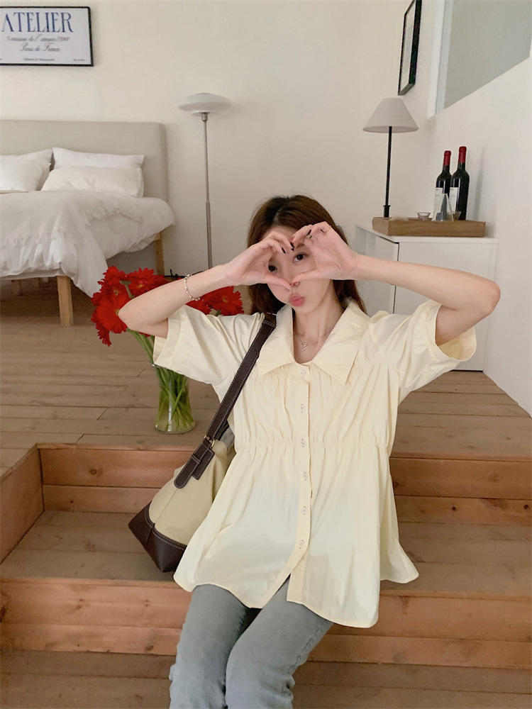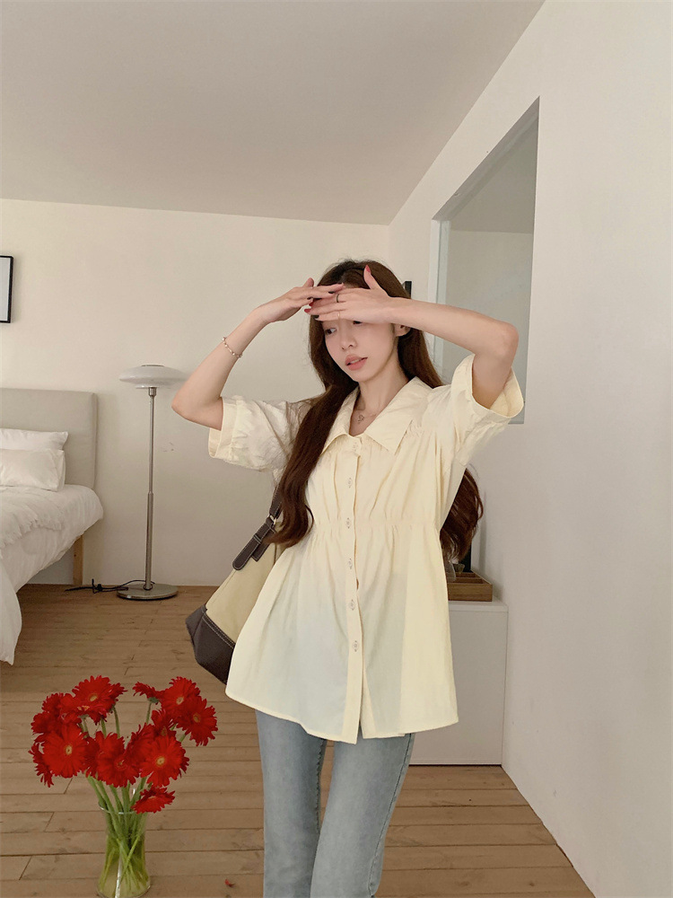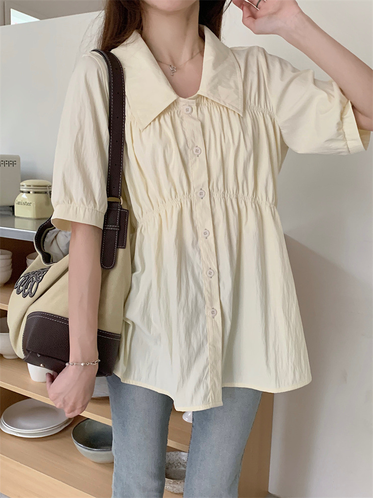 플러스 사이즈 벨리 커버 허리 어깨 반팔 셔츠 여성용 여름 슬림핏 러플 인형 셔츠 탑스토어 가기