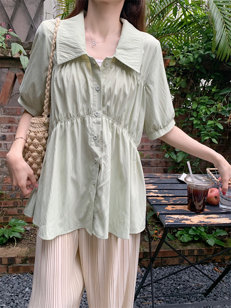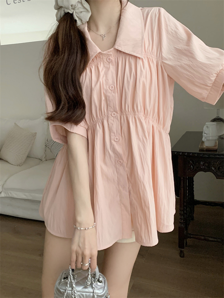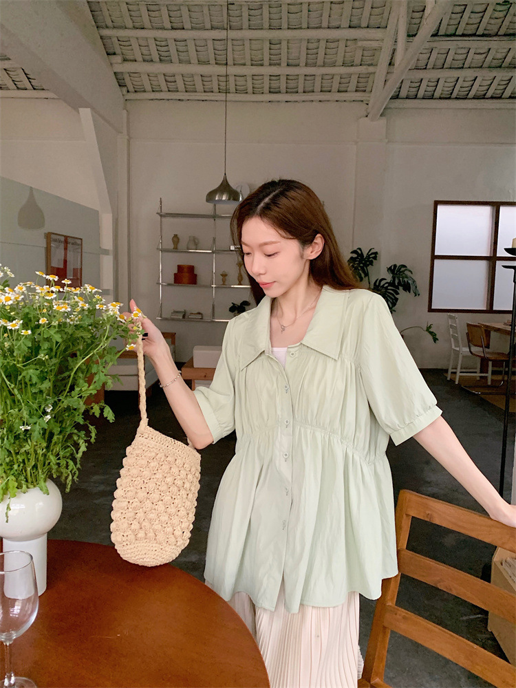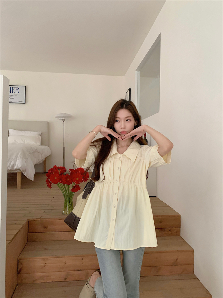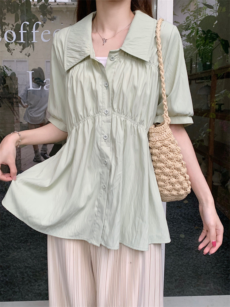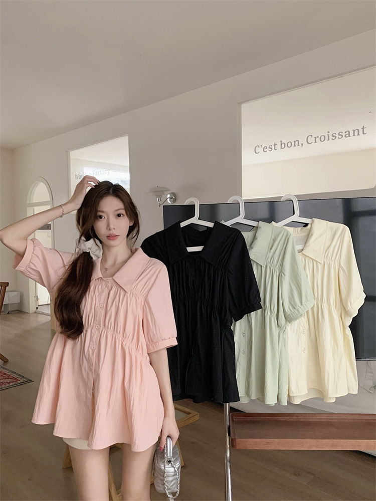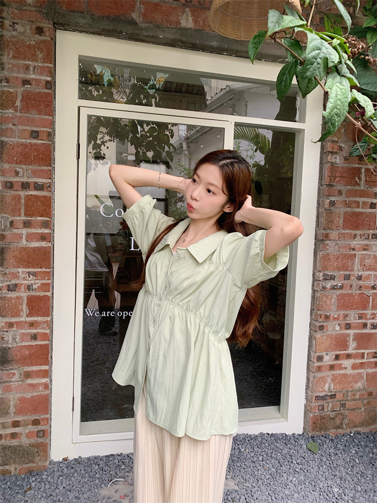 플러스 사이즈 벨리 커버 허리 어깨 반팔 셔츠 여성용 여름 슬림핏 러플 인형 셔츠 탑스토어 가기