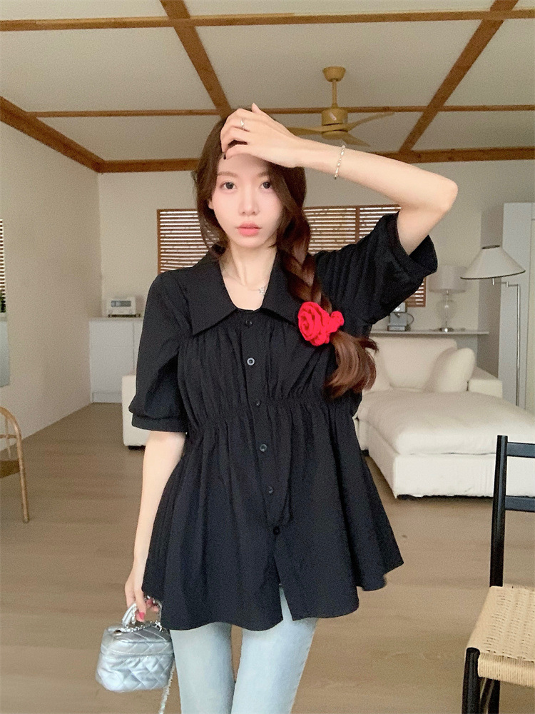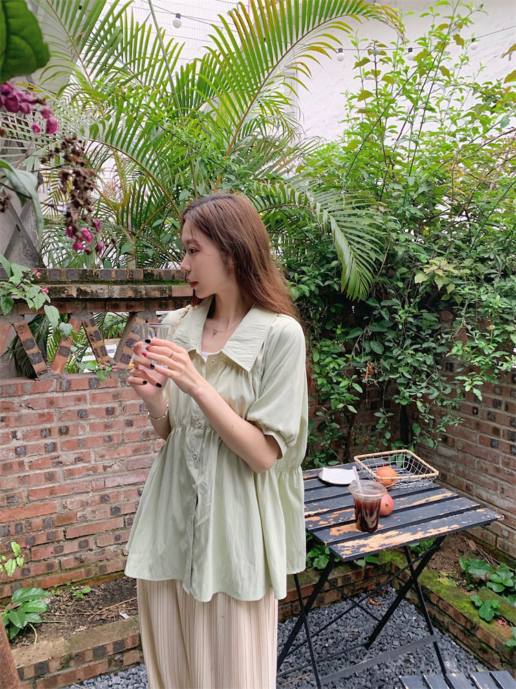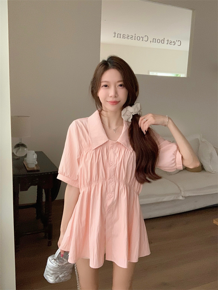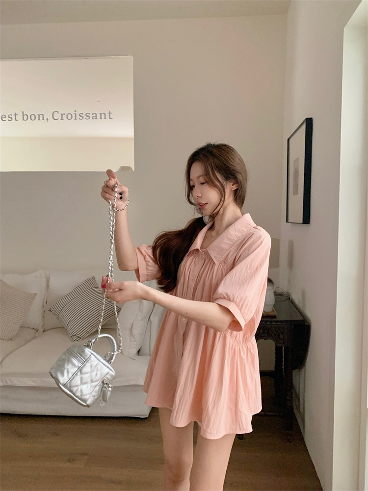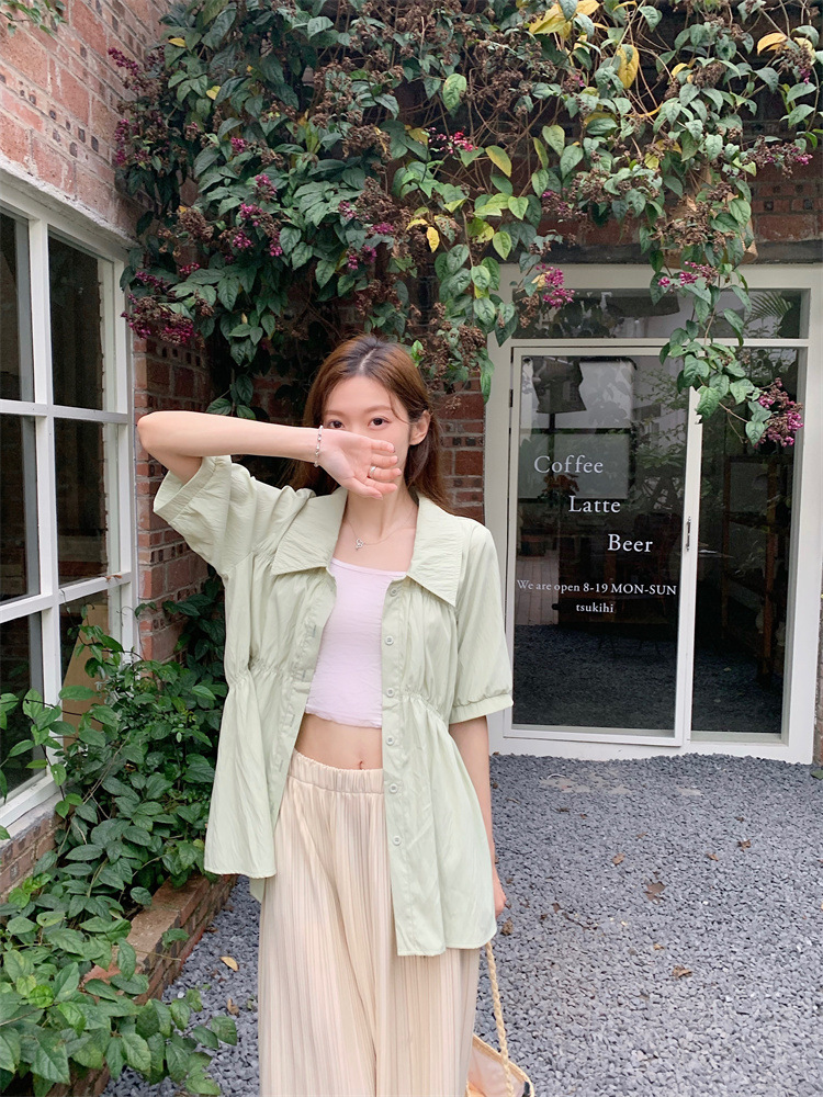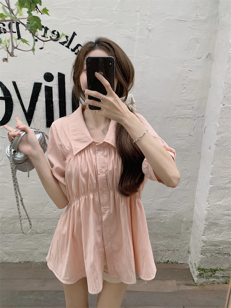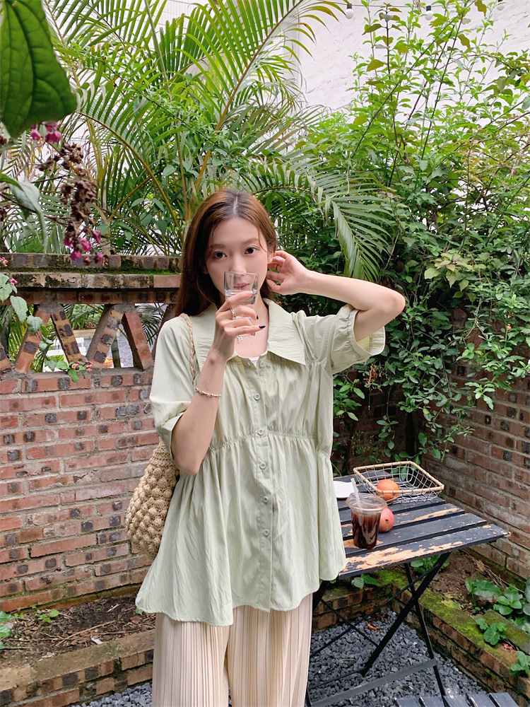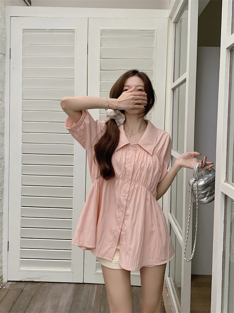 플러스 사이즈 벨리 커버 허리 어깨 반팔 셔츠 여성용 여름 슬림핏 러플 인형 셔츠 탑스토어 가기