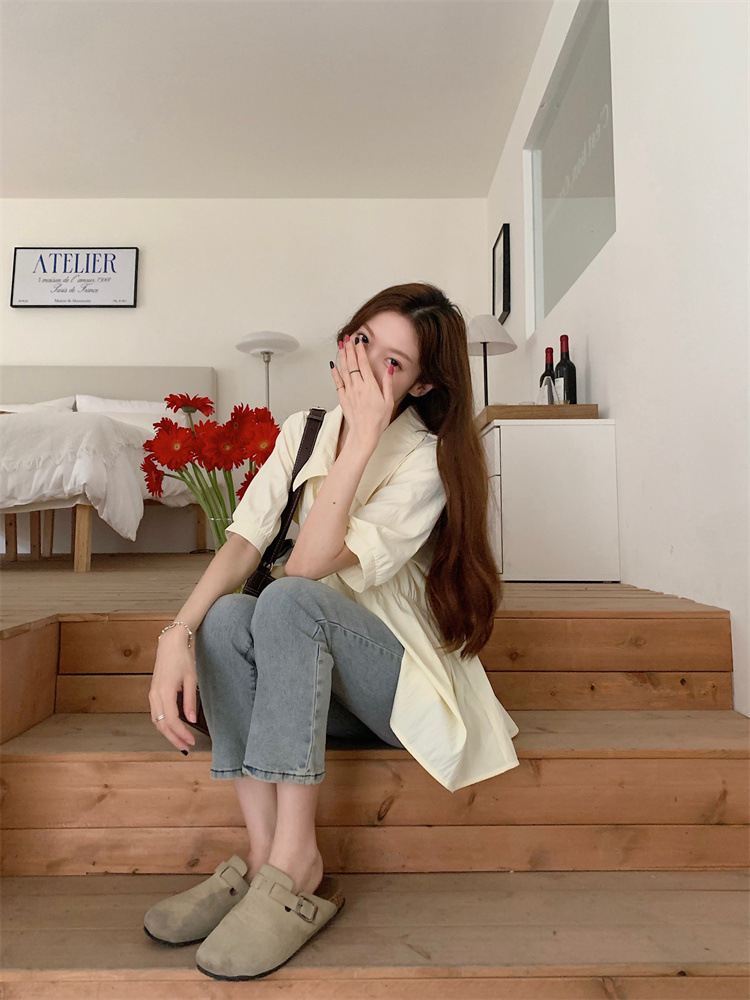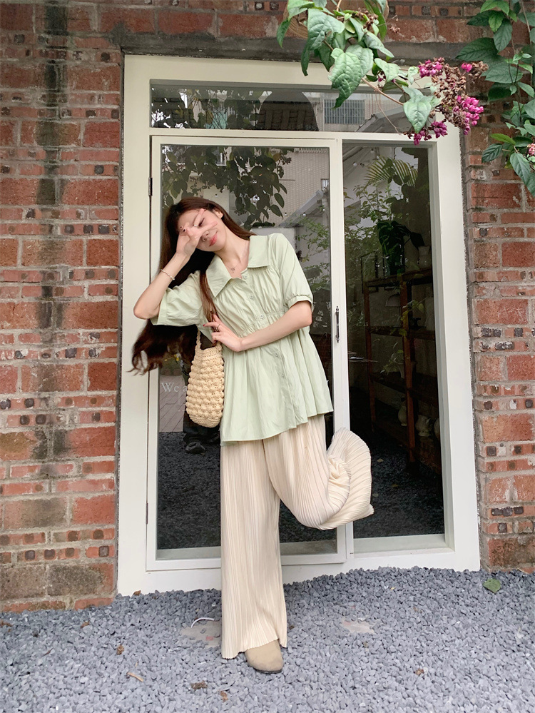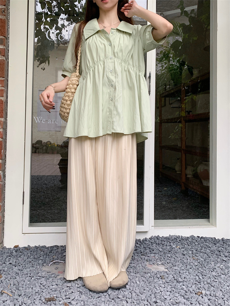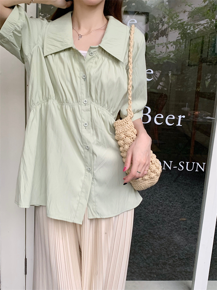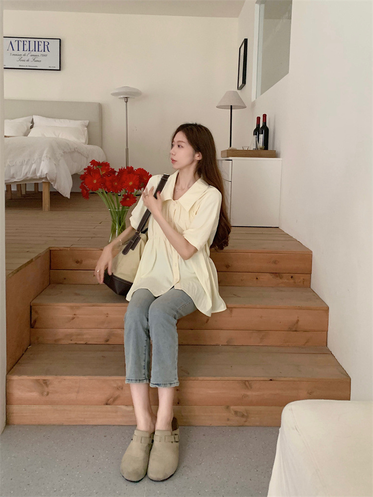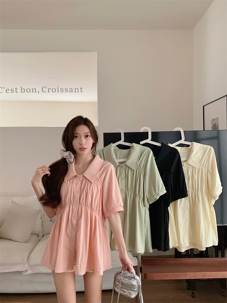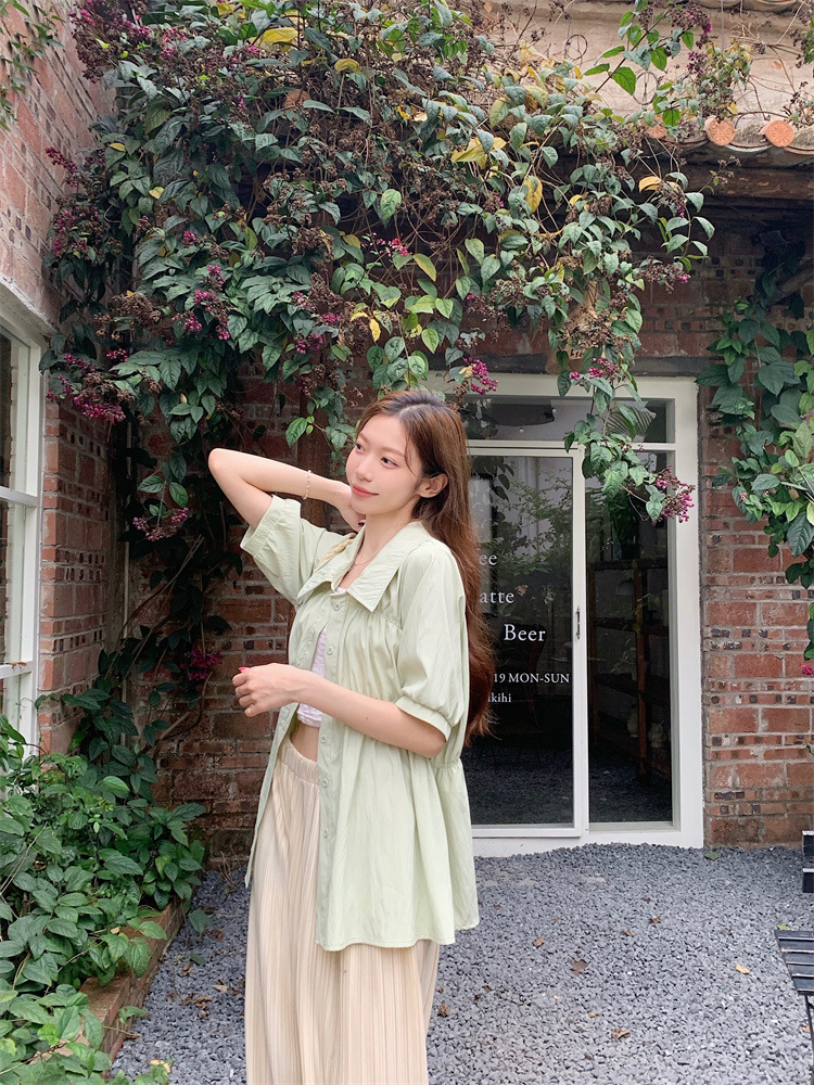 플러스 사이즈 벨리 커버 허리 어깨 반팔 셔츠 여성용 여름 슬림핏 러플 인형 셔츠 탑스토어 가기