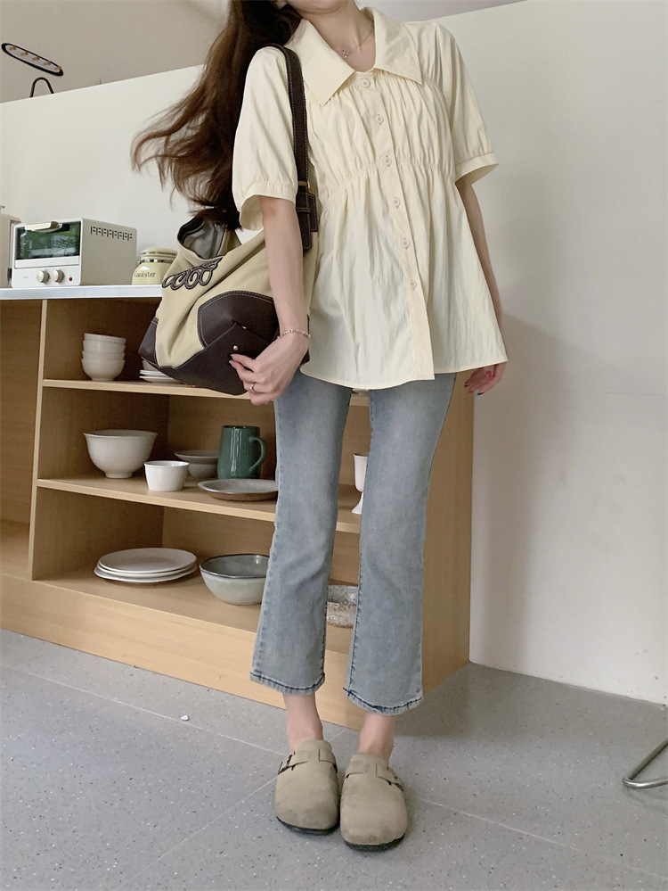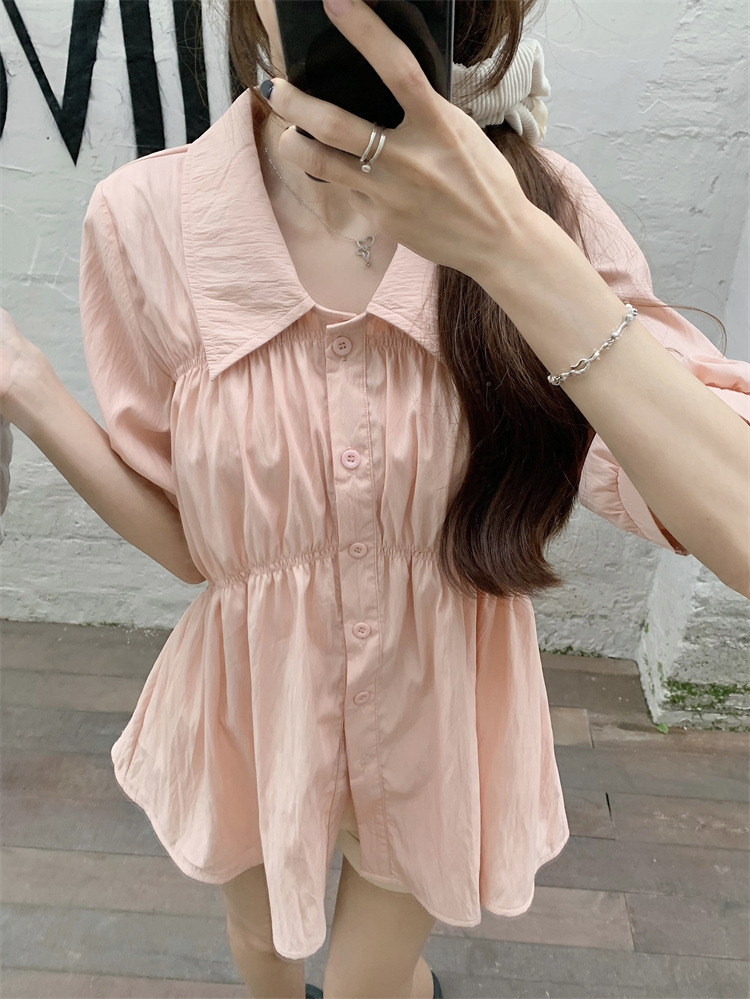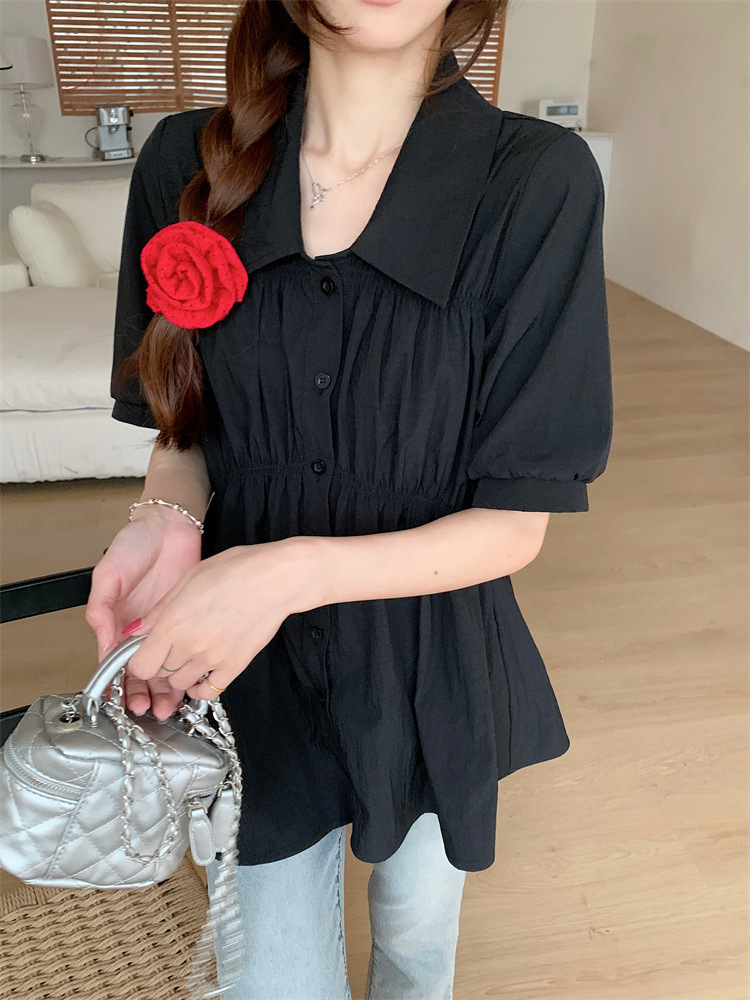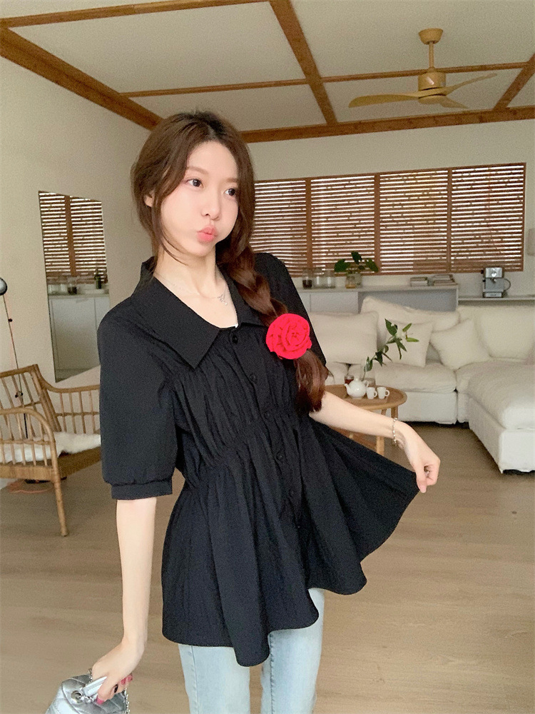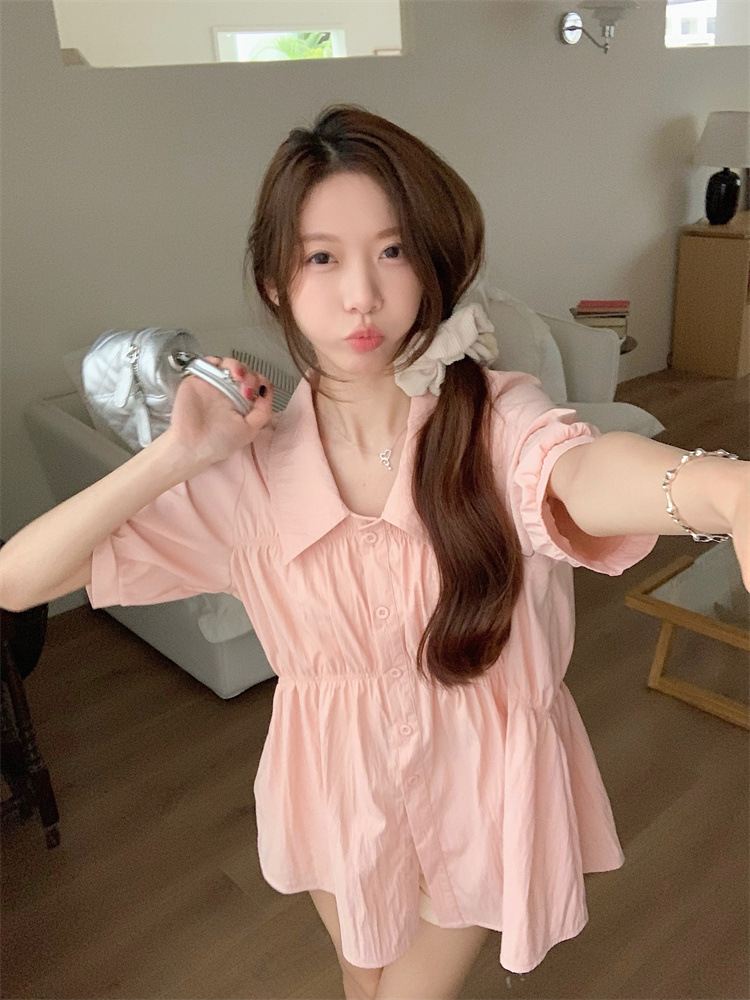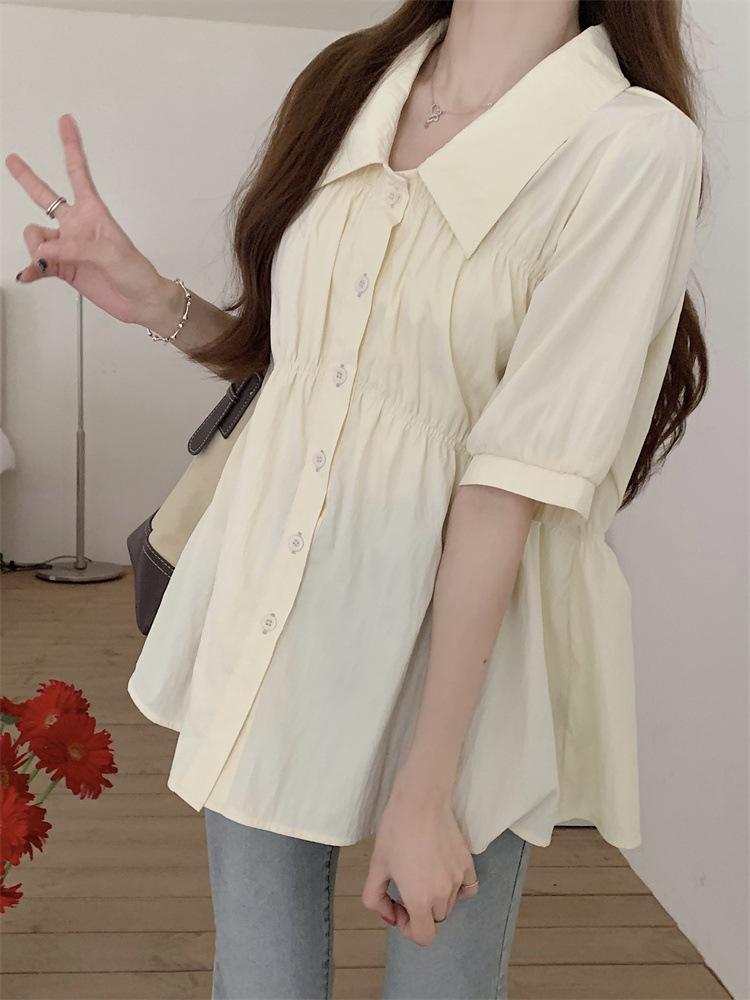 플러스 사이즈 벨리 커버 허리 어깨 반팔 셔츠 여성용 여름 슬림핏 러플 인형 셔츠 탑