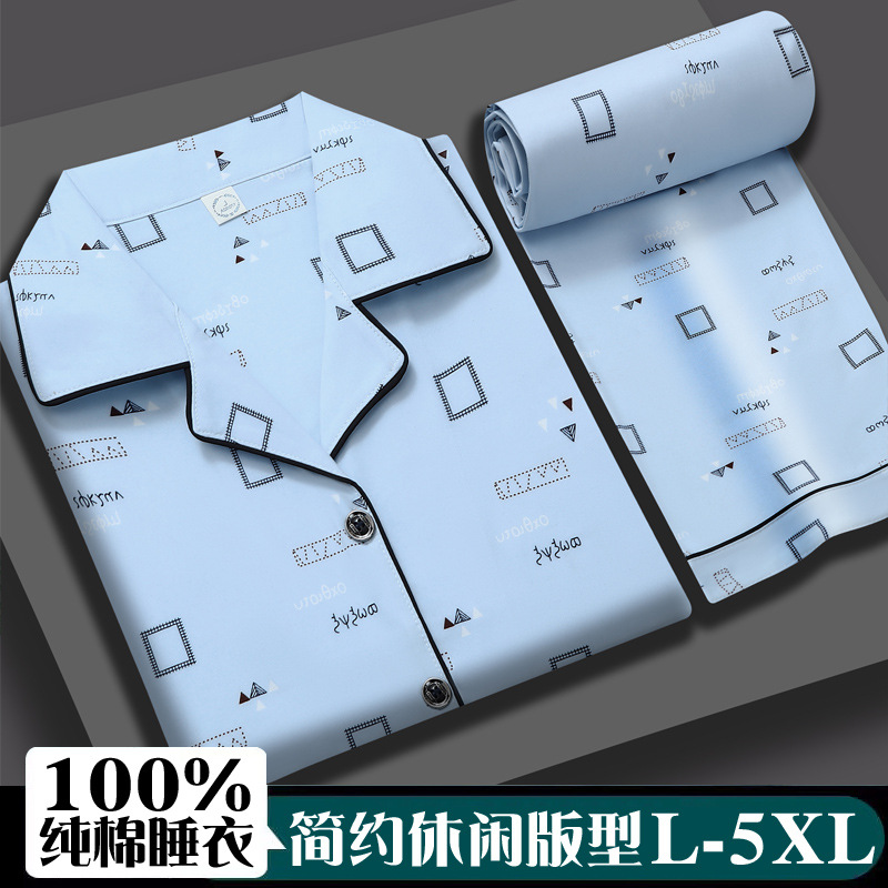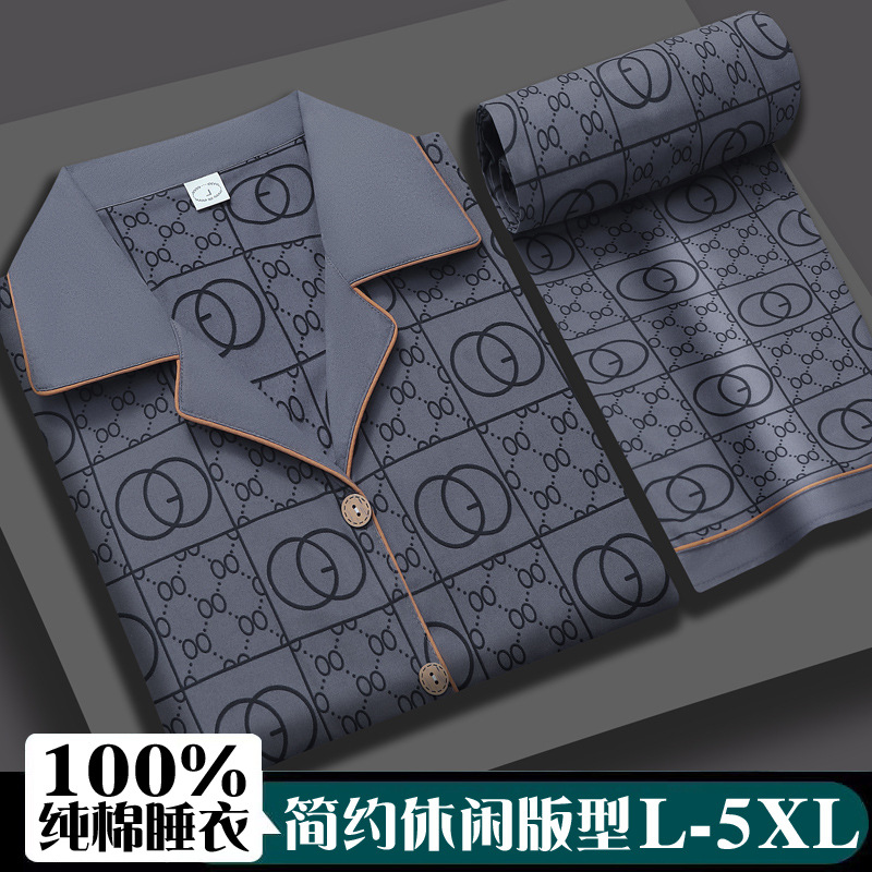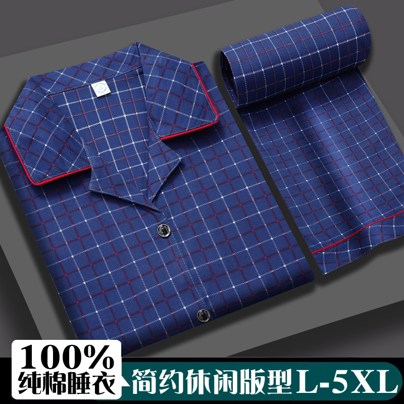 100% 면 잠옷 남성용 여름 얇은 반팔 바지 중년 아빠용 외형 홈 의류 플러스 사이즈 세트스토어 가기