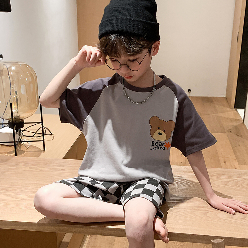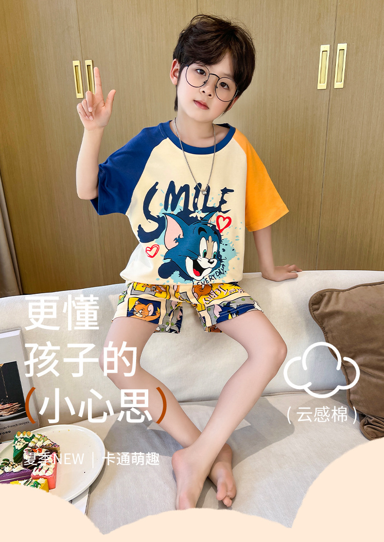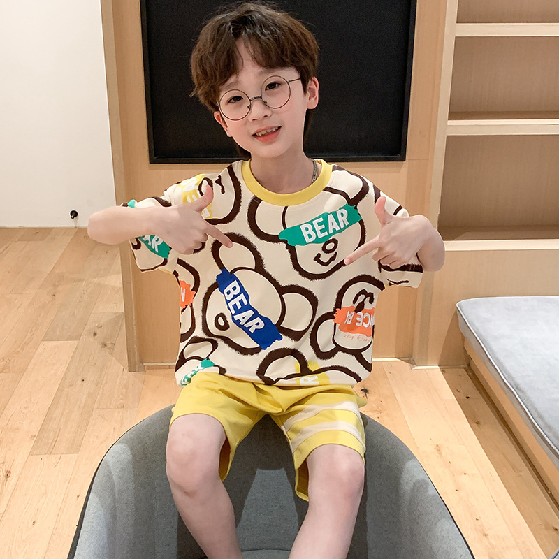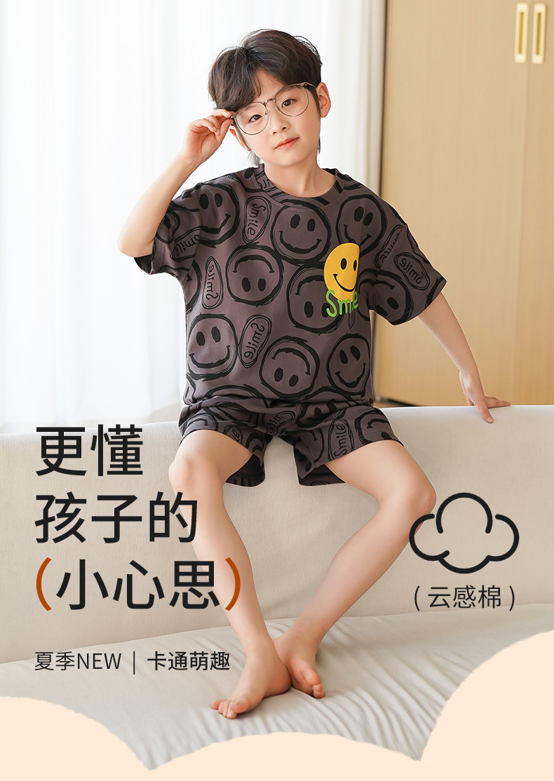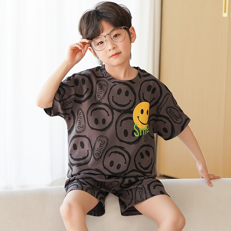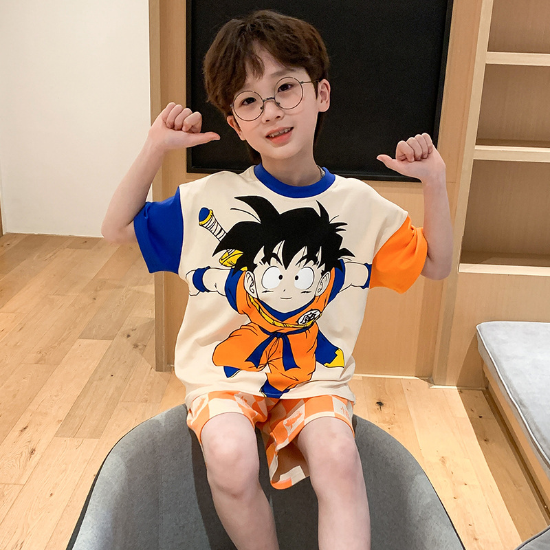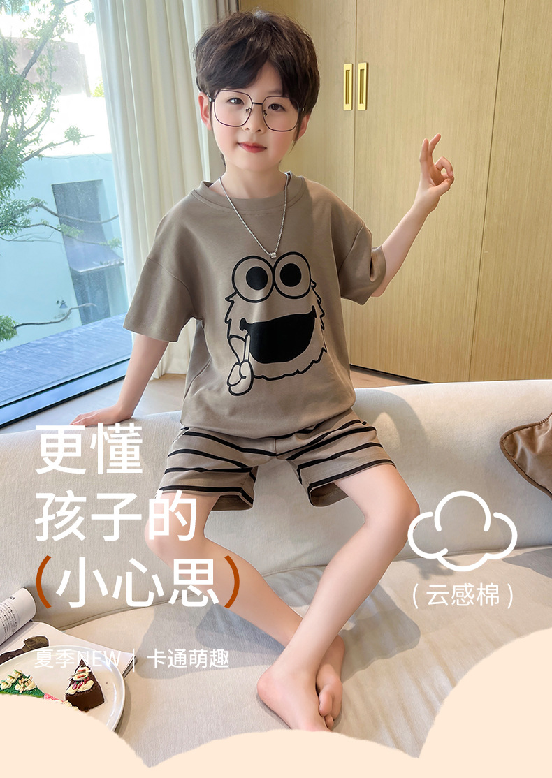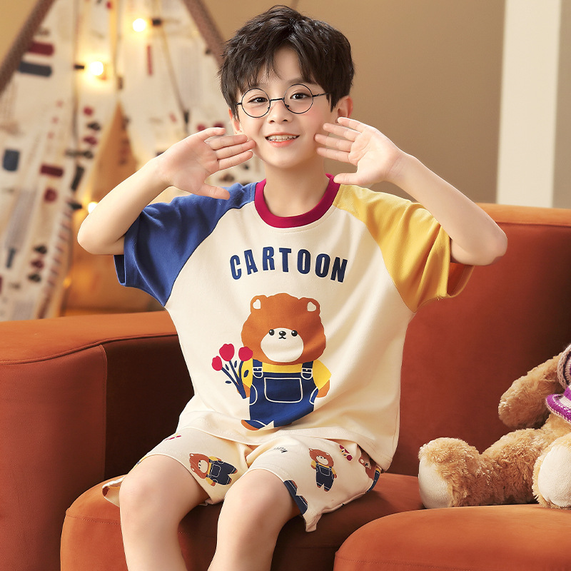 소년 잠옷 어린이 여름 100% 순면 반팔 얇은 소년 중 · 대형 소년 청소년 홈 의류 만화 세트