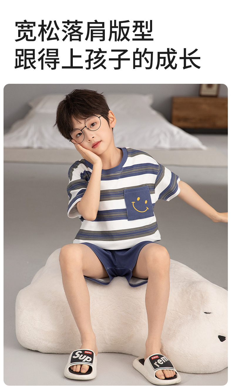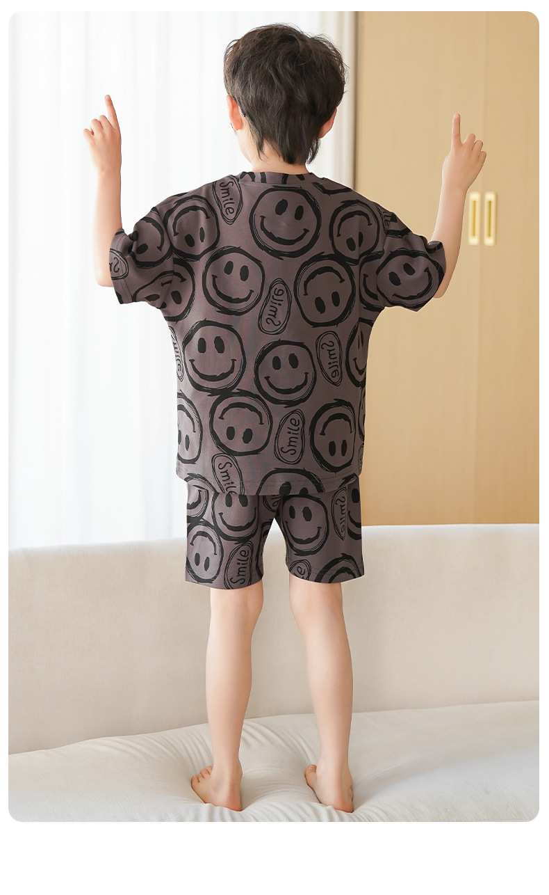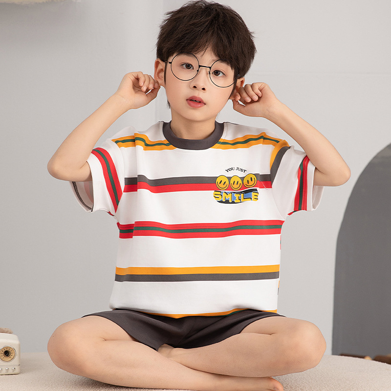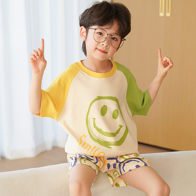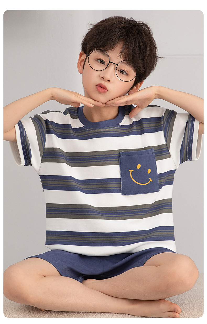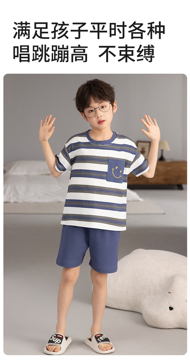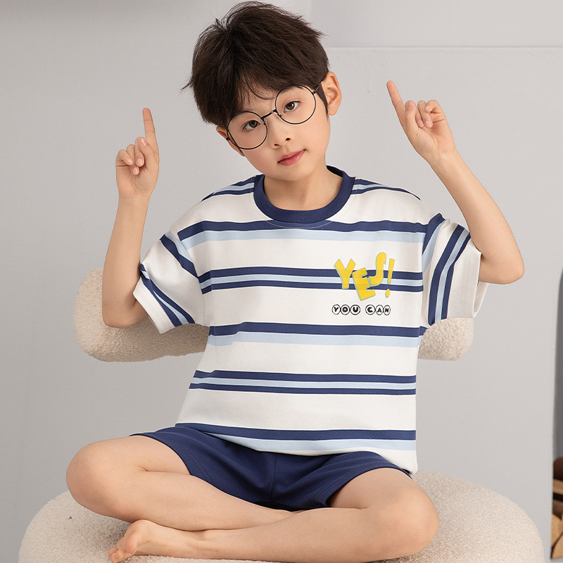 소년 잠옷 어린이 여름 100% 순면 반팔 얇은 소년 중 · 대형 소년 청소년 홈 의류 만화 세트
