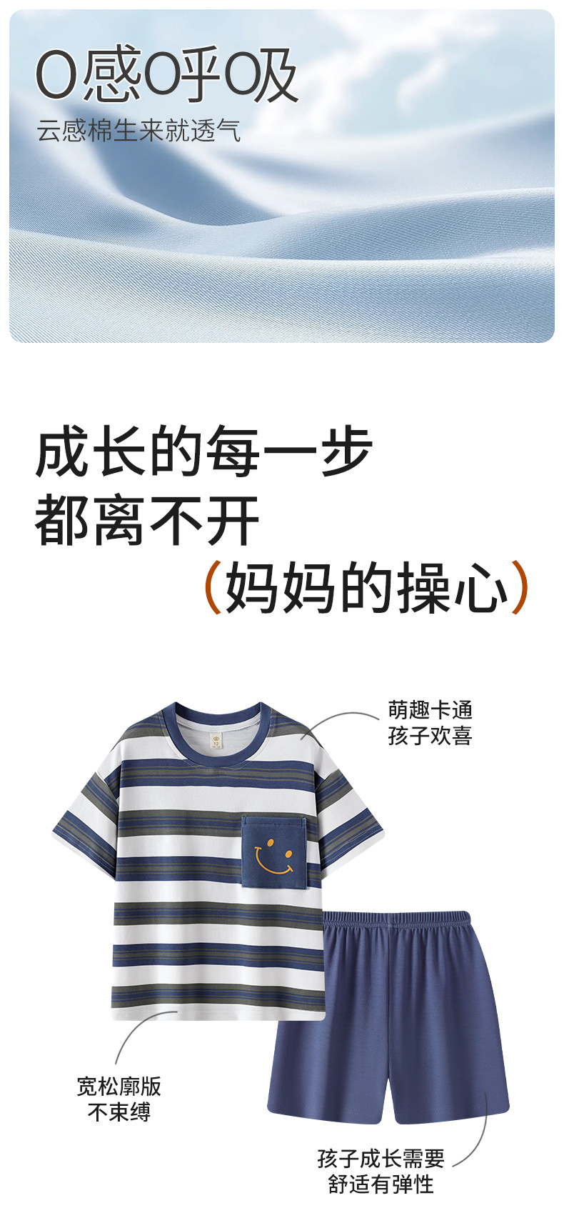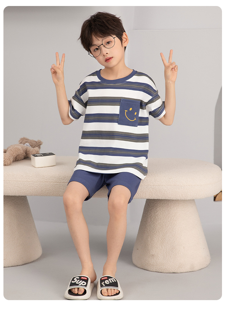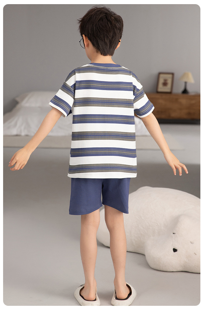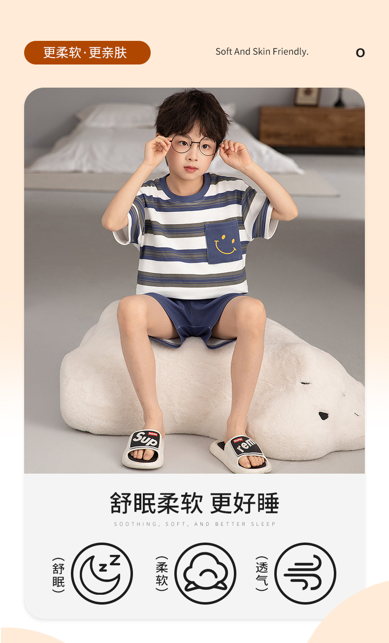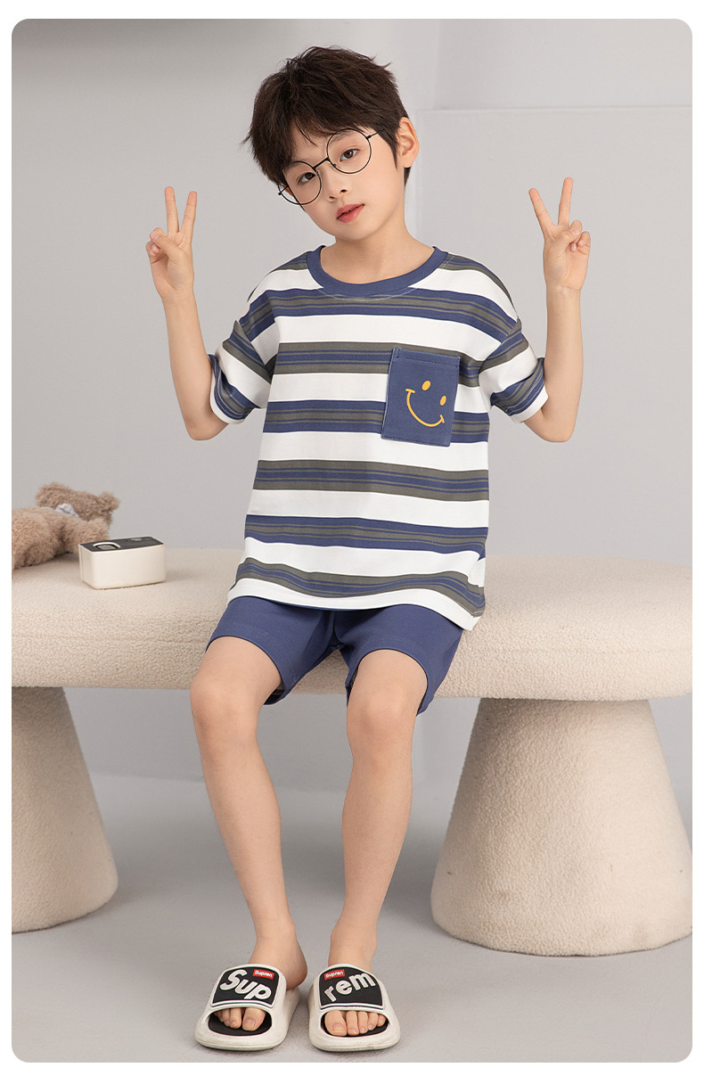 소년 잠옷 어린이 여름 100% 순면 반팔 얇은 소년 중 · 대형 소년 청소년 홈 의류 만화 세트
