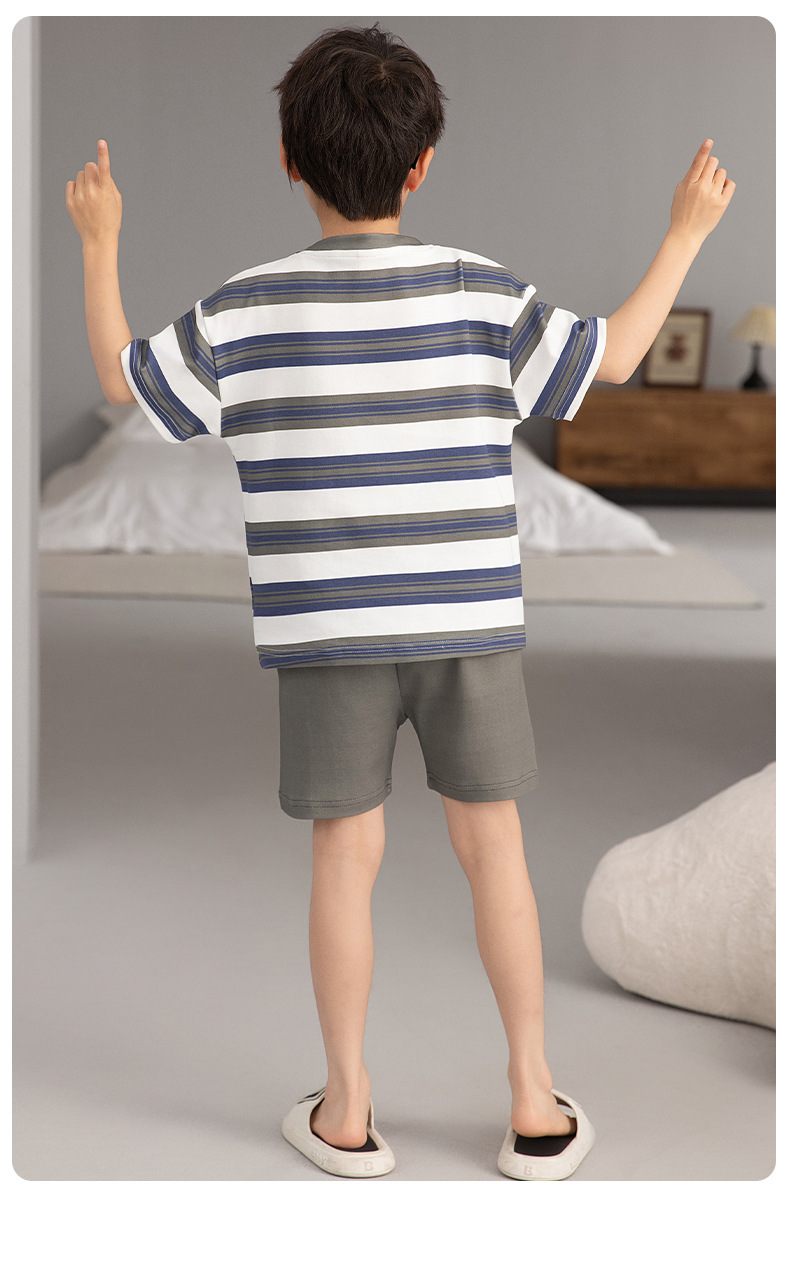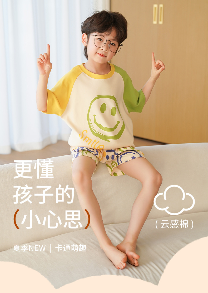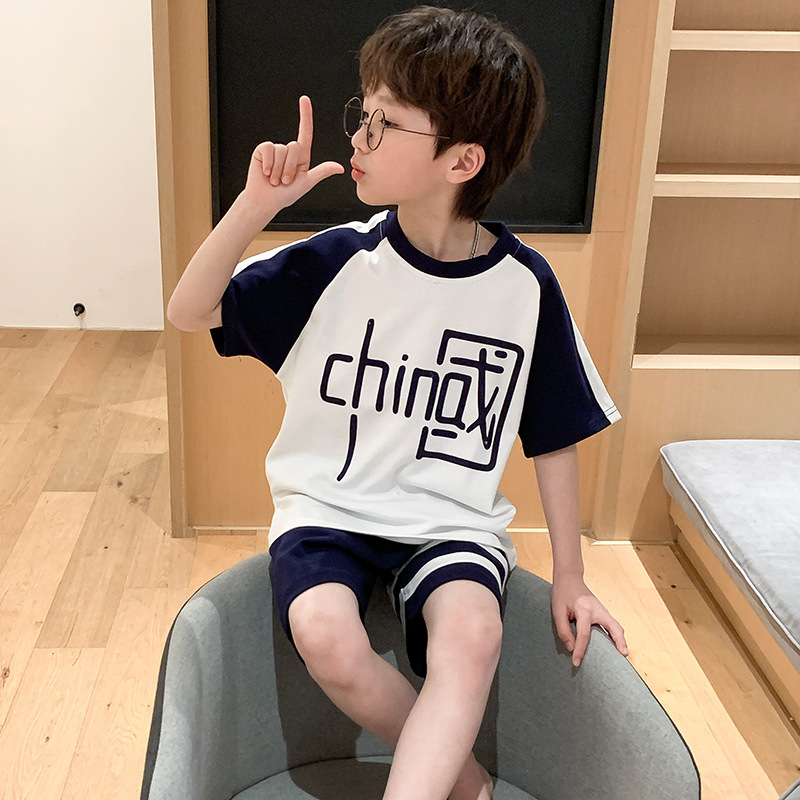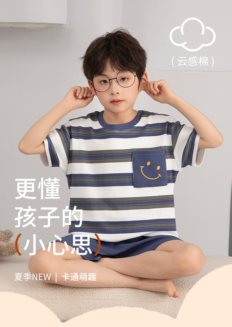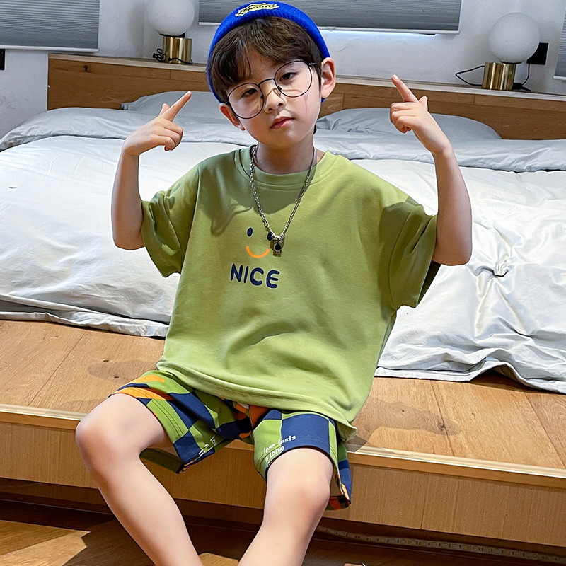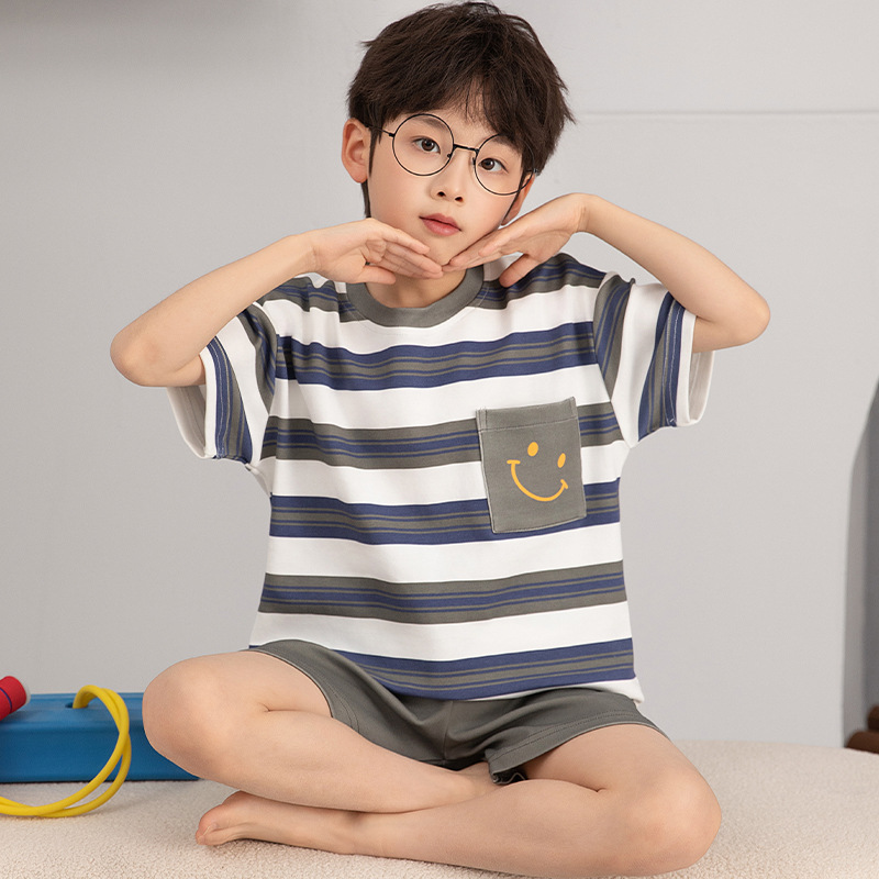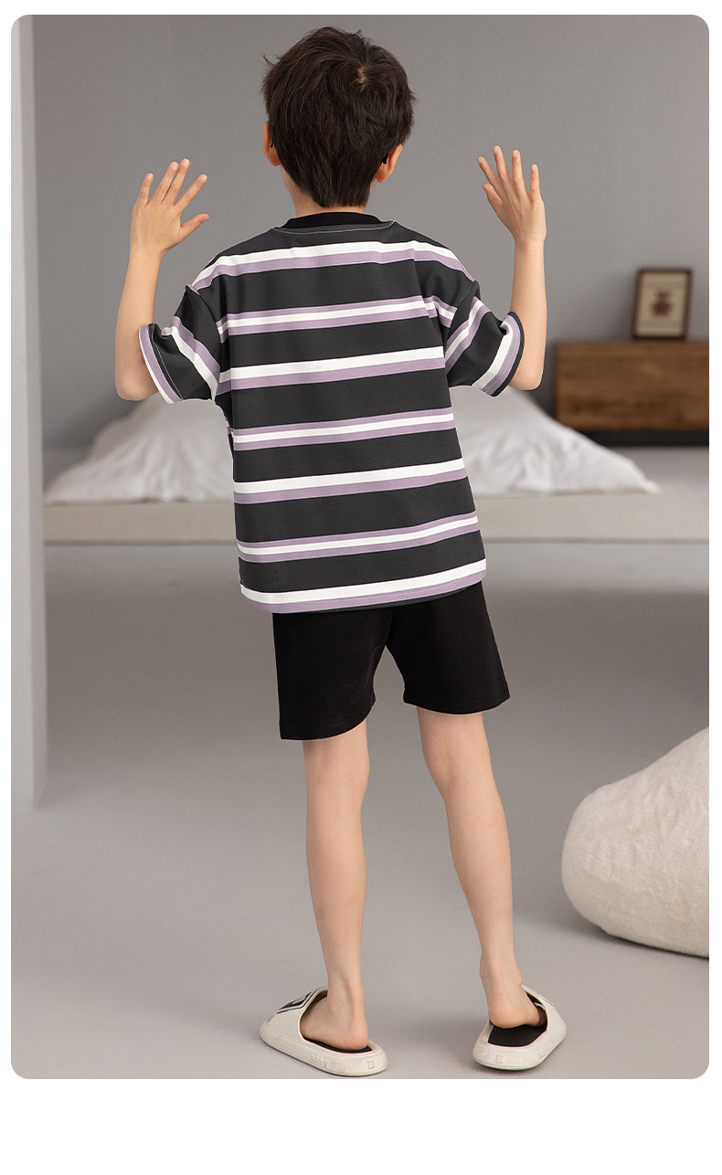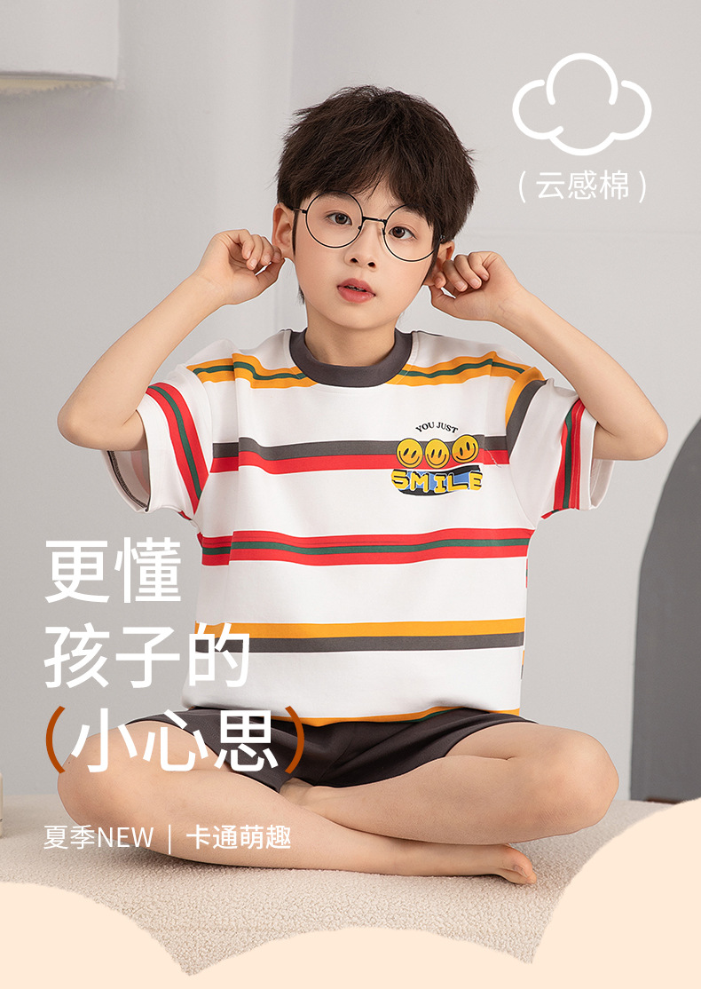 소년 잠옷 어린이 여름 100% 순면 반팔 얇은 소년 중 · 대형 소년 청소년 홈 의류 만화 세트