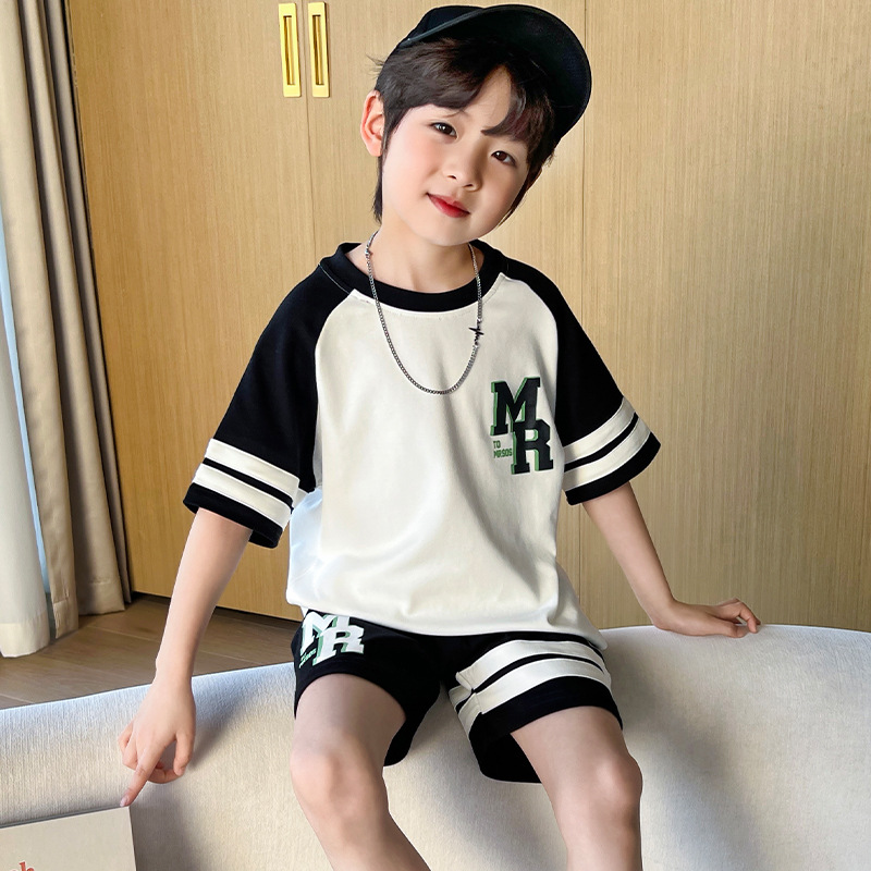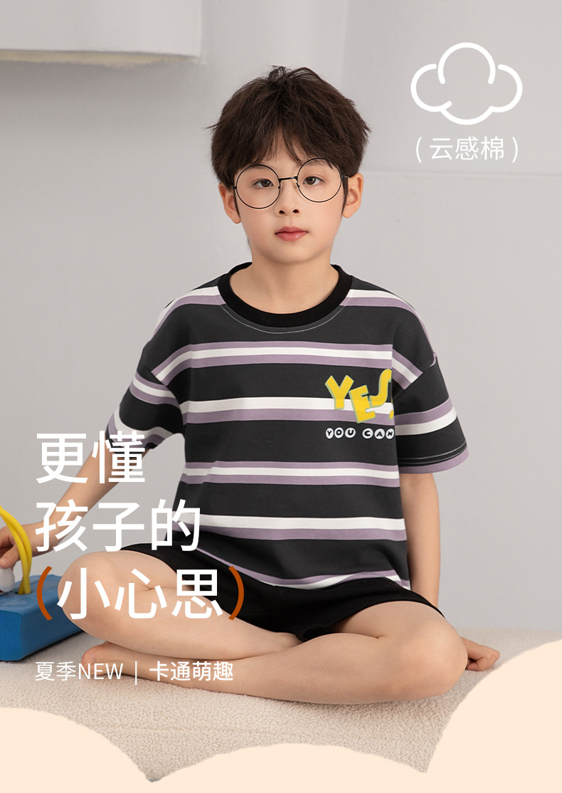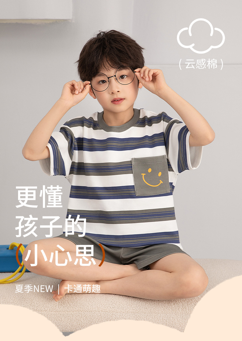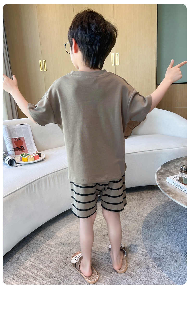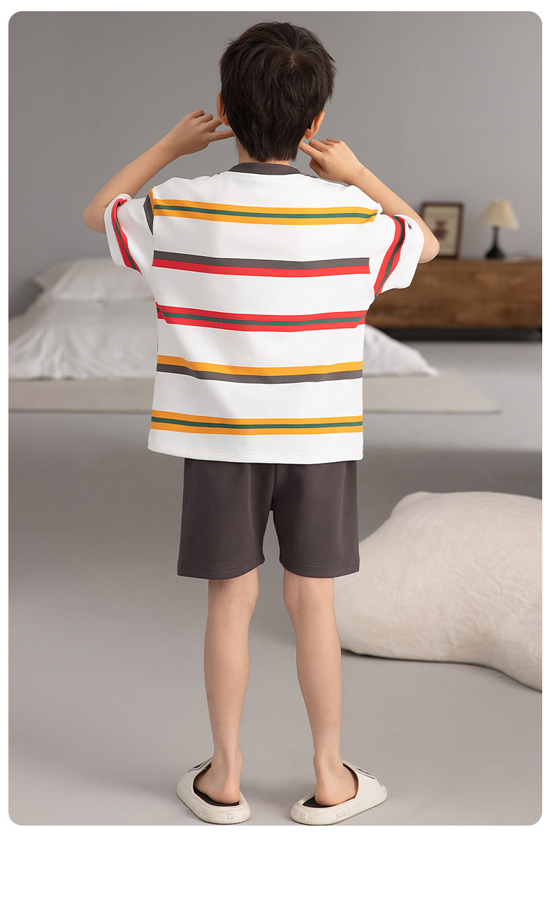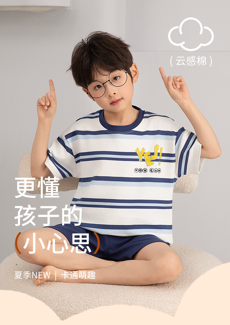 소년 잠옷 어린이 여름 100% 순면 반팔 얇은 소년 중 · 대형 소년 청소년 홈 의류 만화 세트