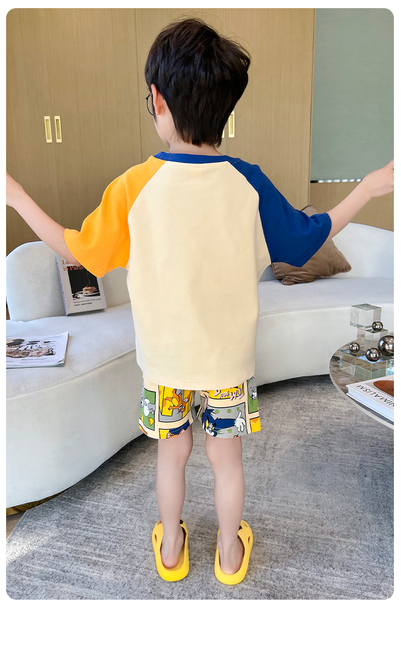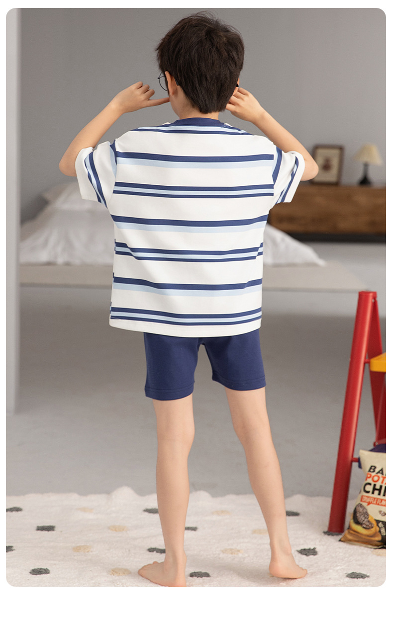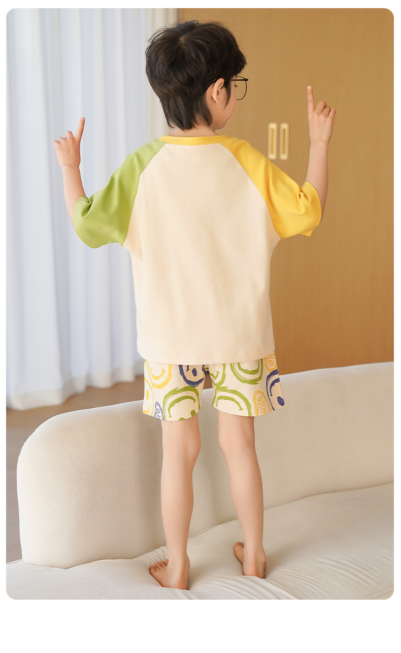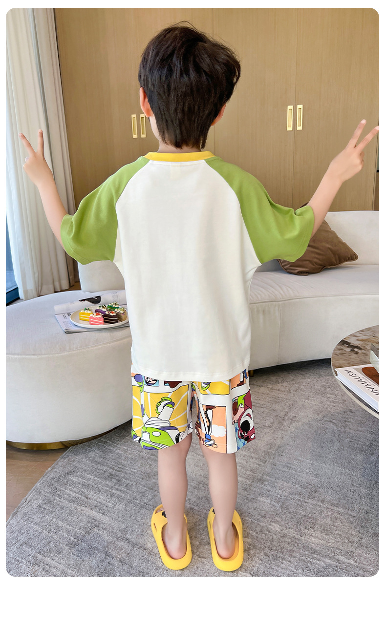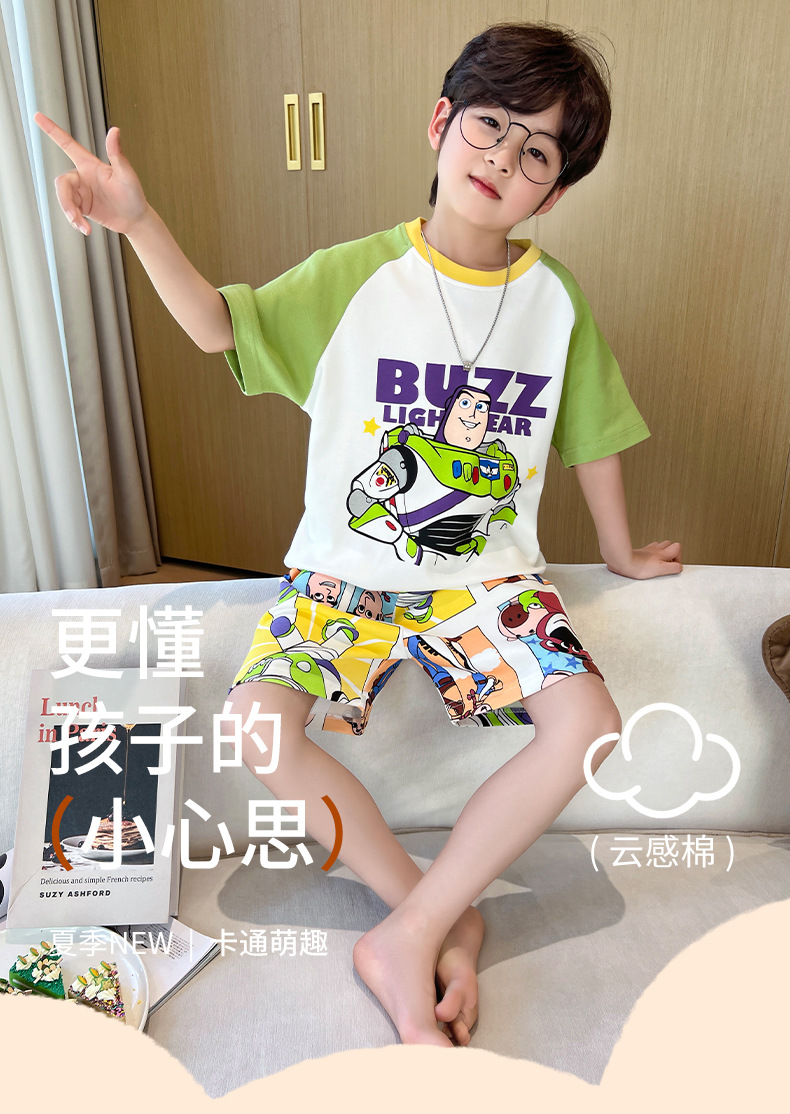 소년 잠옷 어린이 여름 100% 순면 반팔 얇은 소년 중 · 대형 소년 청소년 홈 의류 만화 세트스토어 가기