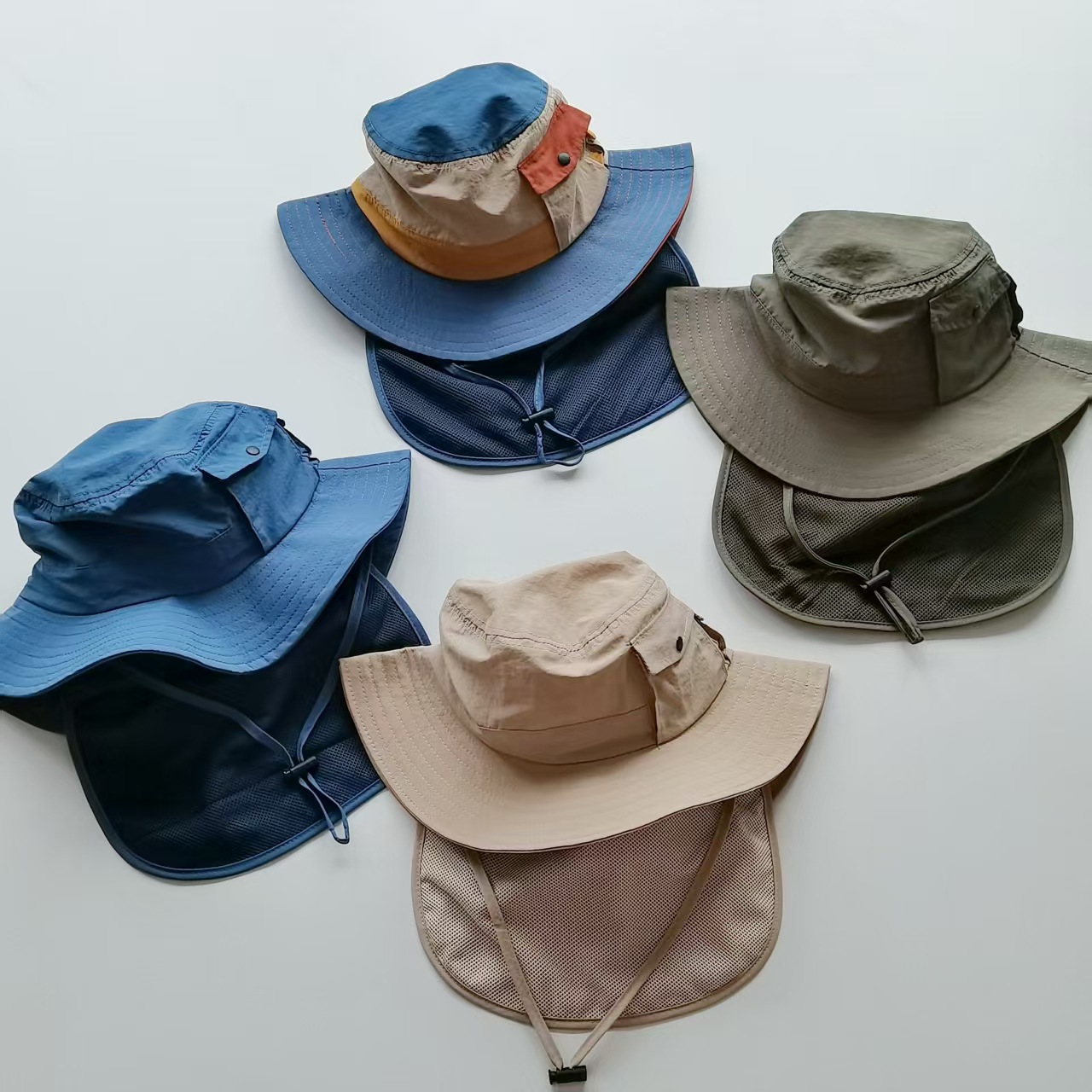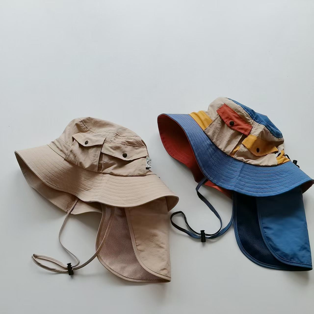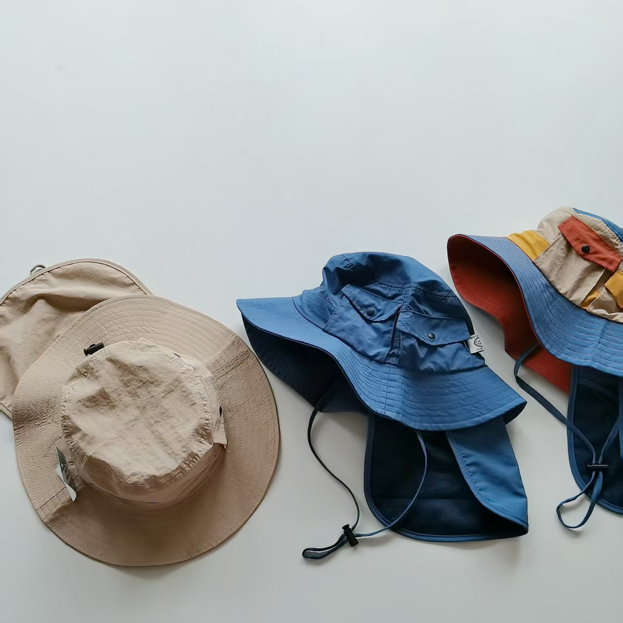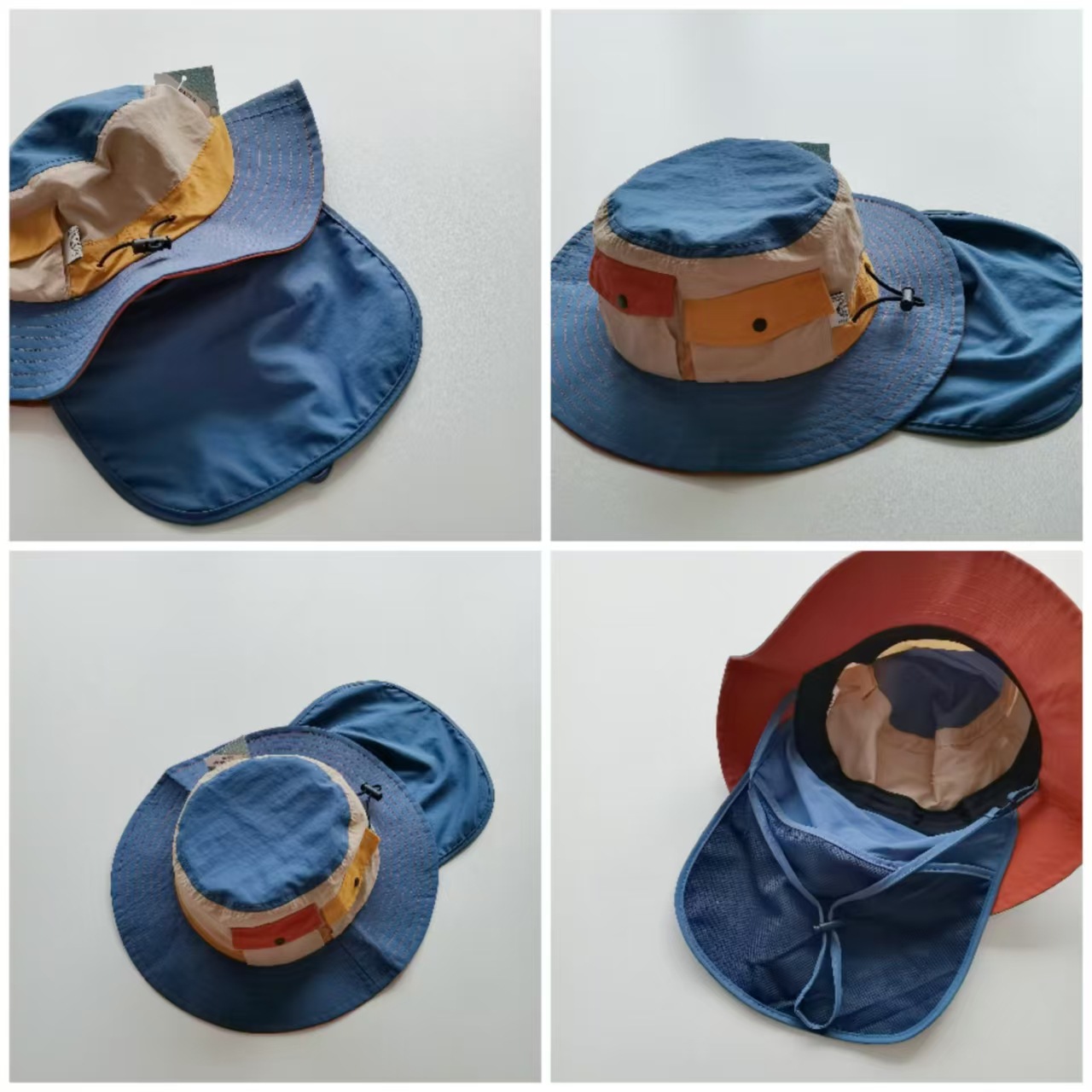 안티 자외선 어부 모자 부모-어린이 스타일은 가방 목도리 분지 모자 여름 새로운 어린이의 얇은 선 스크린 모자로 받아 들일 수 있습니다스토어 가기