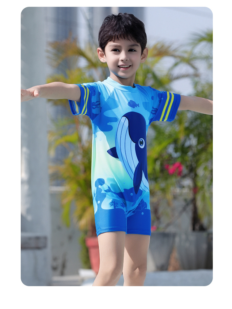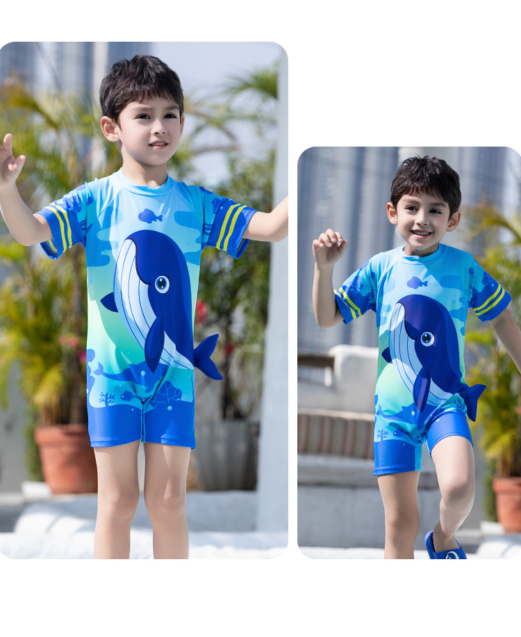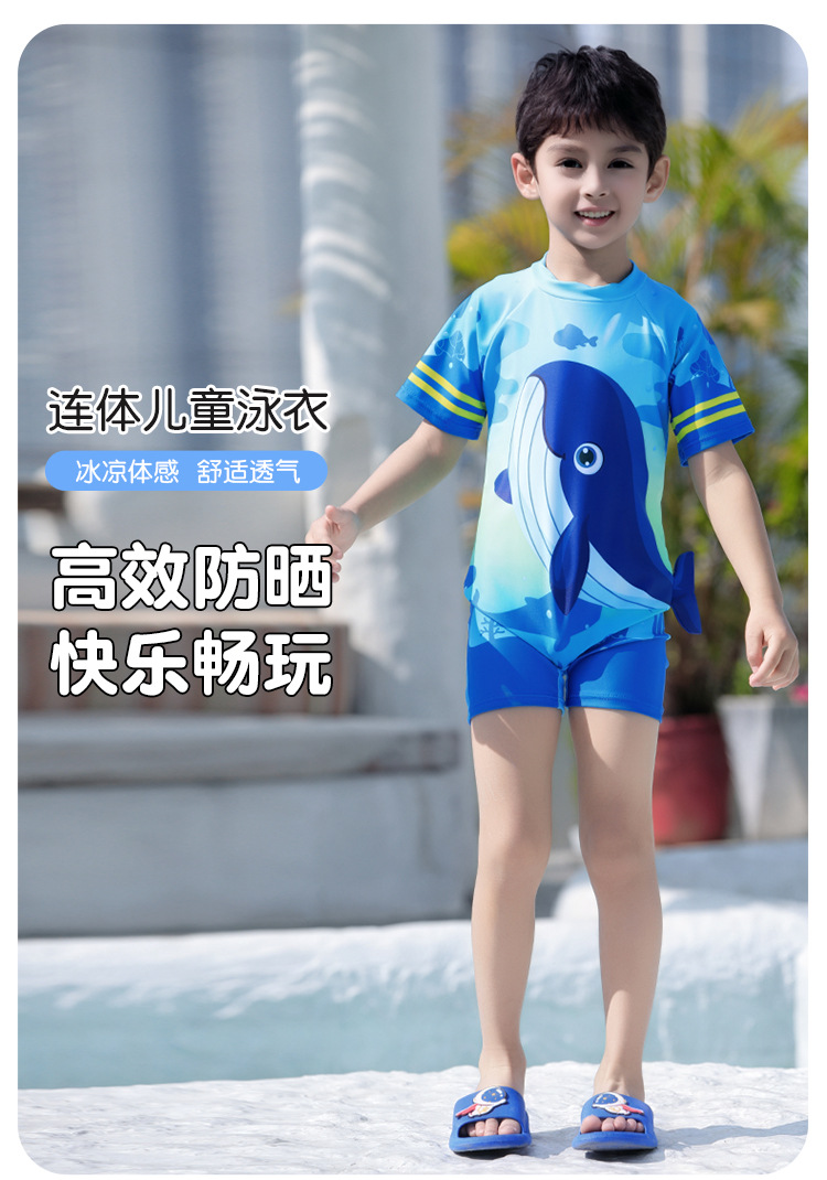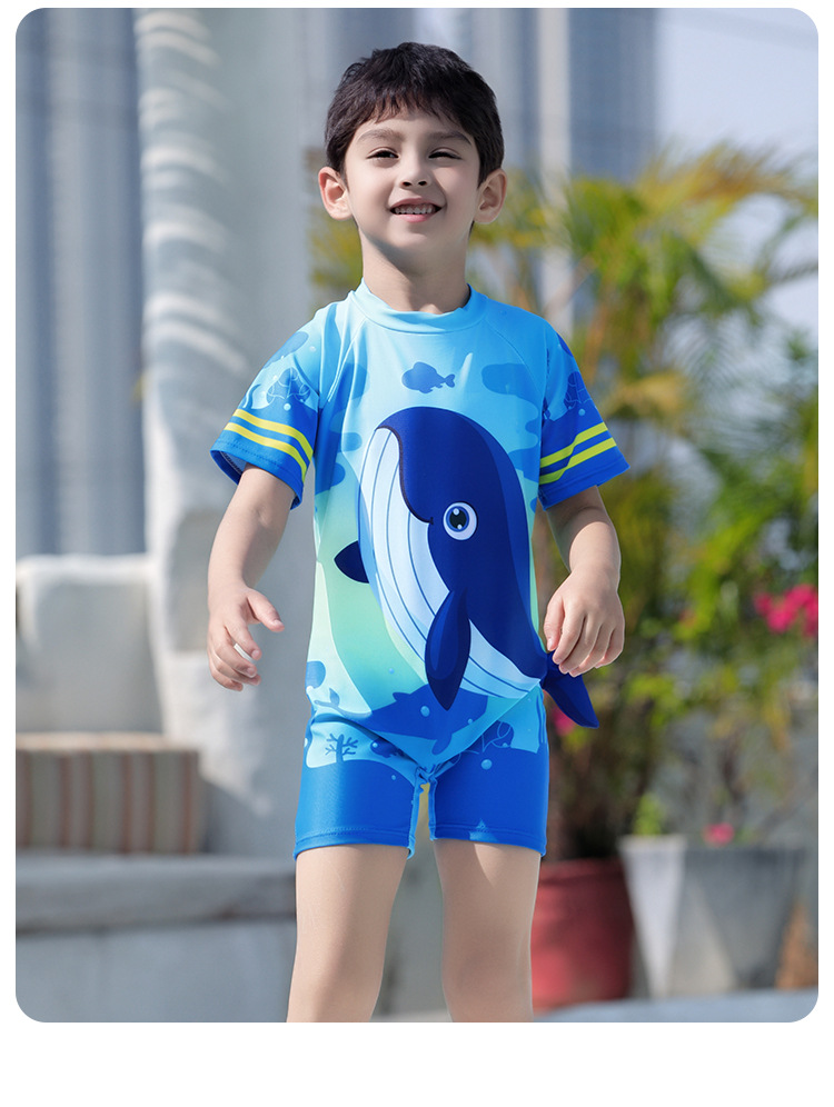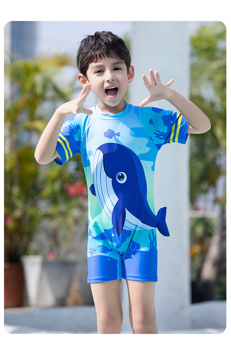 상어 수영복 어린이 태양 방지 빠른 건조 수영 트렁크 소년 어린이 귀여운 만화 수영복 해변 원피스 반팔 수영스토어 가기