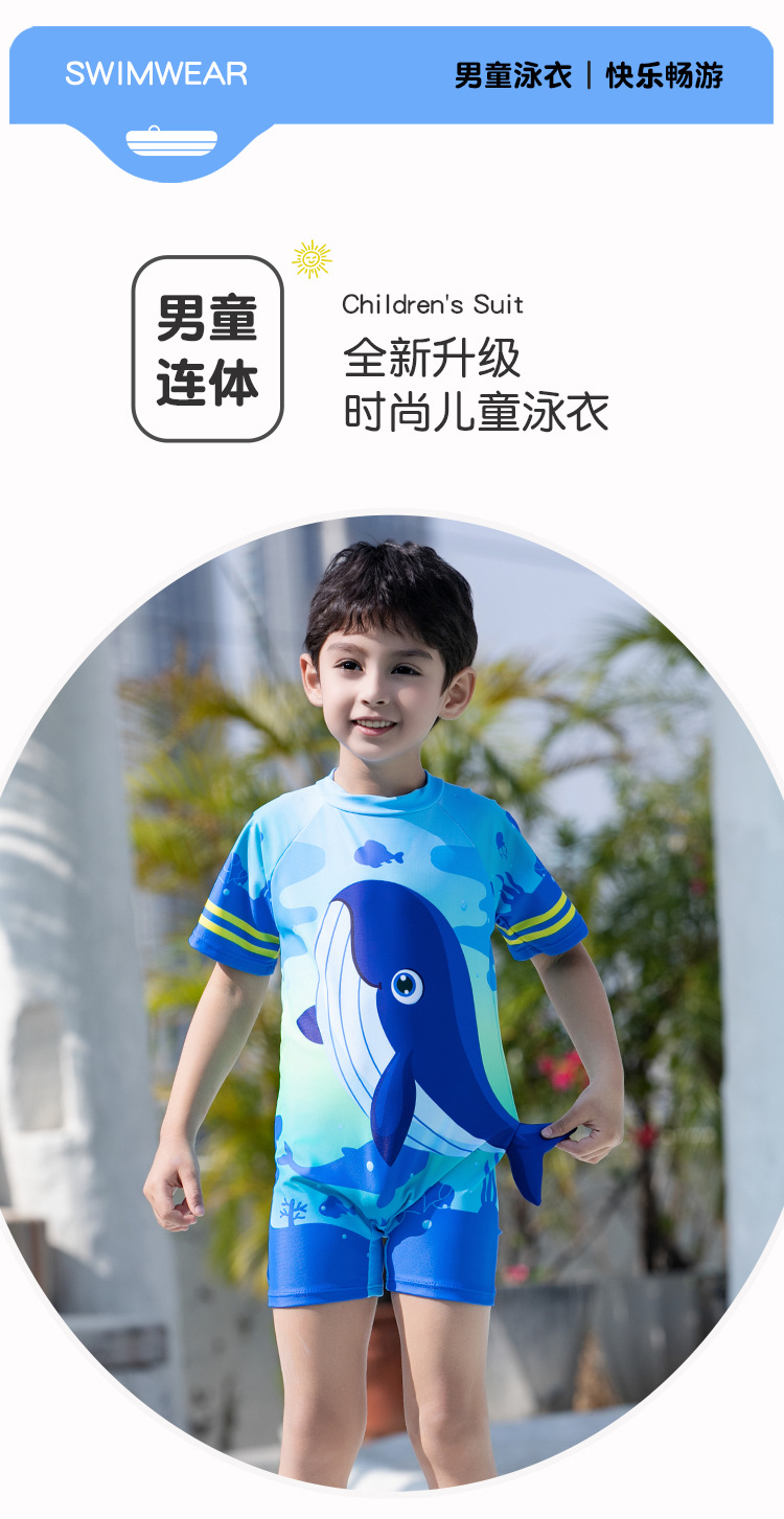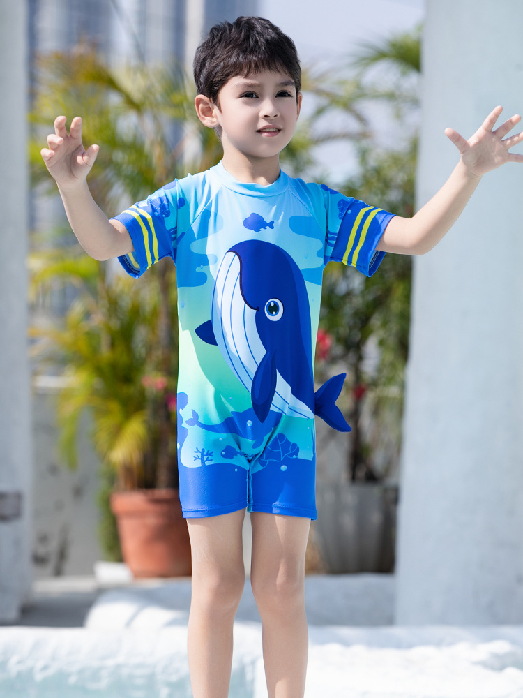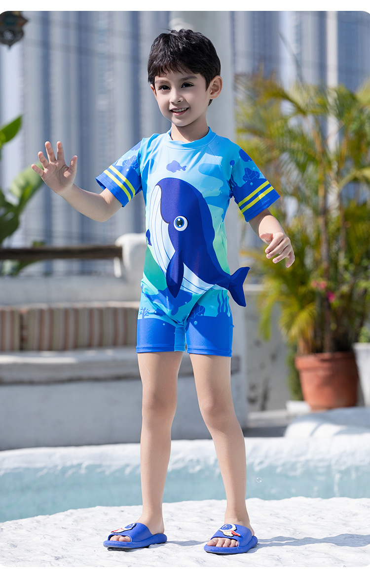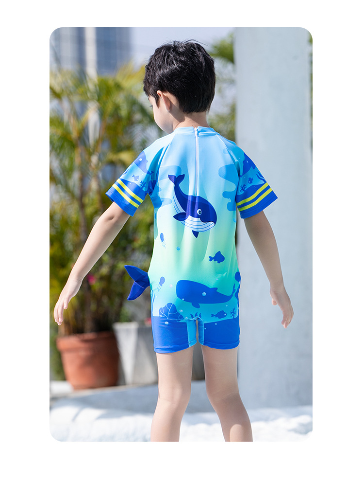 상어 수영복 어린이 태양 방지 빠른 건조 수영 트렁크 소년 어린이 귀여운 만화 수영복 해변 원피스 반팔 수영스토어 가기