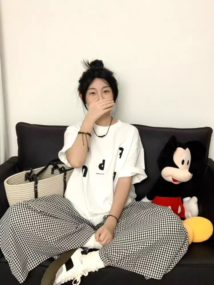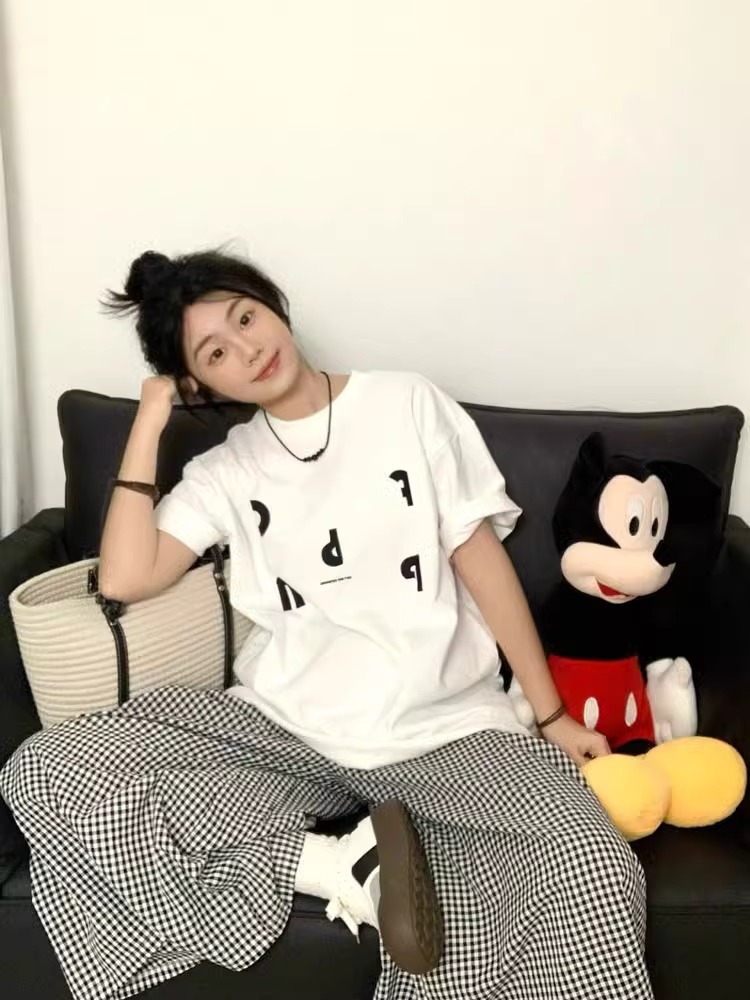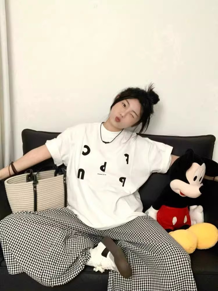 통통녀 코튼 아메리칸 스타일 레트로 화이트 반팔 티셔츠 여성용 여름 오버 사이즈 루즈 디자인 센스 반소매 탑스토어 가기
