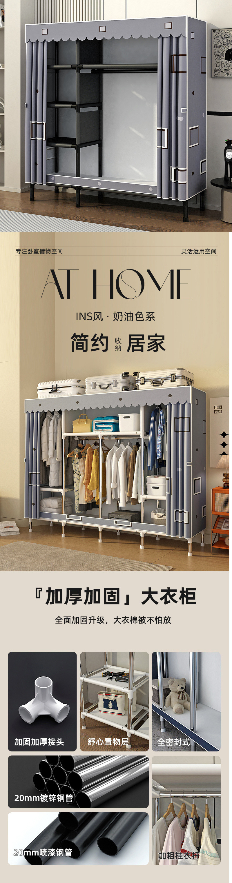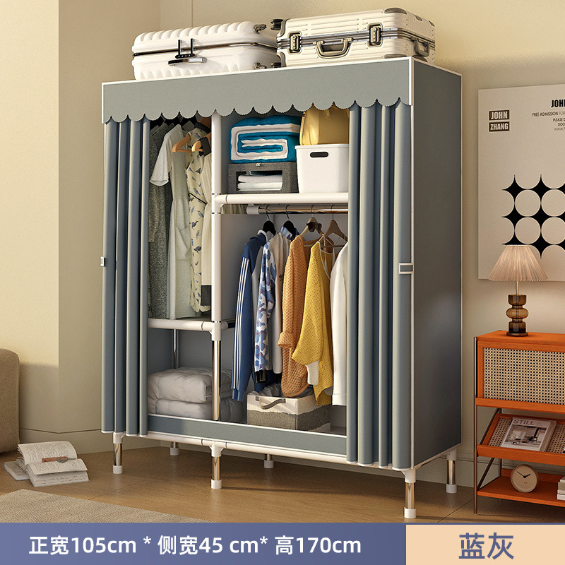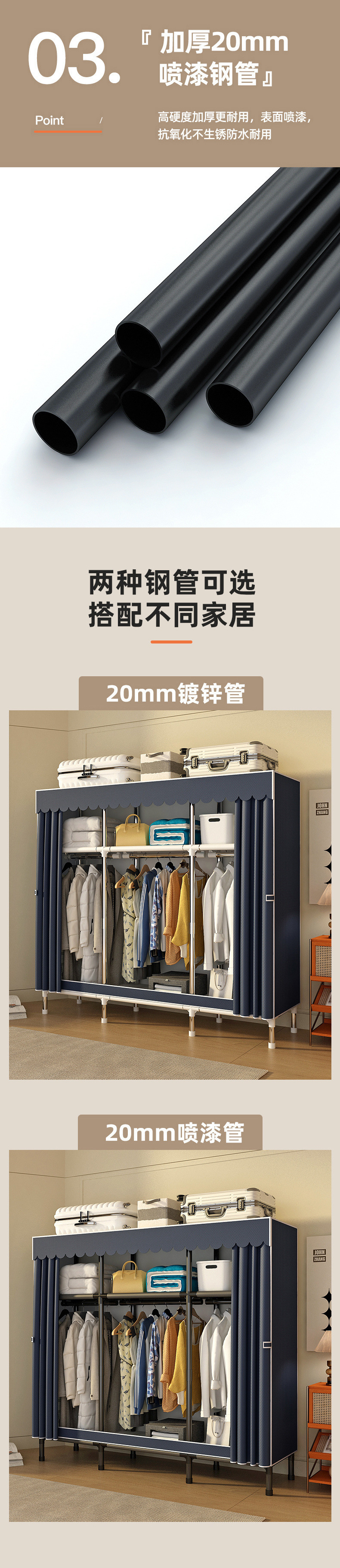 간단한 옷장 집 침실 강철 프레임 두꺼운 두꺼운 강철 파이프 조립 옷장 임대 방 강력하고 튼튼한 캐비닛