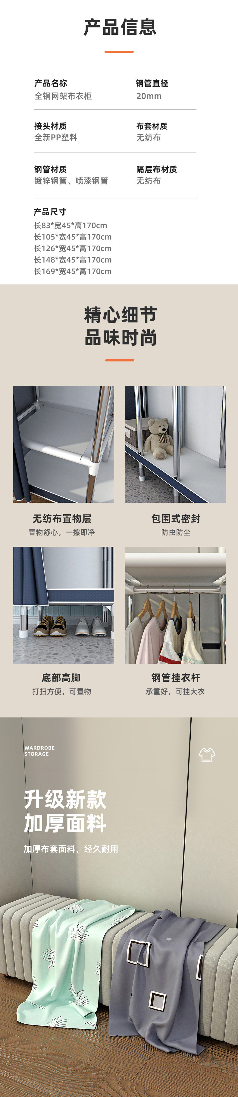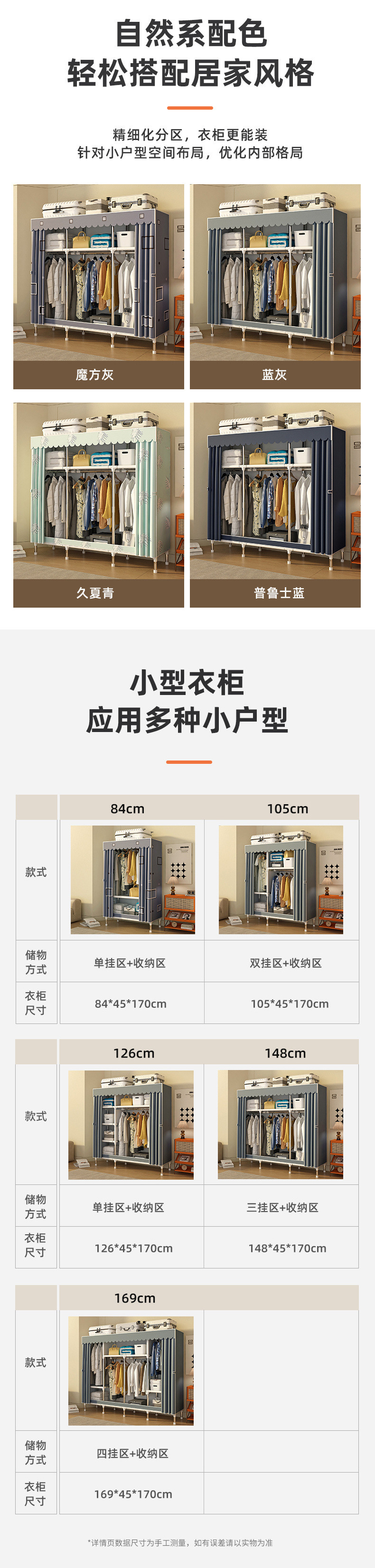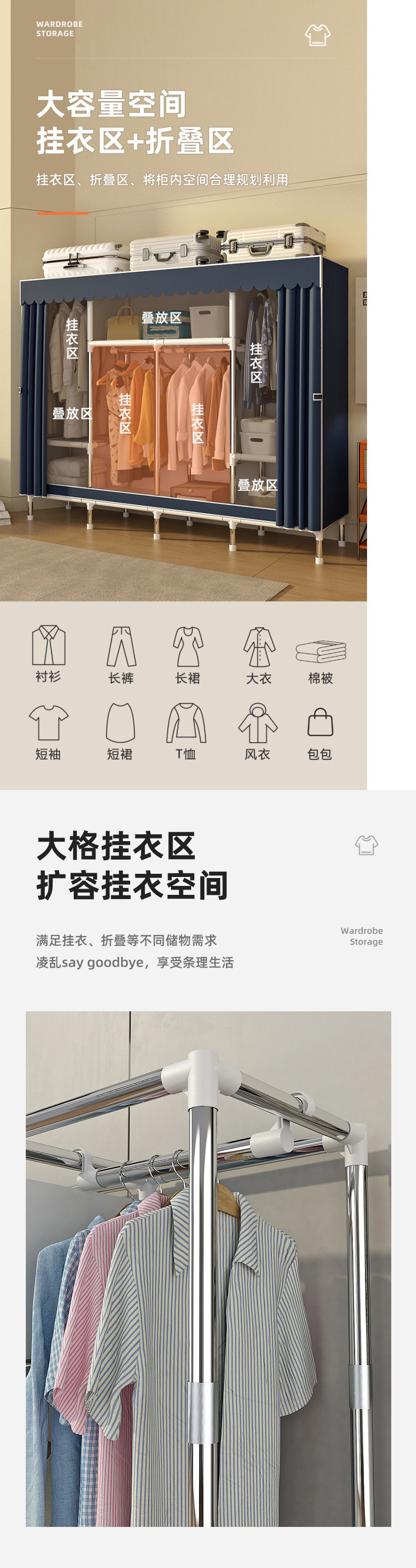 간단한 옷장 집 침실 강철 프레임 두꺼운 두꺼운 강철 파이프 조립 옷장 임대 방 강력하고 튼튼한 캐비닛