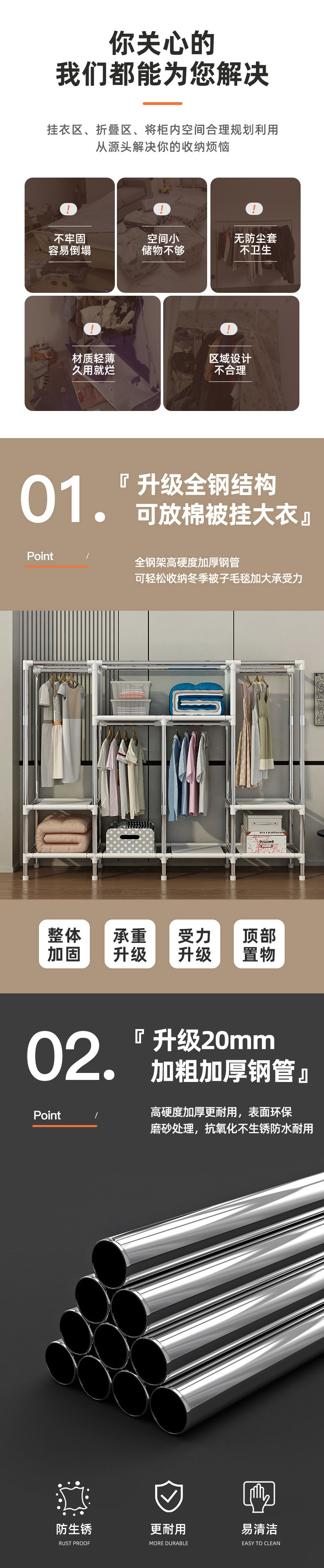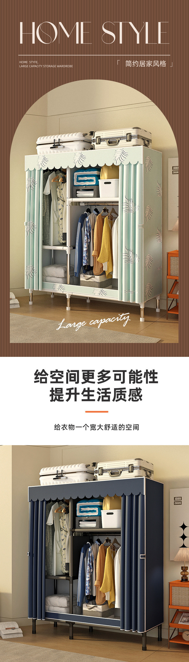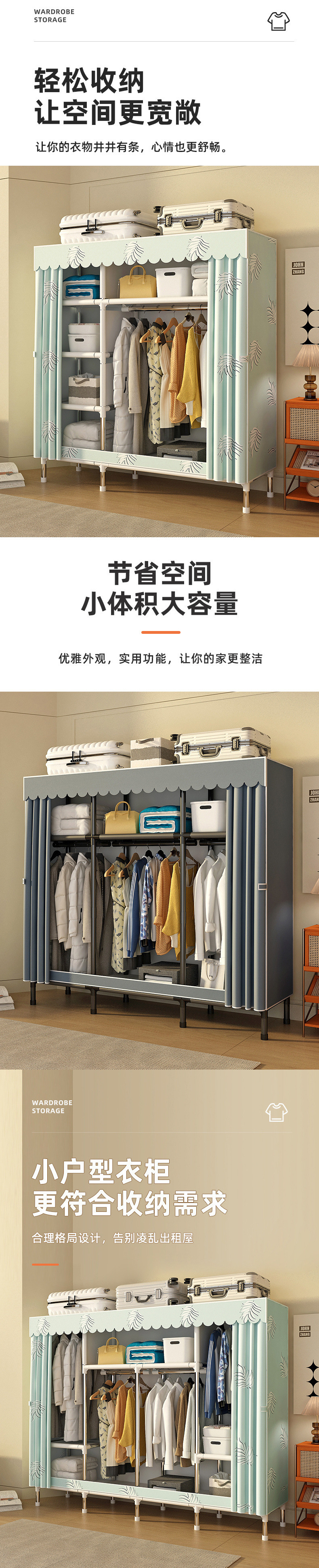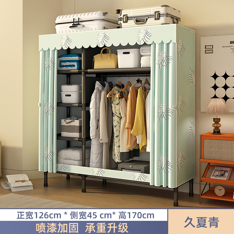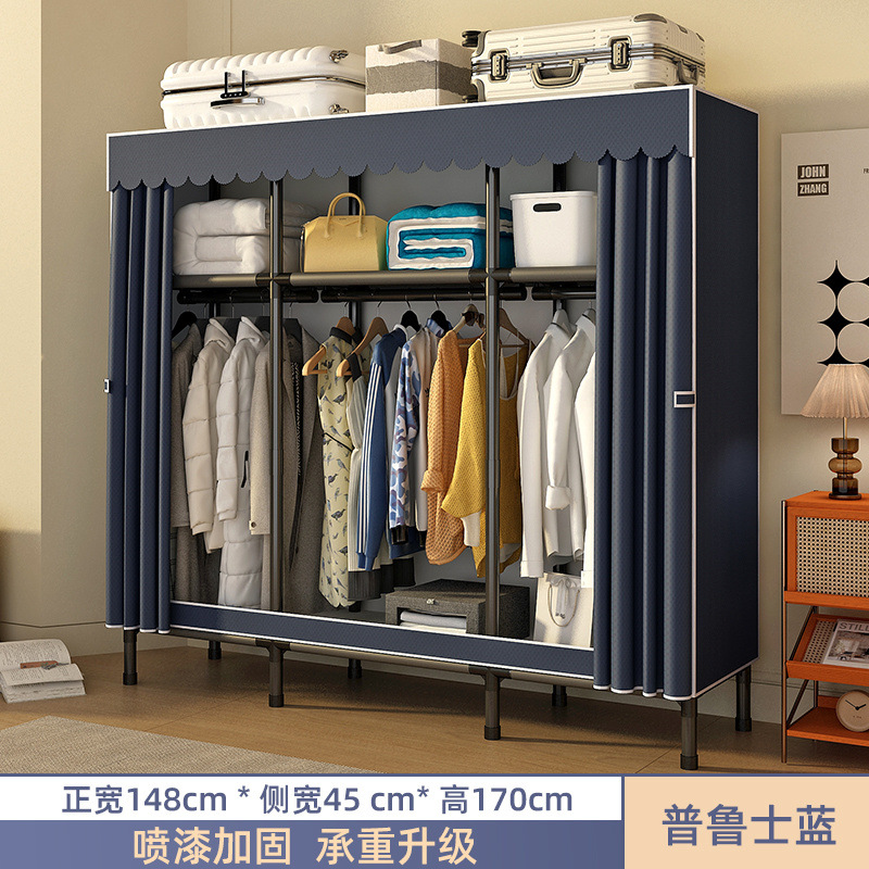간단한 옷장 집 침실 강철 프레임 두꺼운 두꺼운 강철 파이프 조립 옷장 임대 방 강력하고 튼튼한 캐비닛스토어 가기