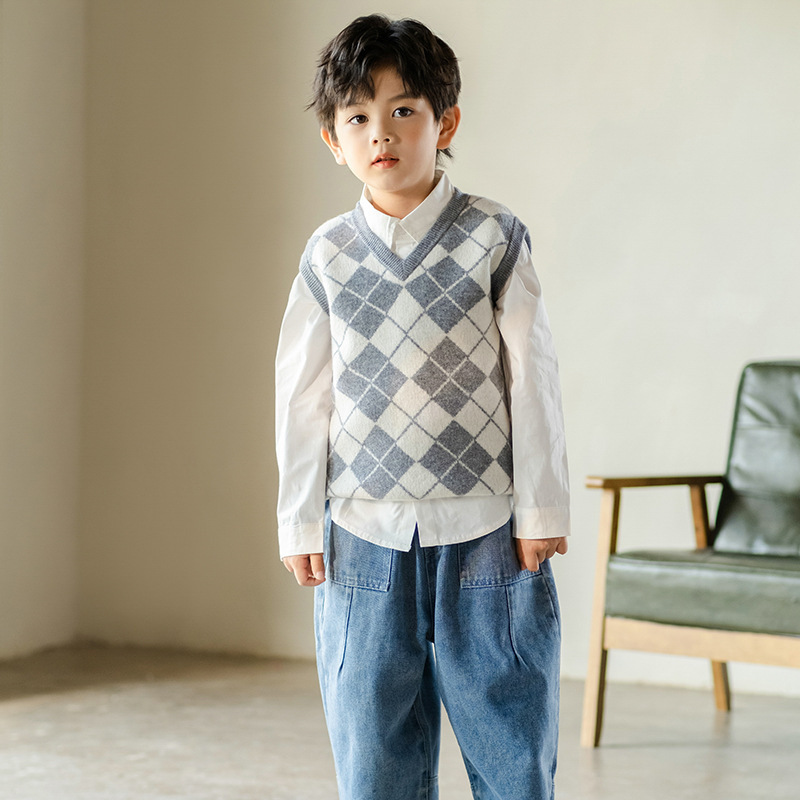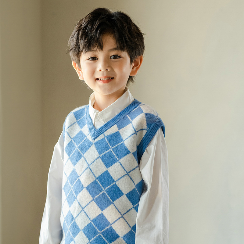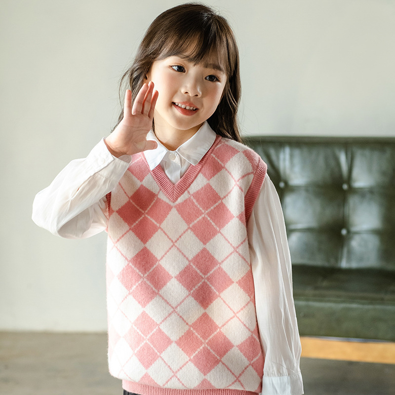 조끼 100 양모 어린이 매복 격자 무늬 니트 스웨터 소년과 소녀 같은 조끼 가을 및 겨울 아동복스토어 가기