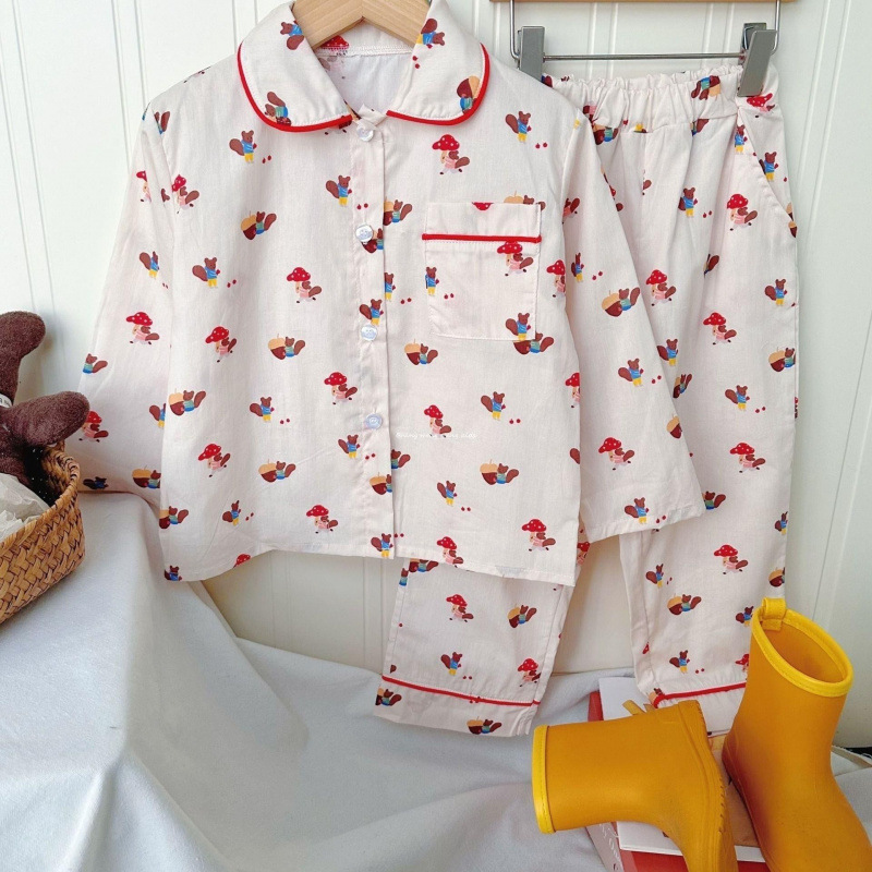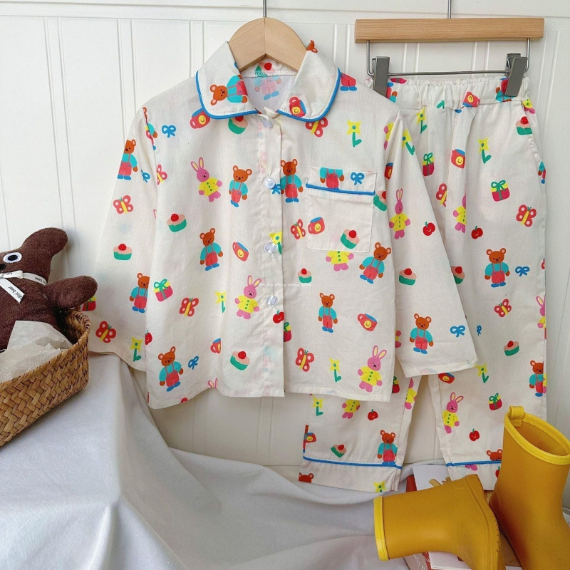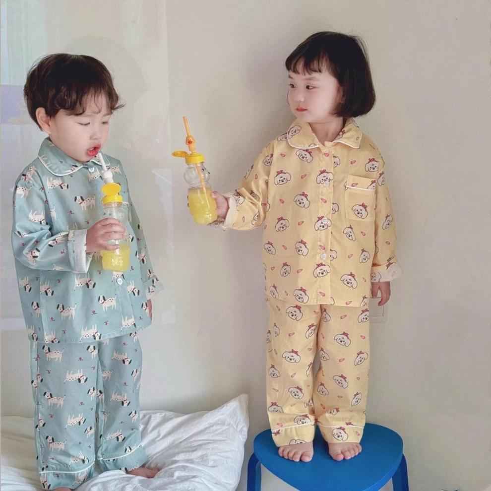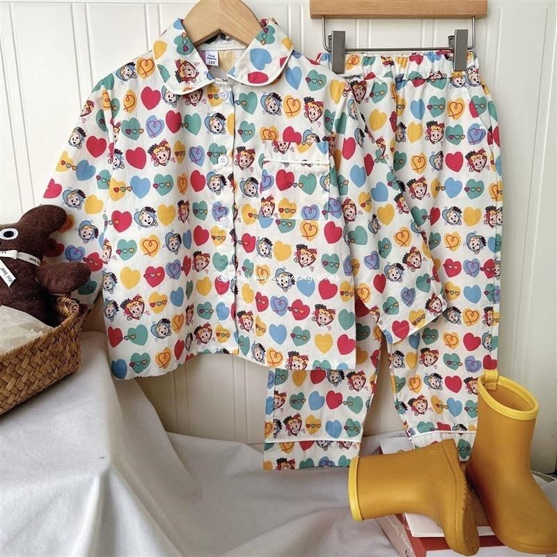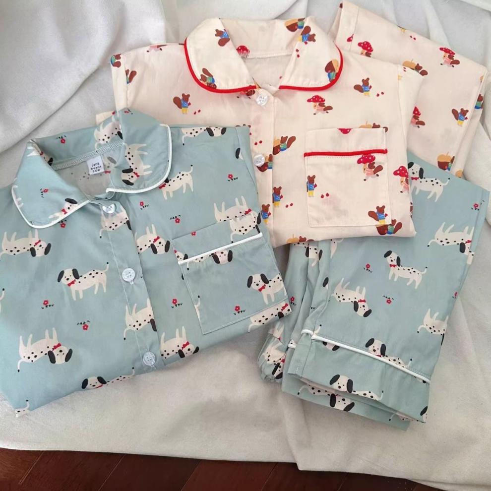 어린 이용 집 옷 봄과 가을 새로운 아기 에어컨 옷 얇은 세트 긴 소매 만화 잠옷스토어 가기