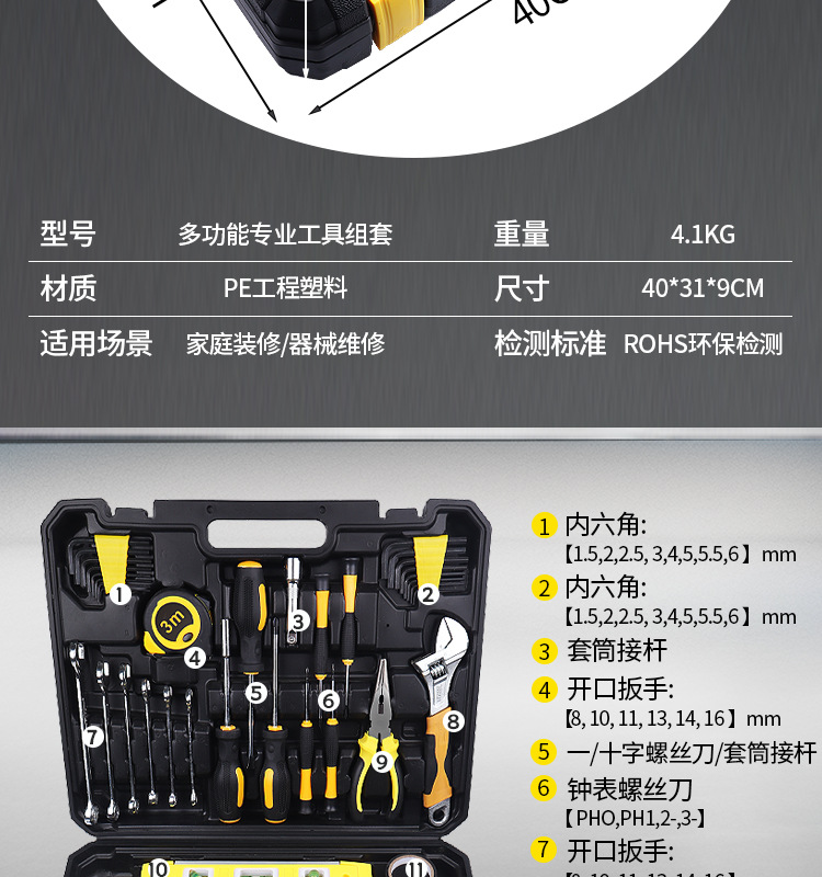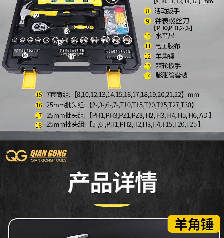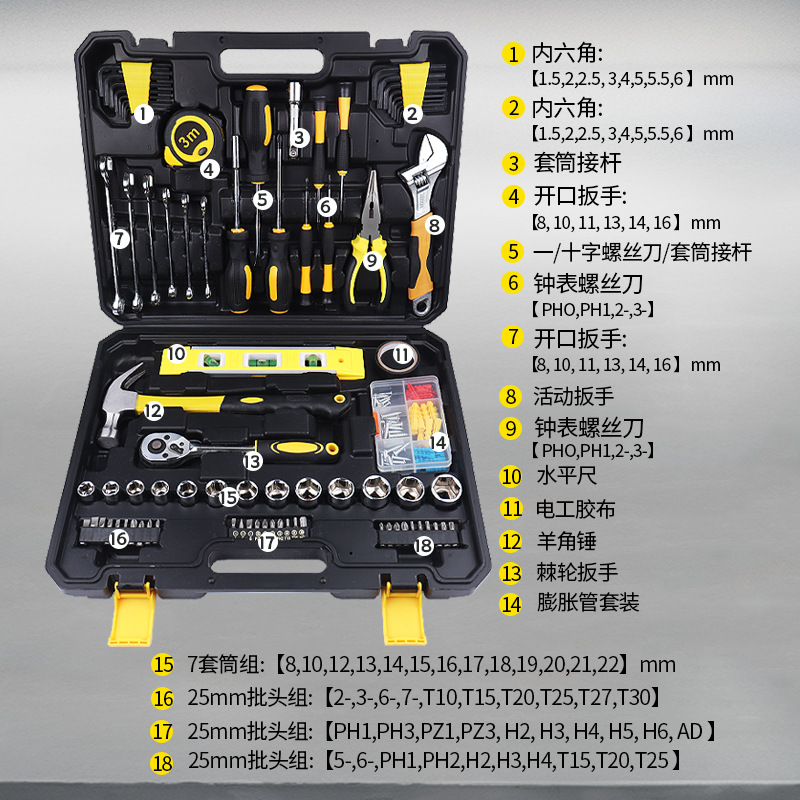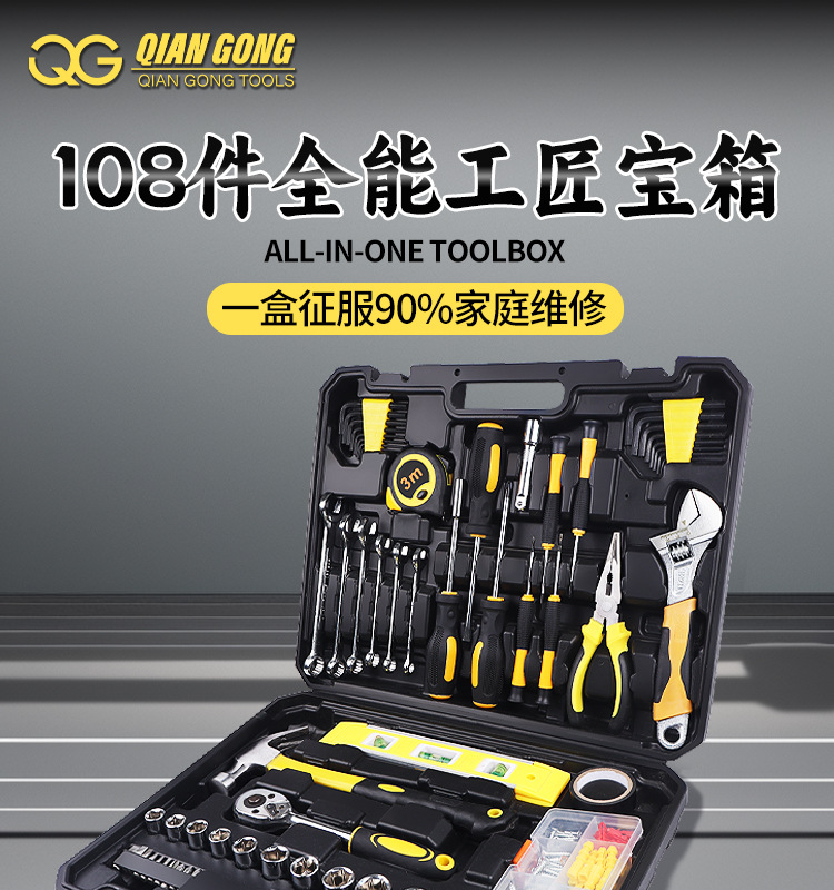 공장 도매 자동차 수리 키트 도구 상자 108PC 도구 세트 가정용 하드웨어 손 도구 조합스토어 가기