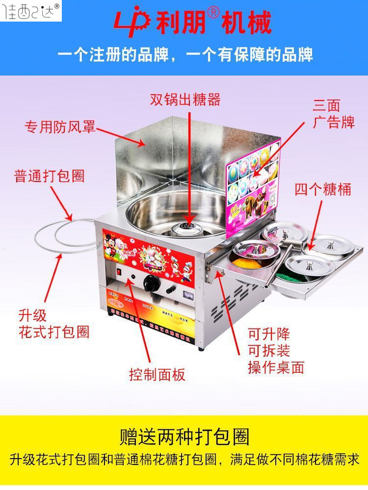 Lippen 솜사탕 기계 2024 상업용 가스 전기 컬러 멋진 드로잉 솜사탕 기계 실속 사업