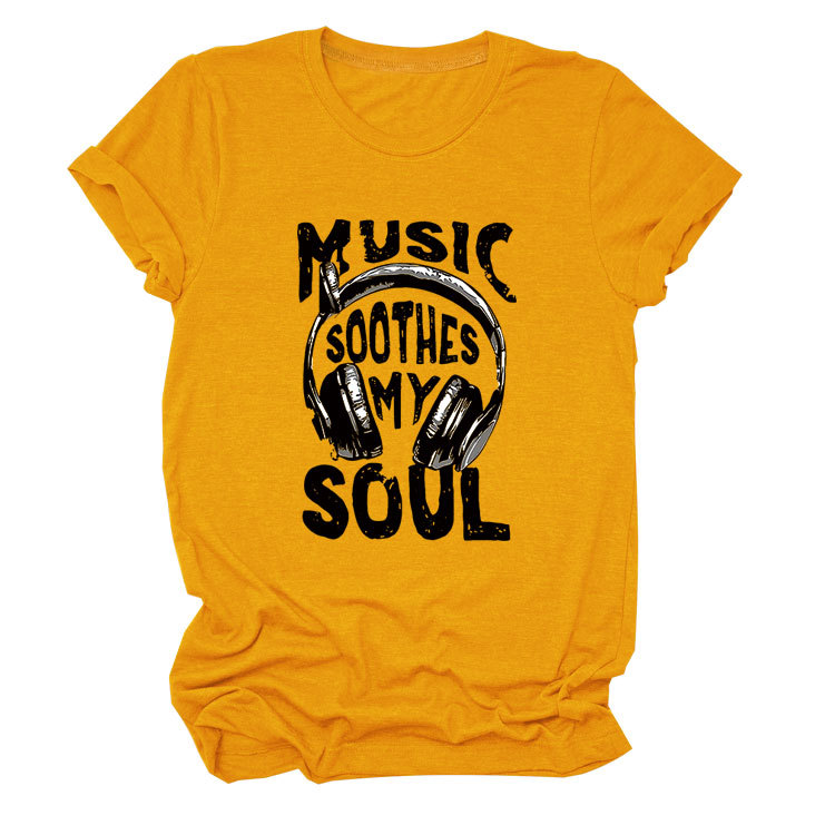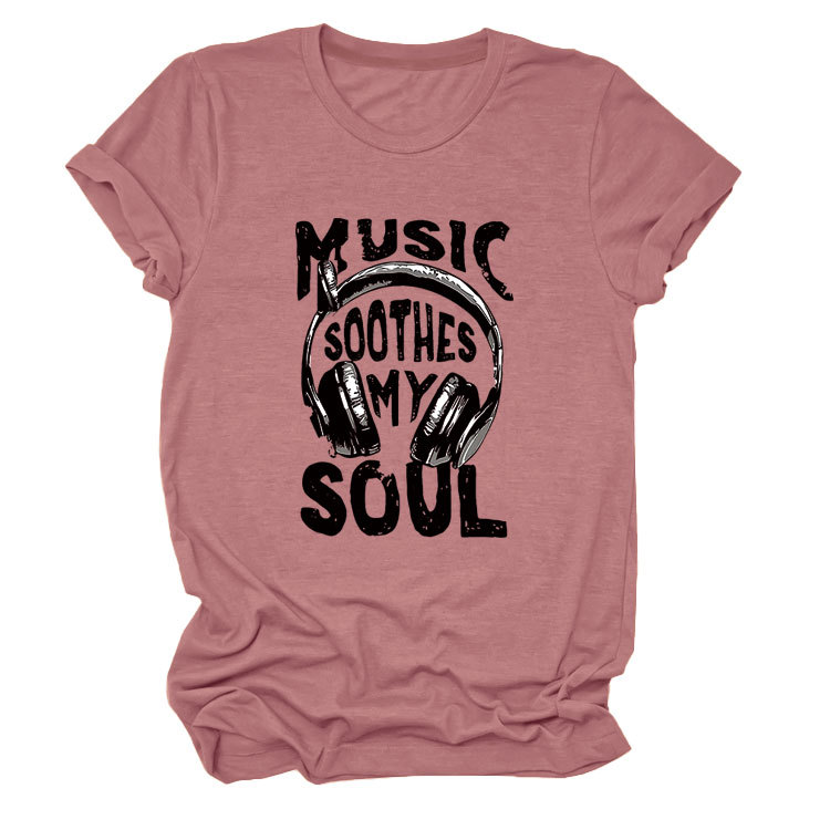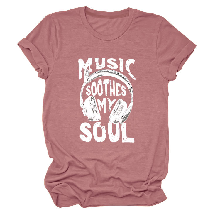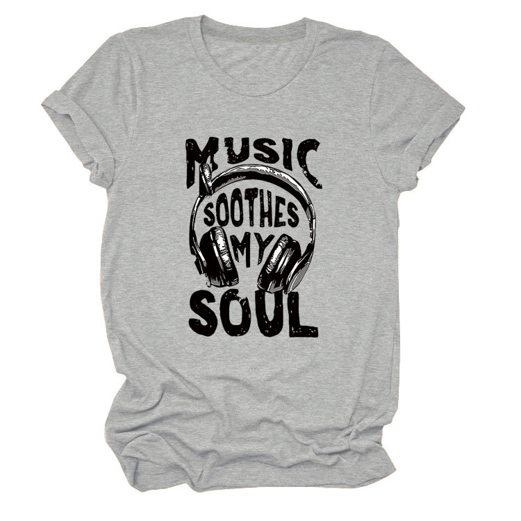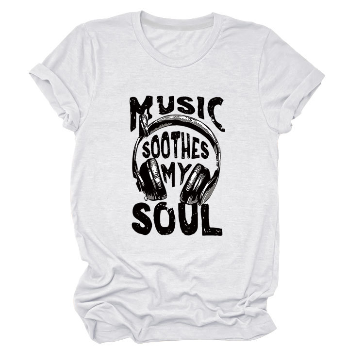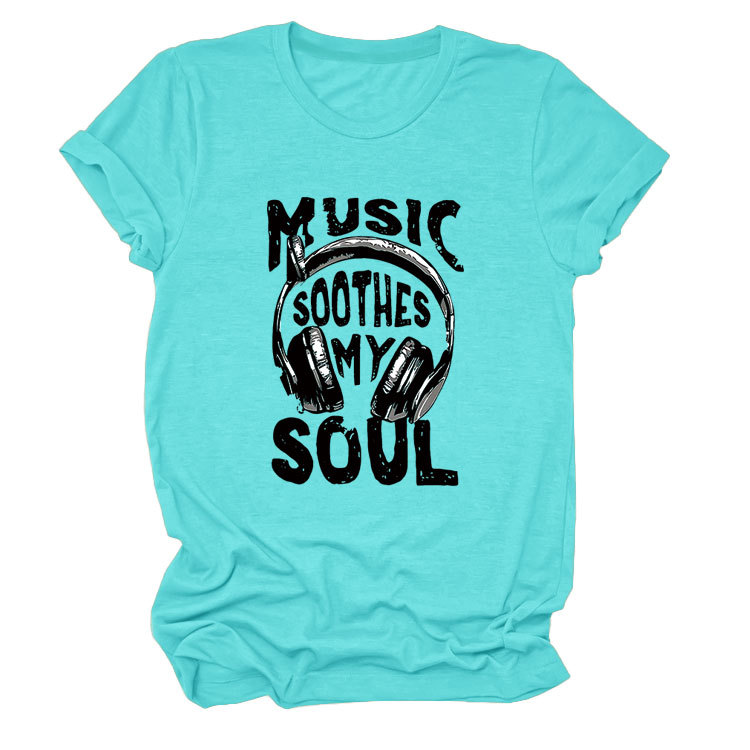 아마존 소원 개성 패션 트렌드 음악은 내 여성베이스 라운드 넥 반팔 티셔츠를 진정시킵니다스토어 가기